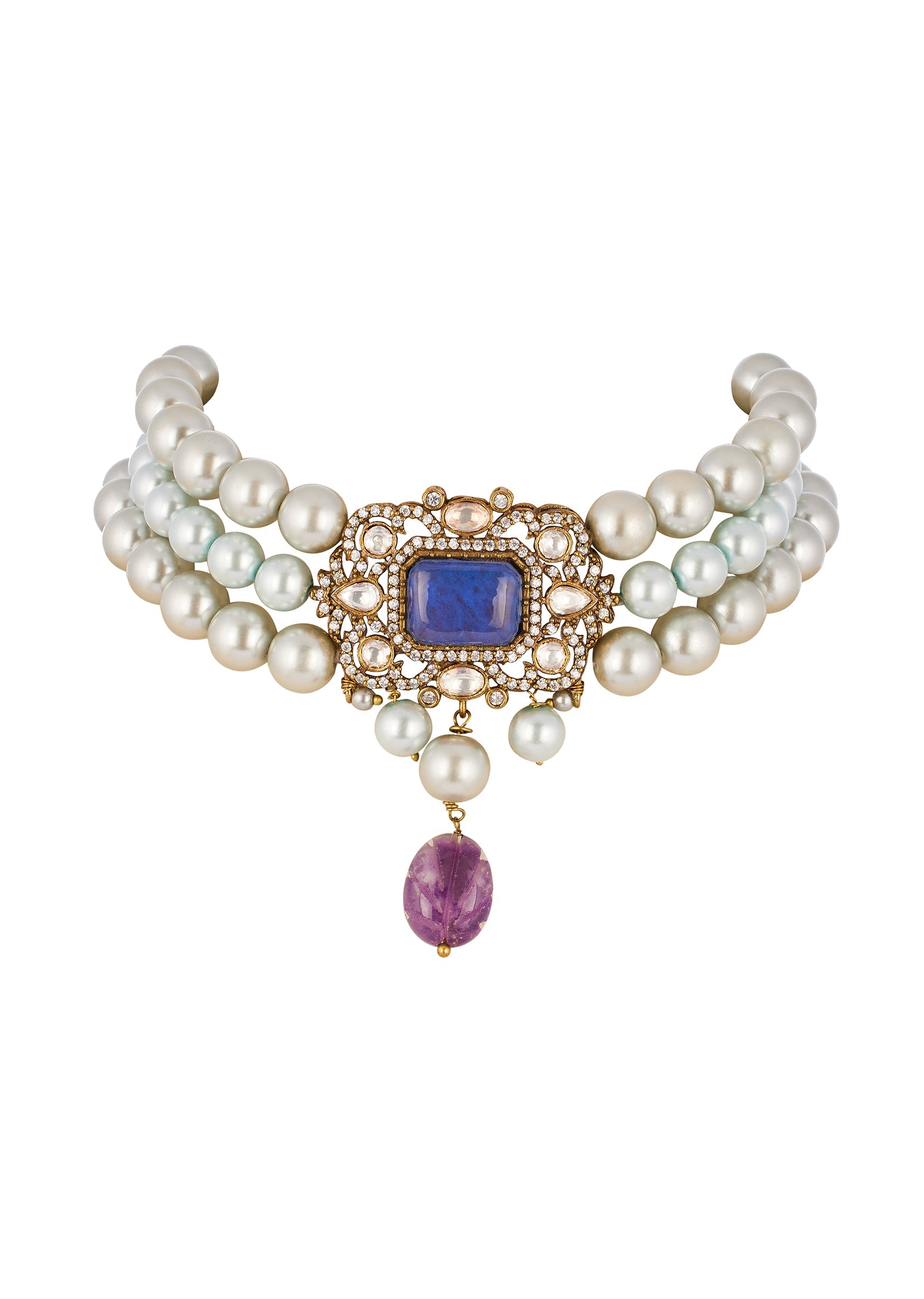 Midnight Blue Traditional Kundan Polki Necklace Set
