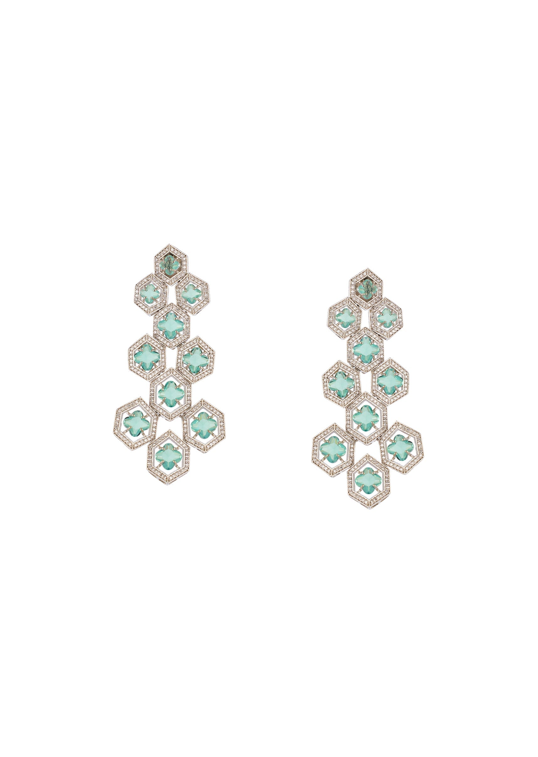 A refined blend of soft sparkle and modern elegance, this CZ diamond look necklace set is adorned with champagne and mint green semi precious stones that lend a fresh, graceful... More Product Details