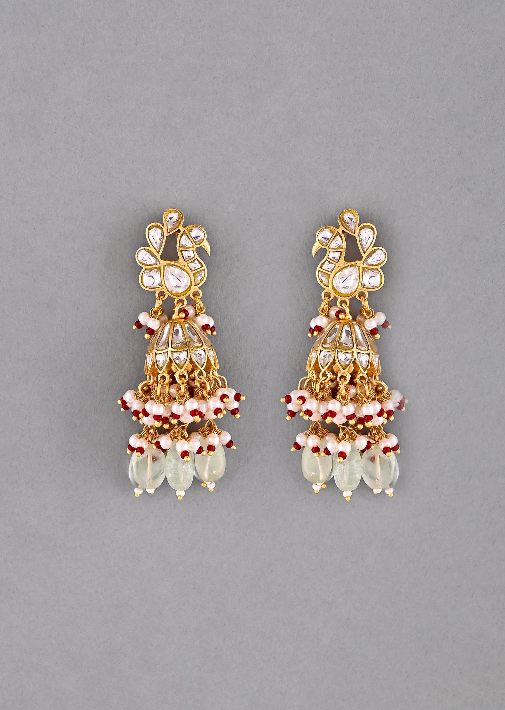 These mint green gold earrings feature delicate pachi kundan work for a refreshing and elegant festive look. The soft mint tones paired with gold accents create a statement piece that is perfect for weddings, mehendi, and festive celebrations. Designed to enhance traditional outfits, these earrings bring a touch of sophistication and charm to every occasion.Awarded as the Most Trusted Brand, we're delivering styles you love, just as promised.