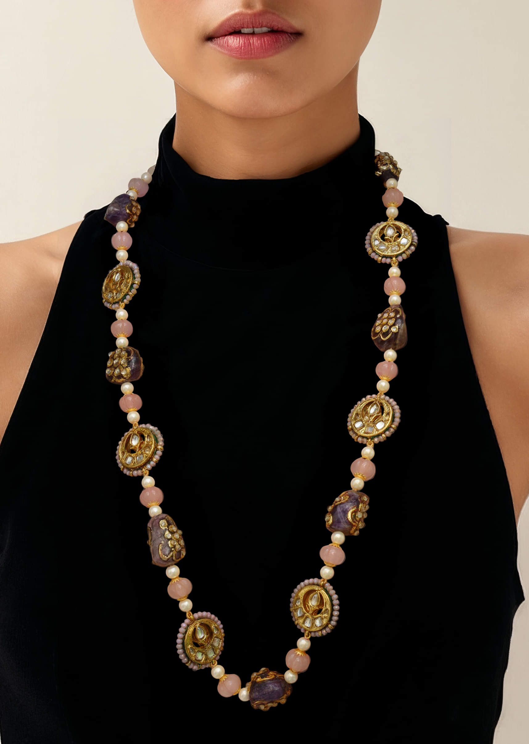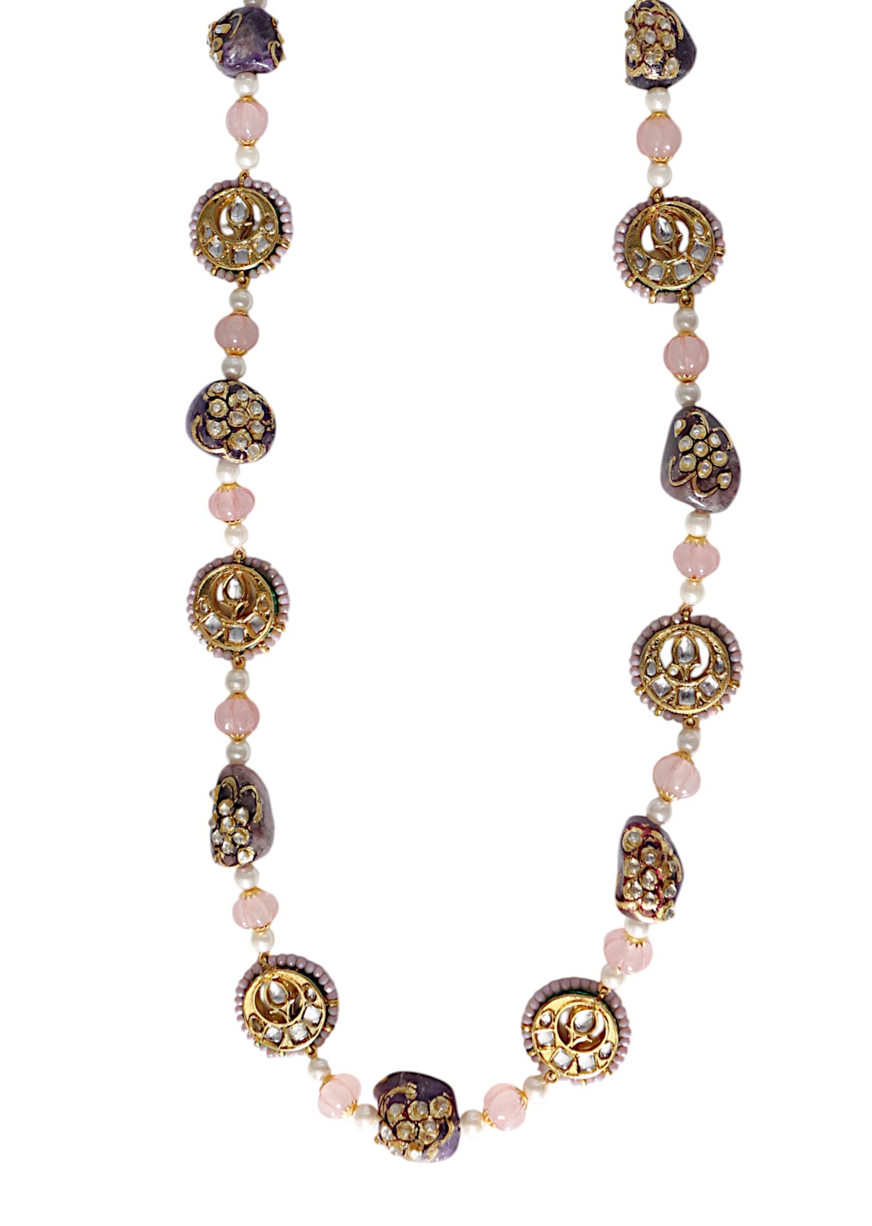 A multi bead enamelled long necklace featuring vibrant beads with intricate enamel work, blending traditional artistry with contemporary design. Perfect for adding a colorful and festive touch to bridal, ethnic, or casual ensembles.