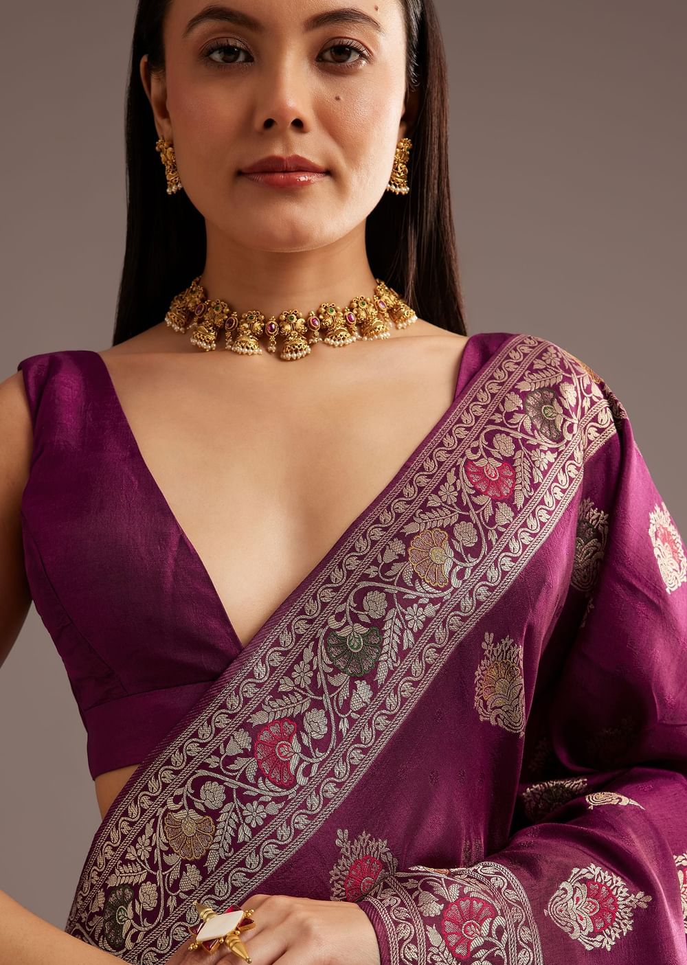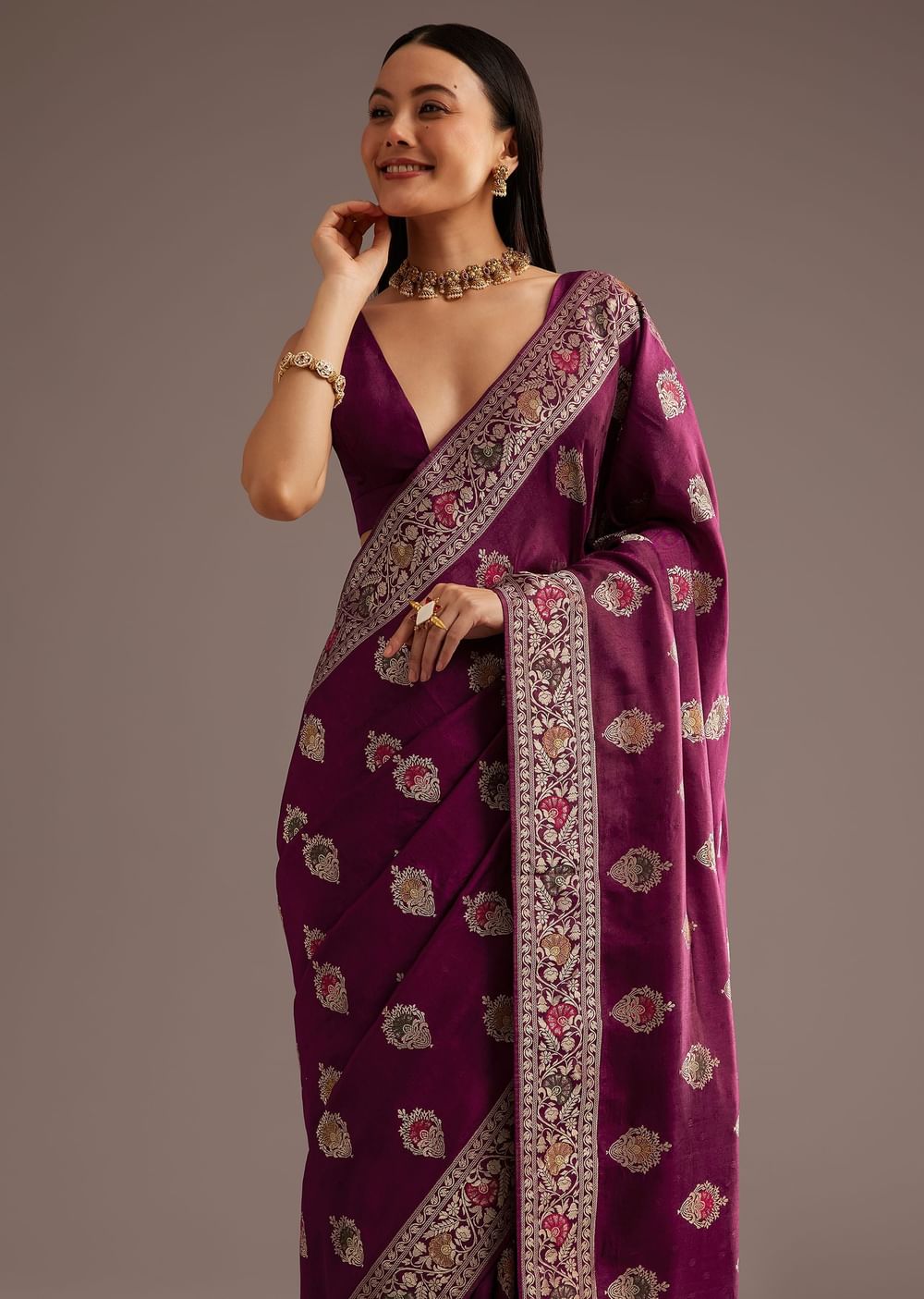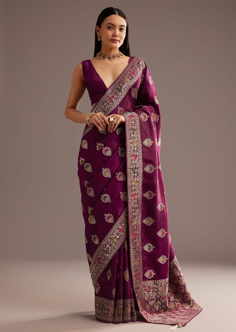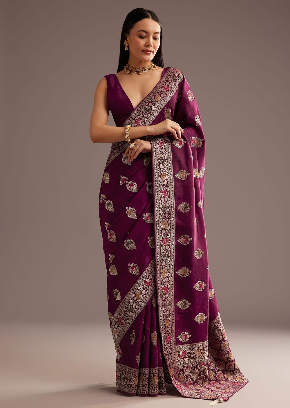 Multi Color Dola Silk Saree With Resham And Zari Weaving