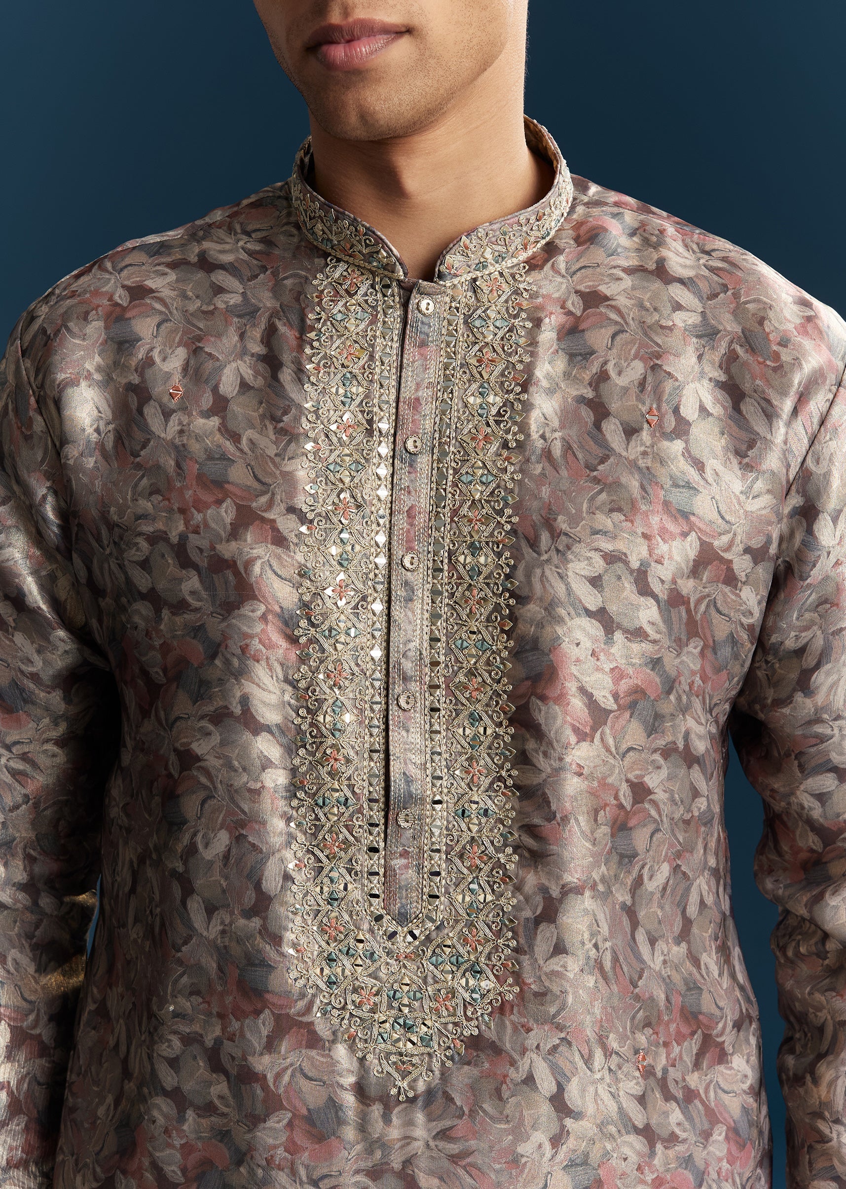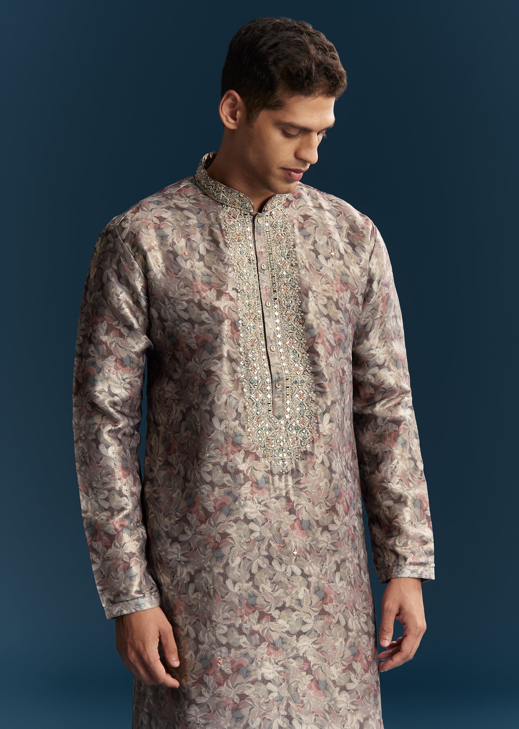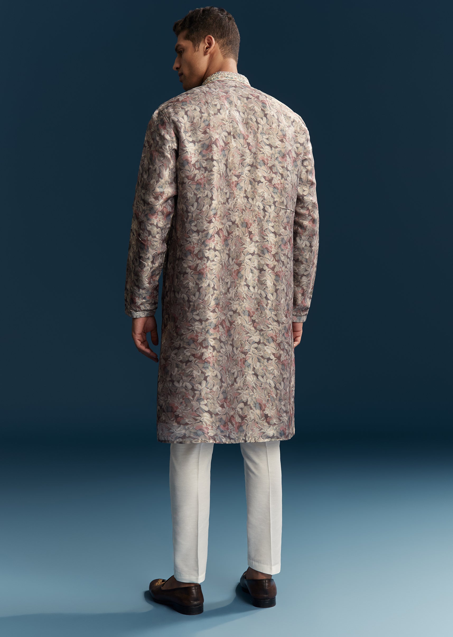 Vibrant and cheerful, this multi colored men’s kurta set in soft pastels is perfect for festive occasions. Crafted in smooth silk fabric, it features detailed thread work that adds texture... More Product Details