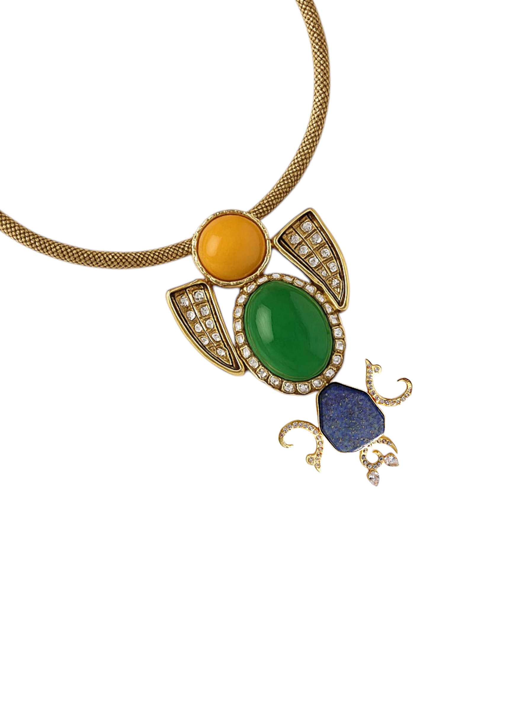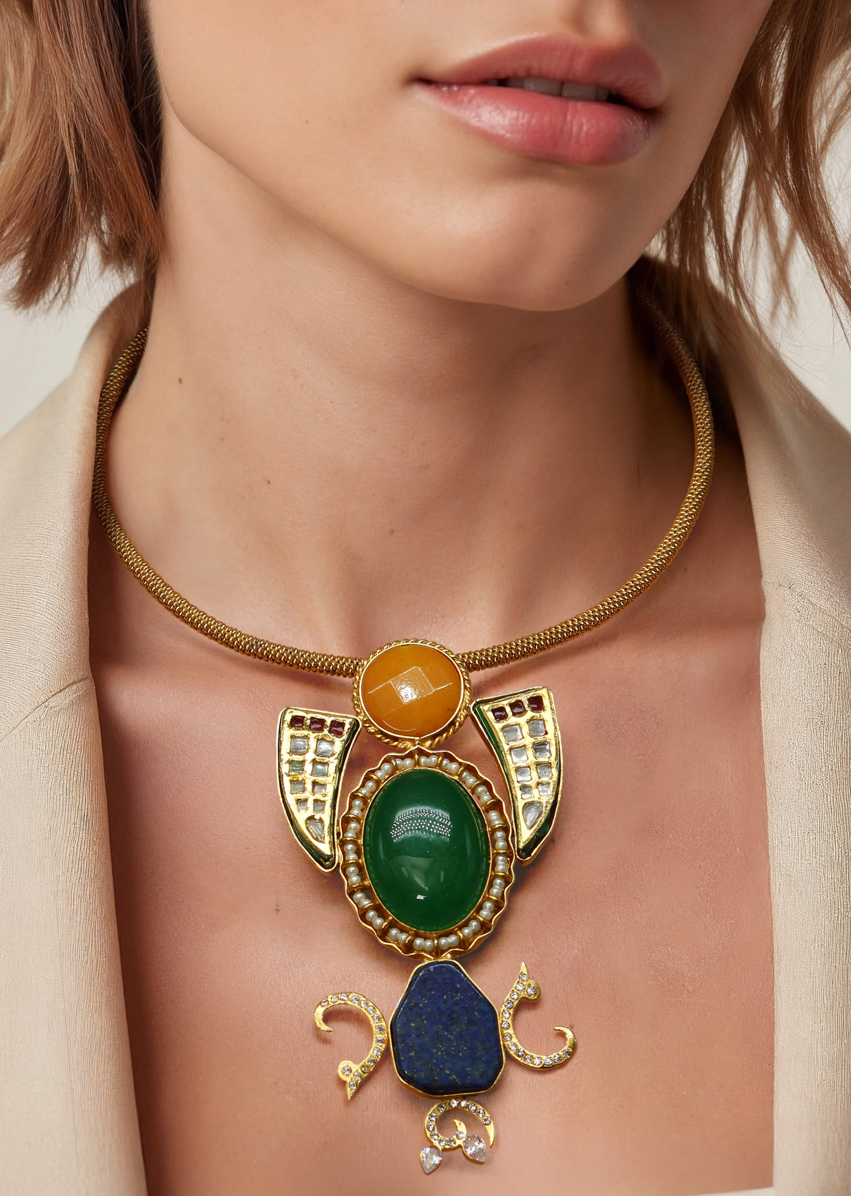 A multi fusion statement pendant necklace featuring a bold pendant with vibrant stones and intricate detailing, blending contemporary style with traditional elegance. Perfect for adding a striking focal point to... More Product Details