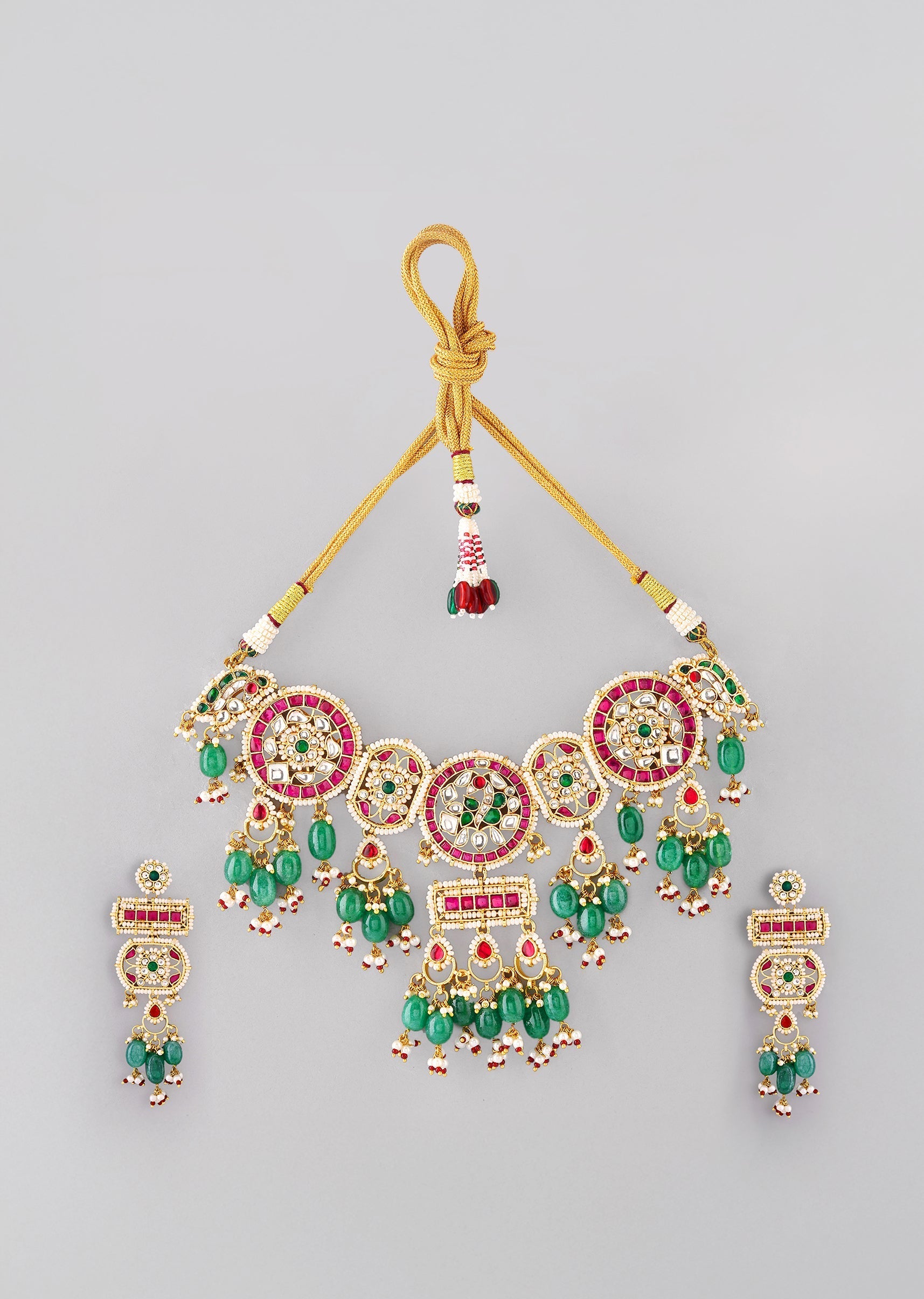 Multi Kundan Bead Drop Necklace and Earrings Set