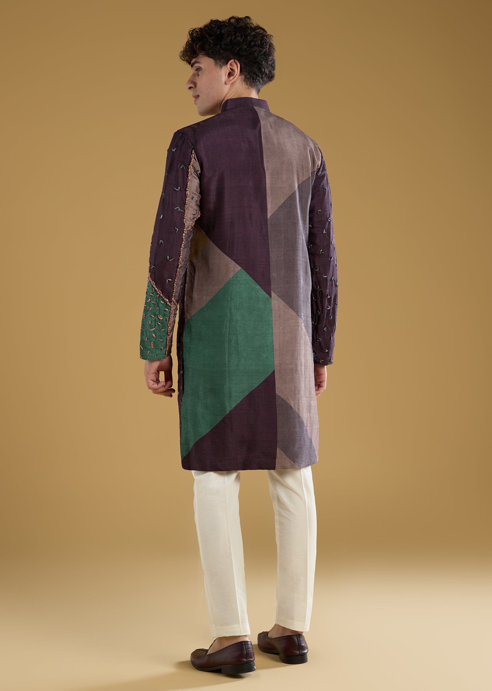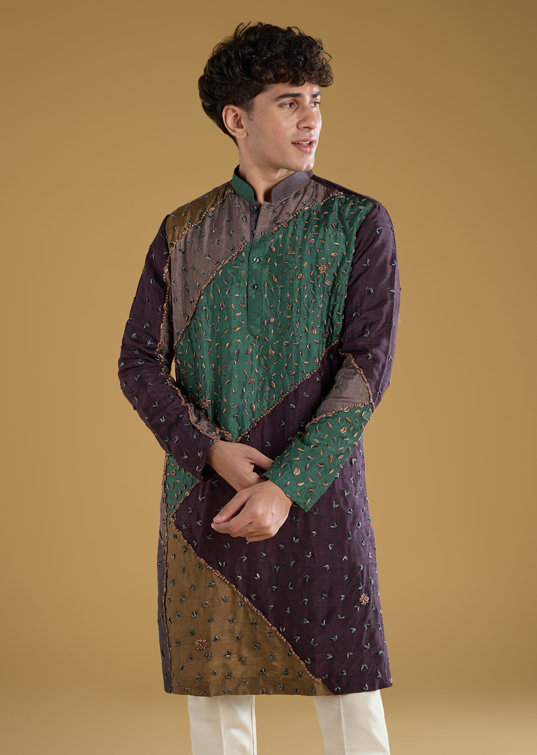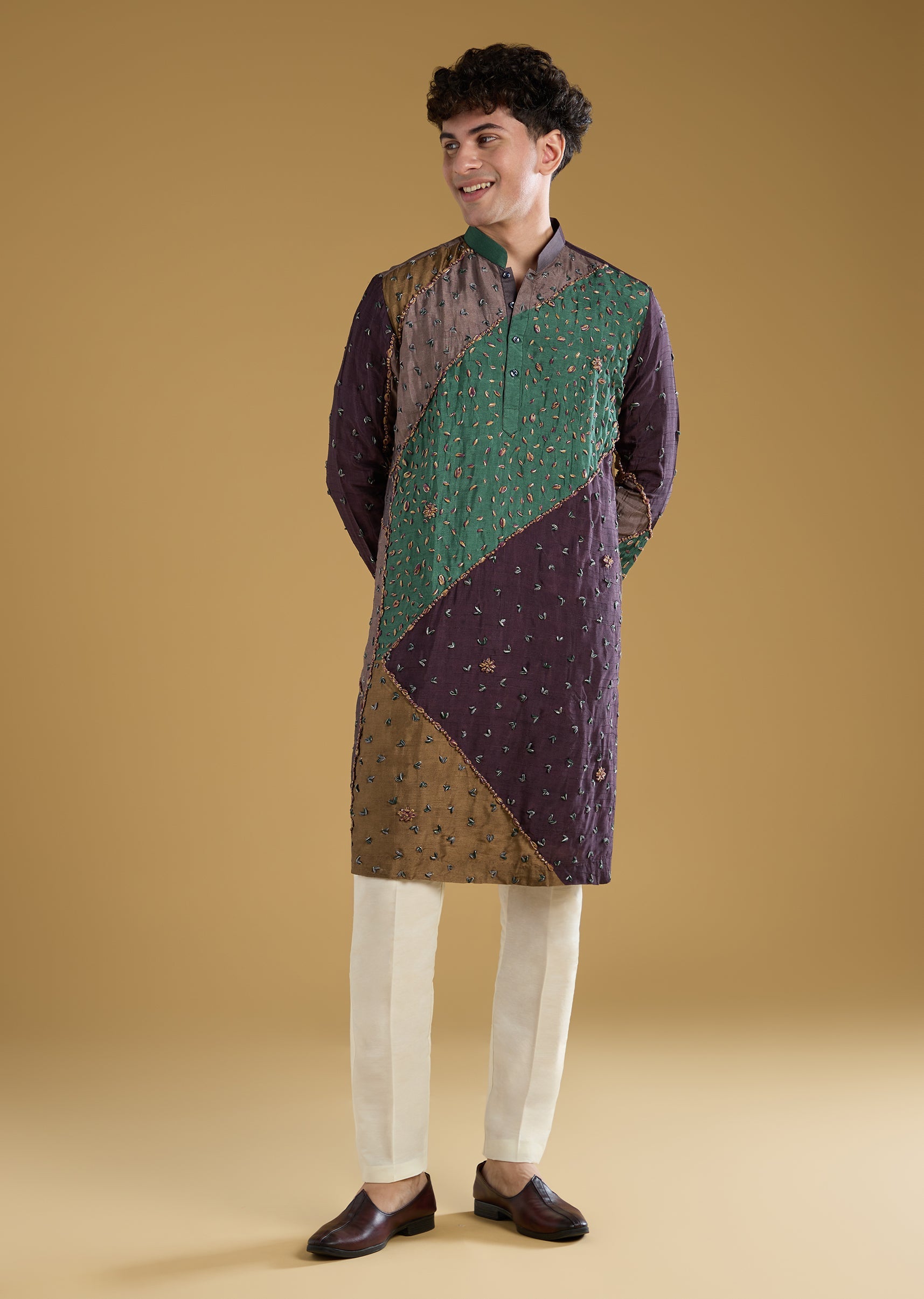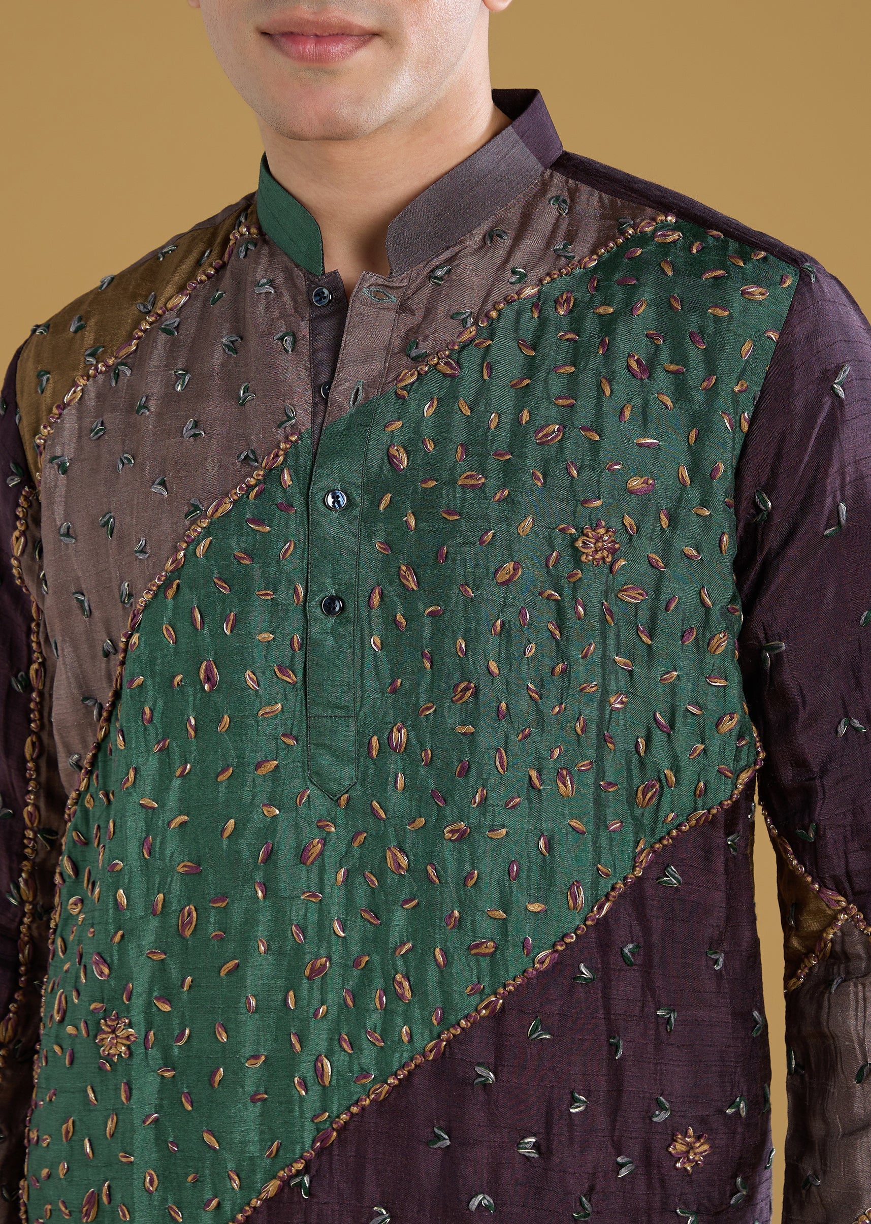 This multi colored men’s kurta set is crafted in premium silk and art silk fabrics, featuring intricate thread detailing for a refined festive look. Designed for groomsmen or the groom’s... More Product Details