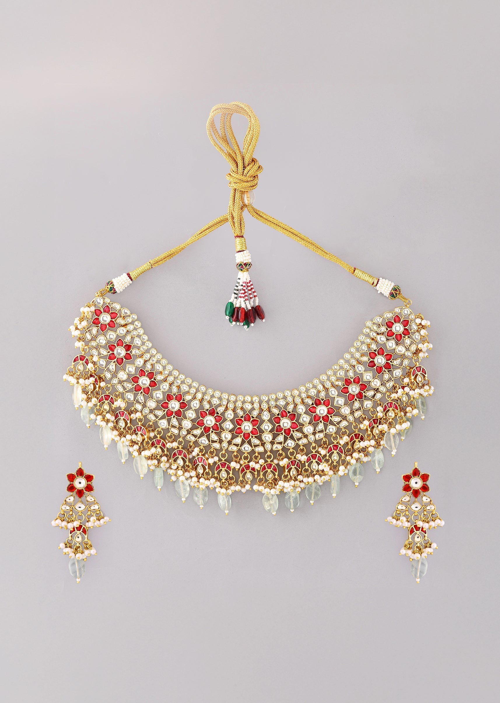 This multi red necklace set features intricate pachi kundan work that adds a vibrant and festive charm. Perfect for weddings, it is ideal for the bride’s mother or guests attending... More Product Details