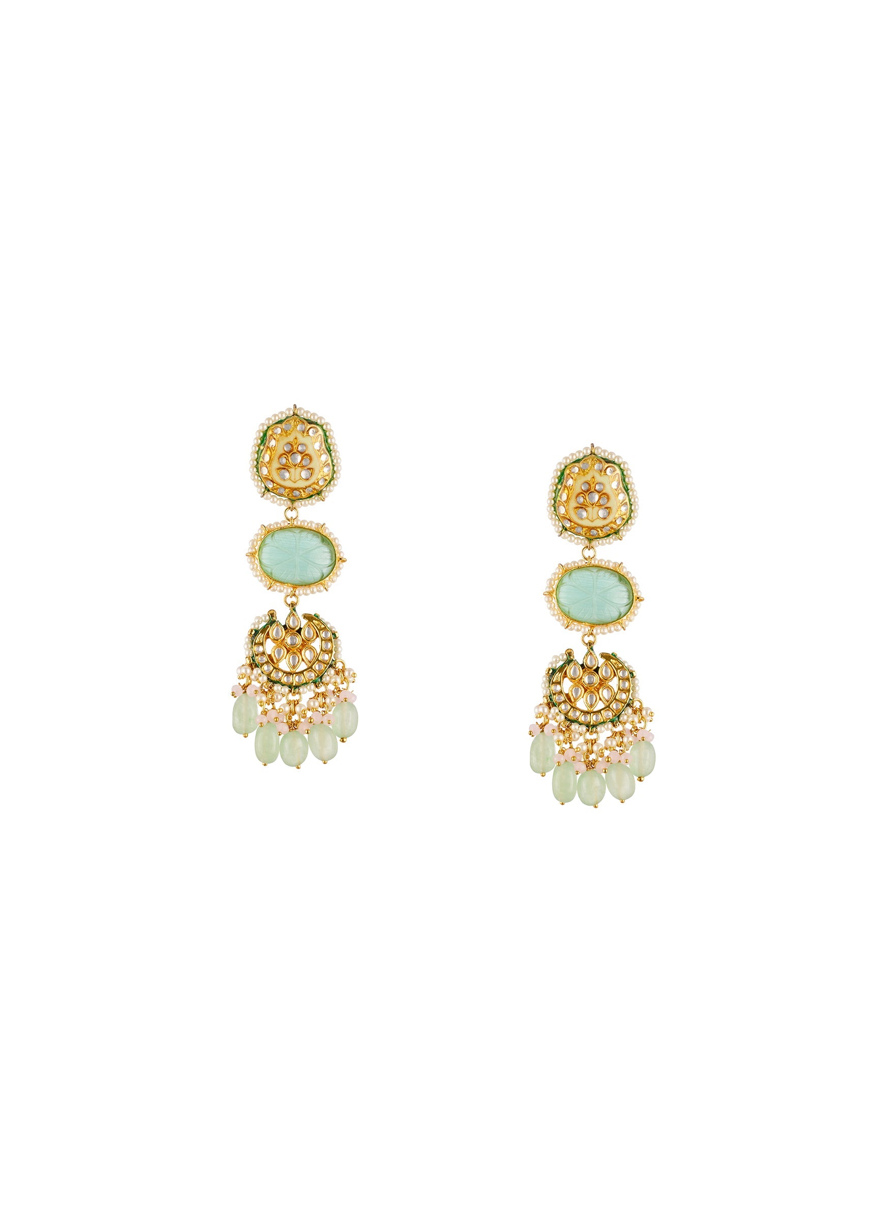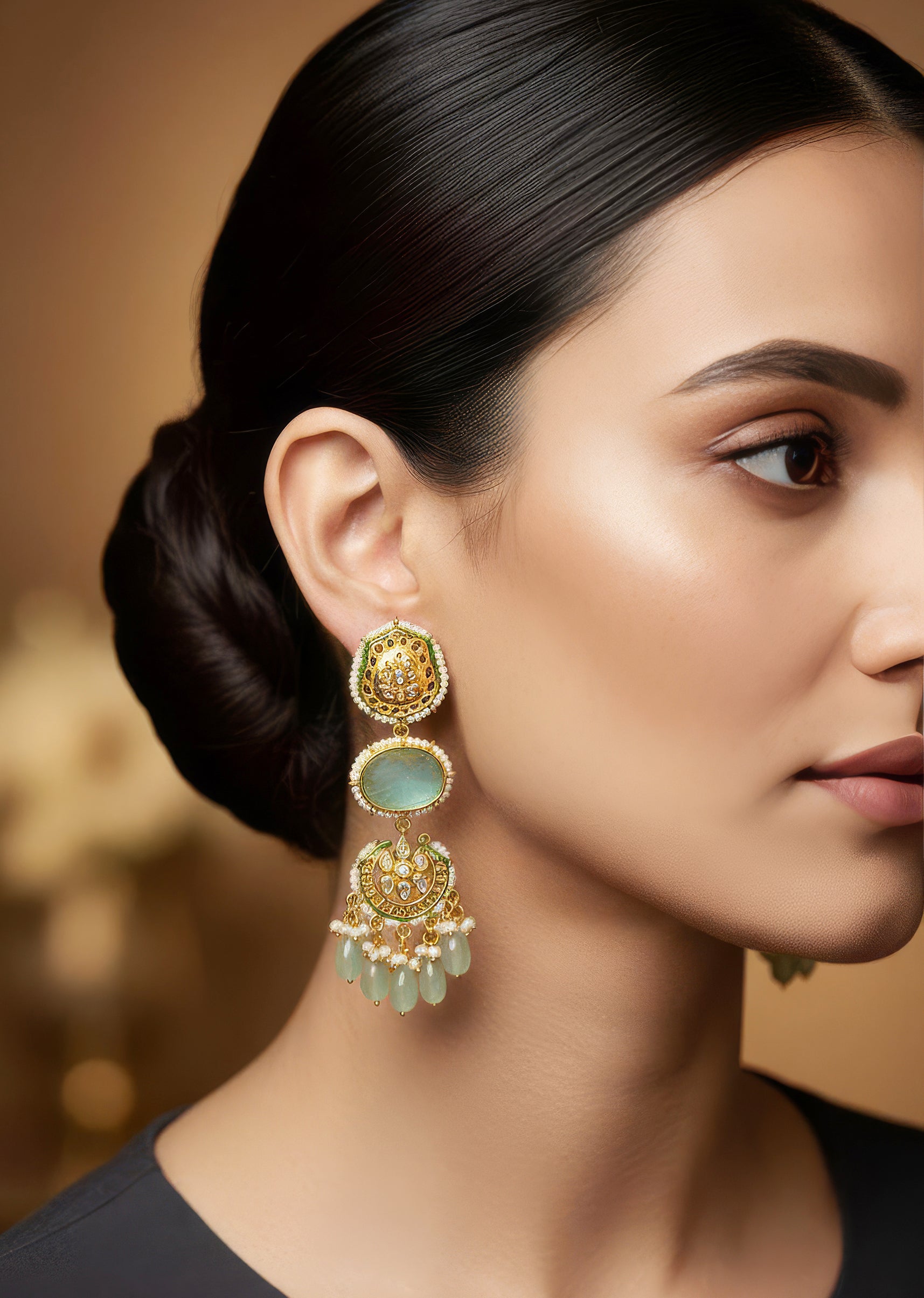 Multi Traditional Gold Kundan Polki Earrings with Stones