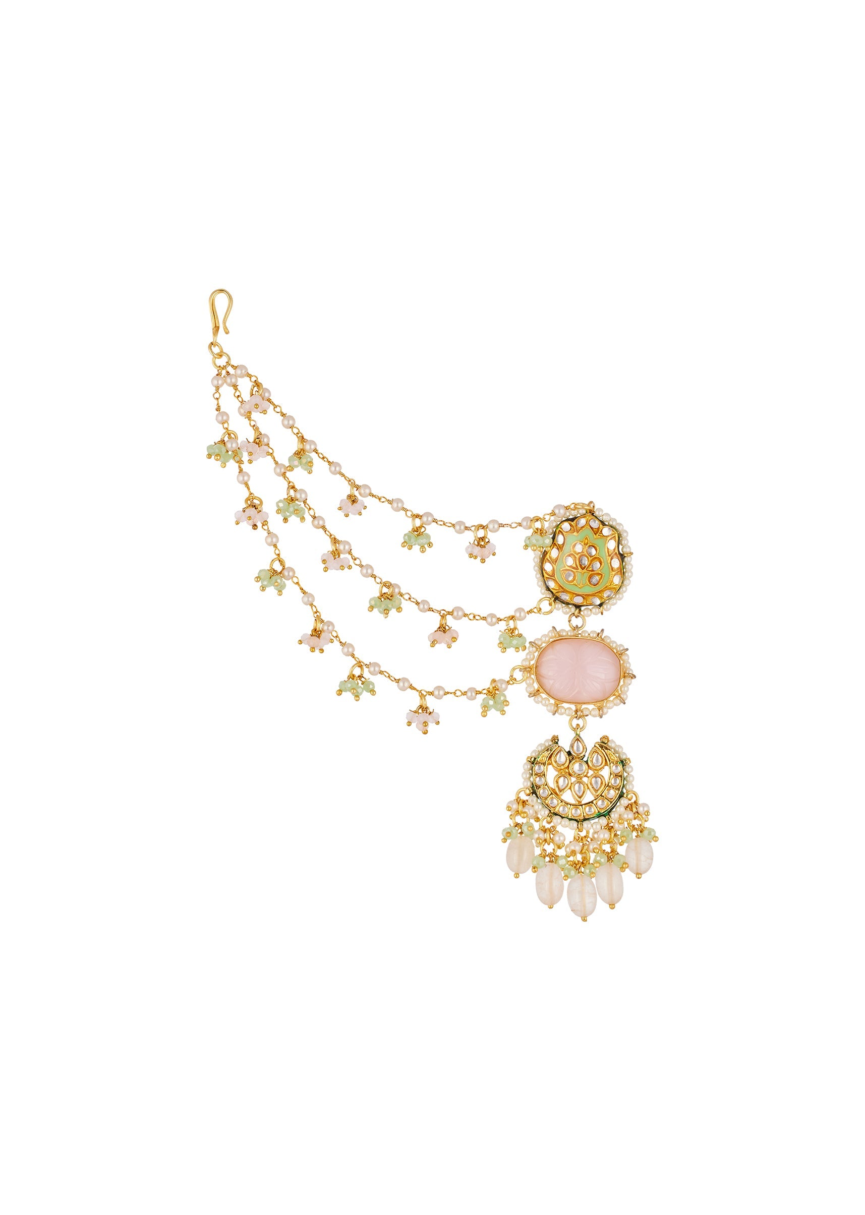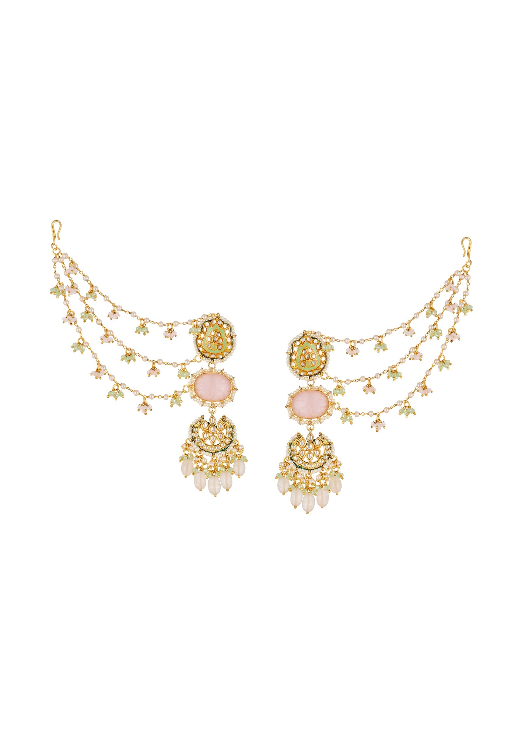 Multi Traditional Kundan Kaan Chain Earrings with Faux Pearl and Stones