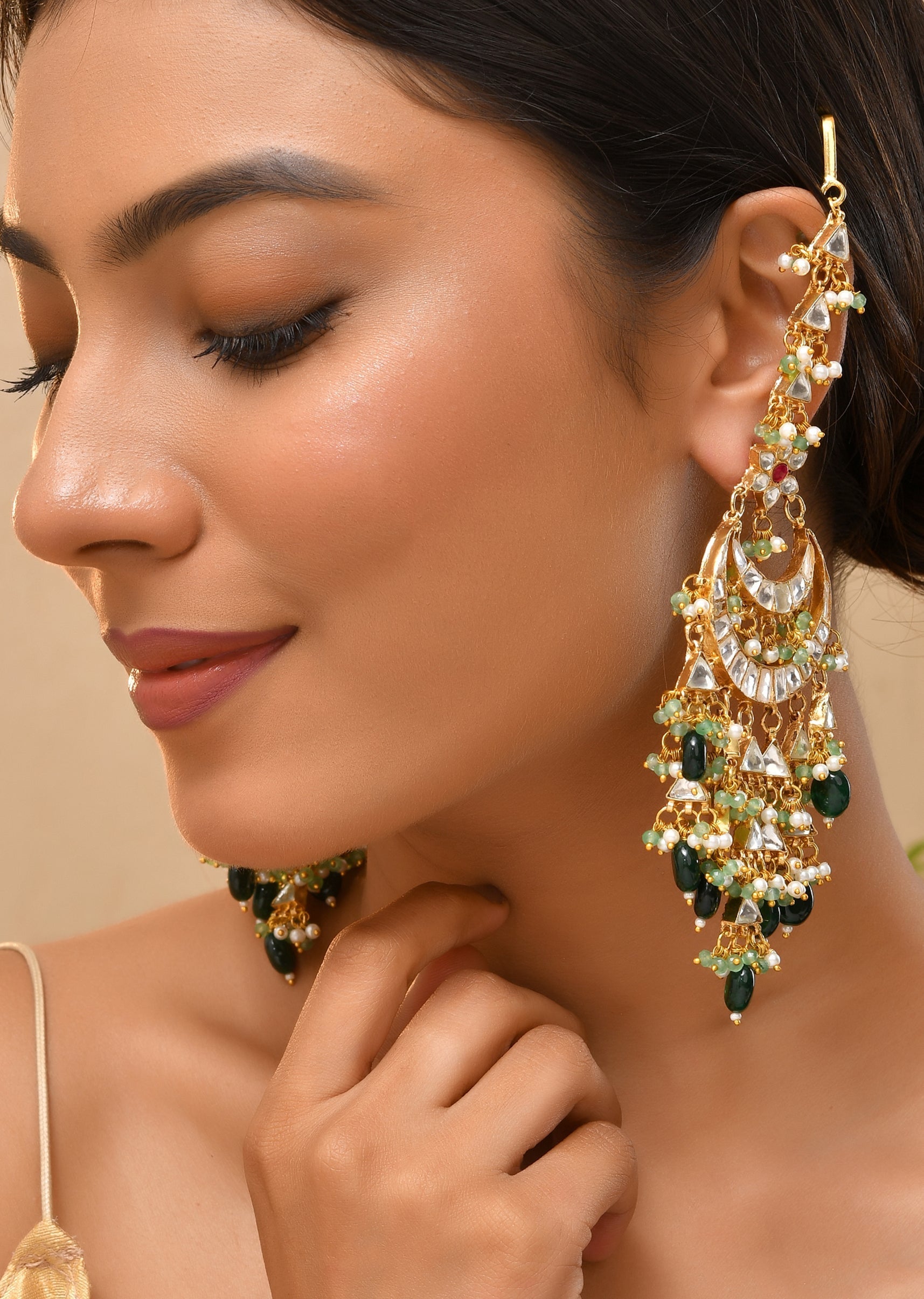 These multi white earrings feature delicate pachi kundan work with intricate kundan detailing for a festive and elegant look. Perfect for mehendi celebrations, they are ideal for bridesmaids or guests... More Product Details