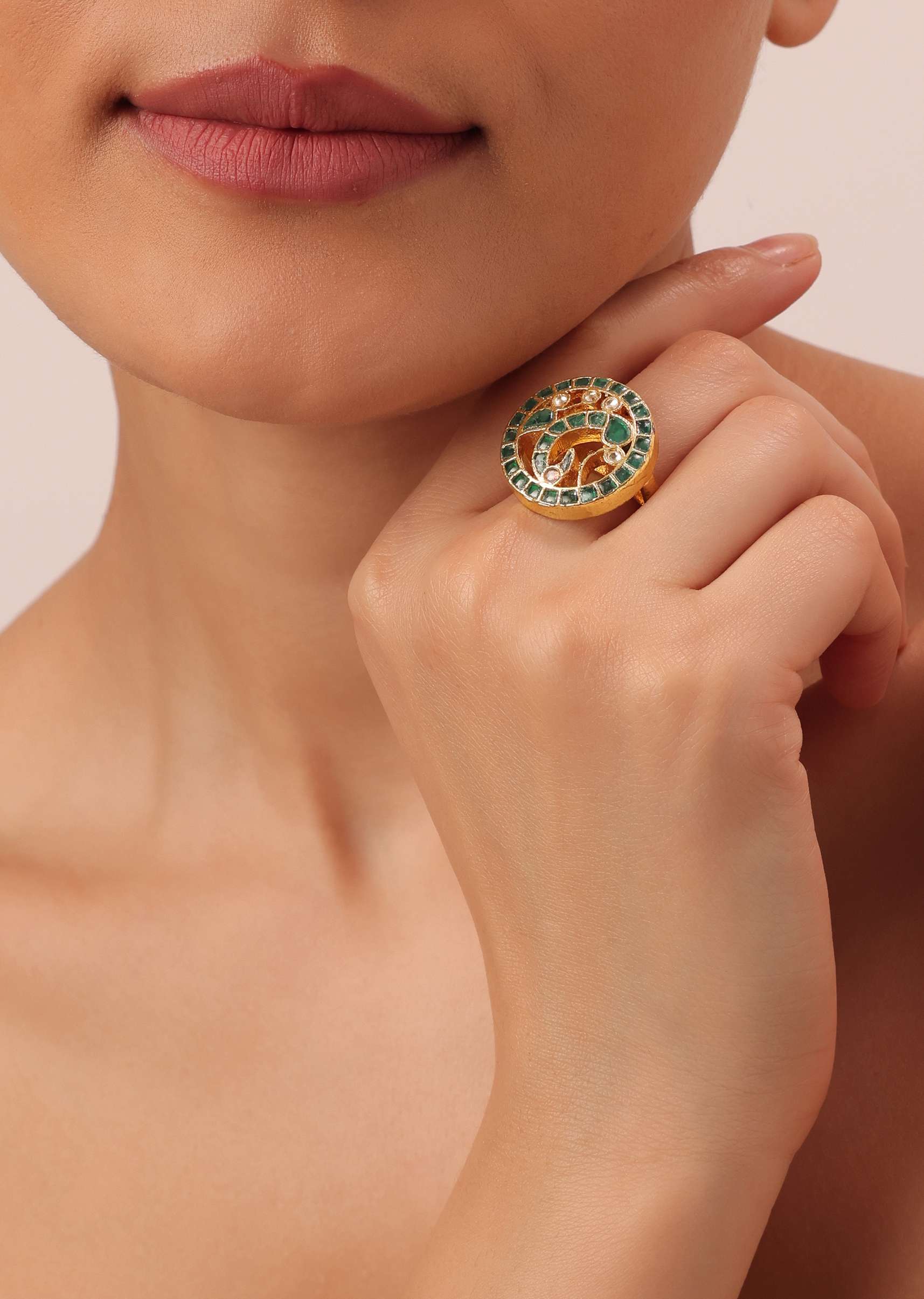 Multicolor Circular Ring With Studded Kundan And Meenakari Work