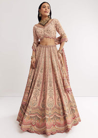 Multicolour Printed Stone Cutdana Embroidered Lehenga With Crepe Dupatta