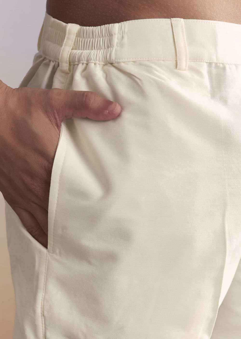 Fit Tips:The men’s kurta sits clean on the shoulders with a straight, breathable fall, and the drawstring bottoms rest comfortably at the waist for easy movement.