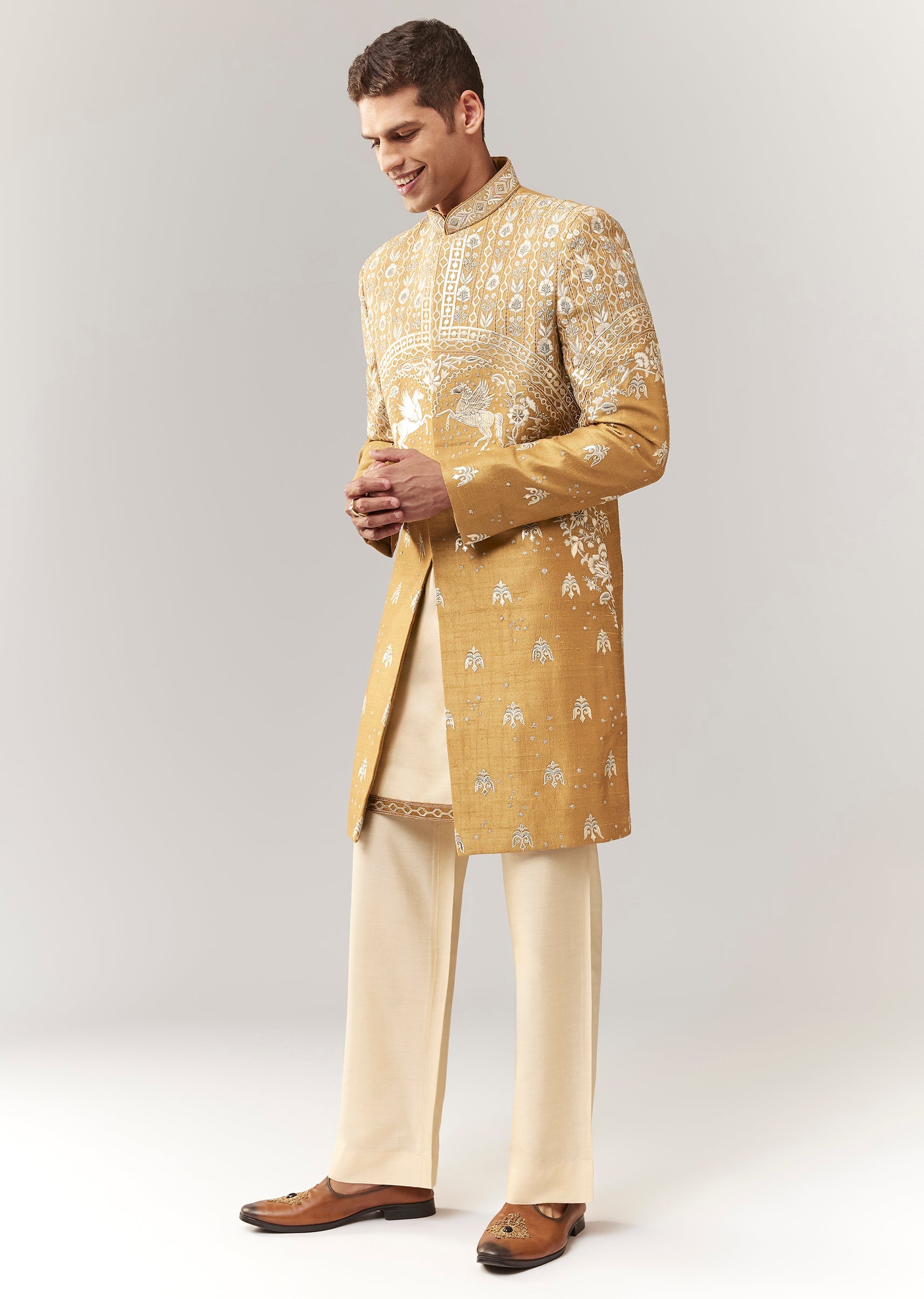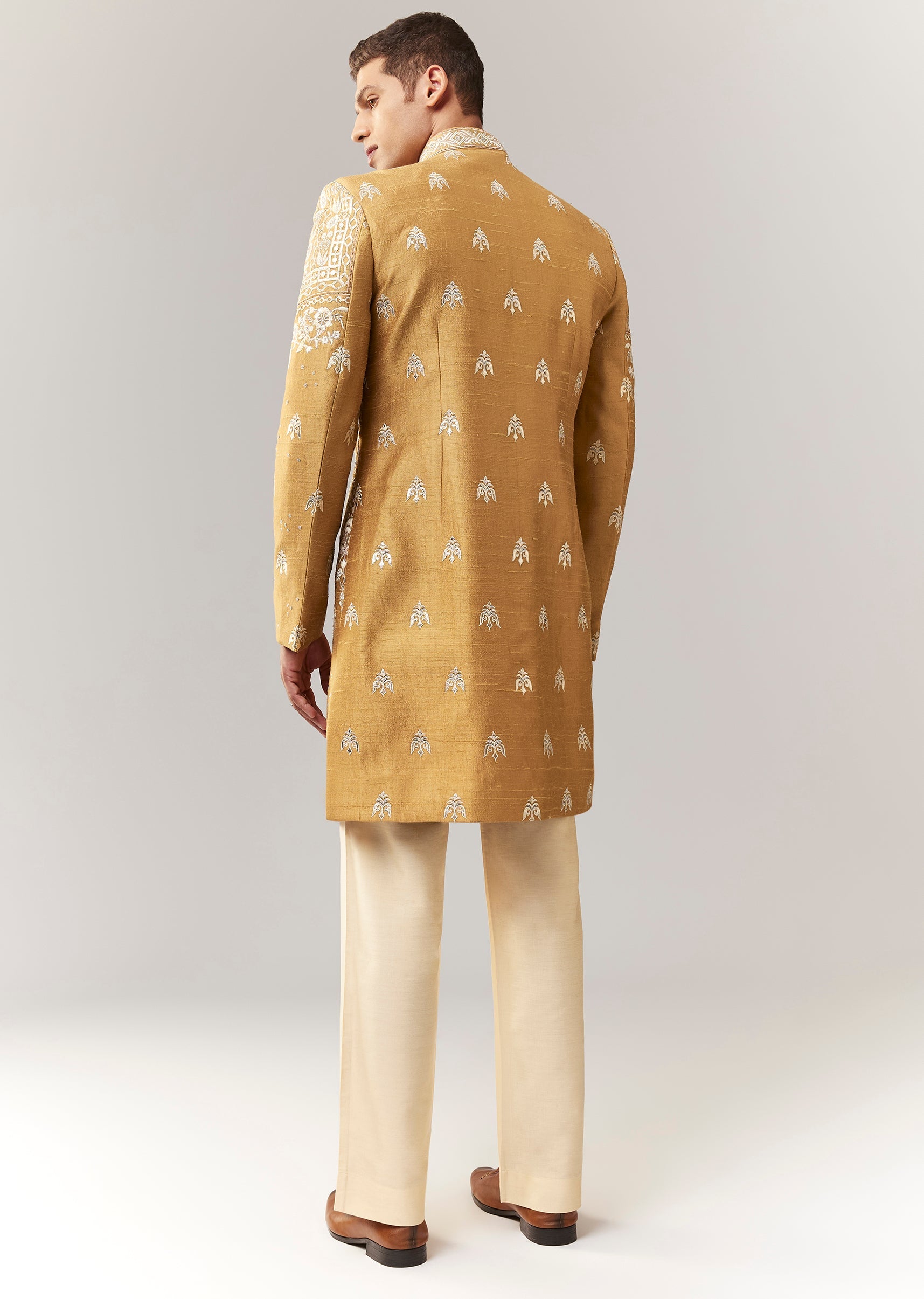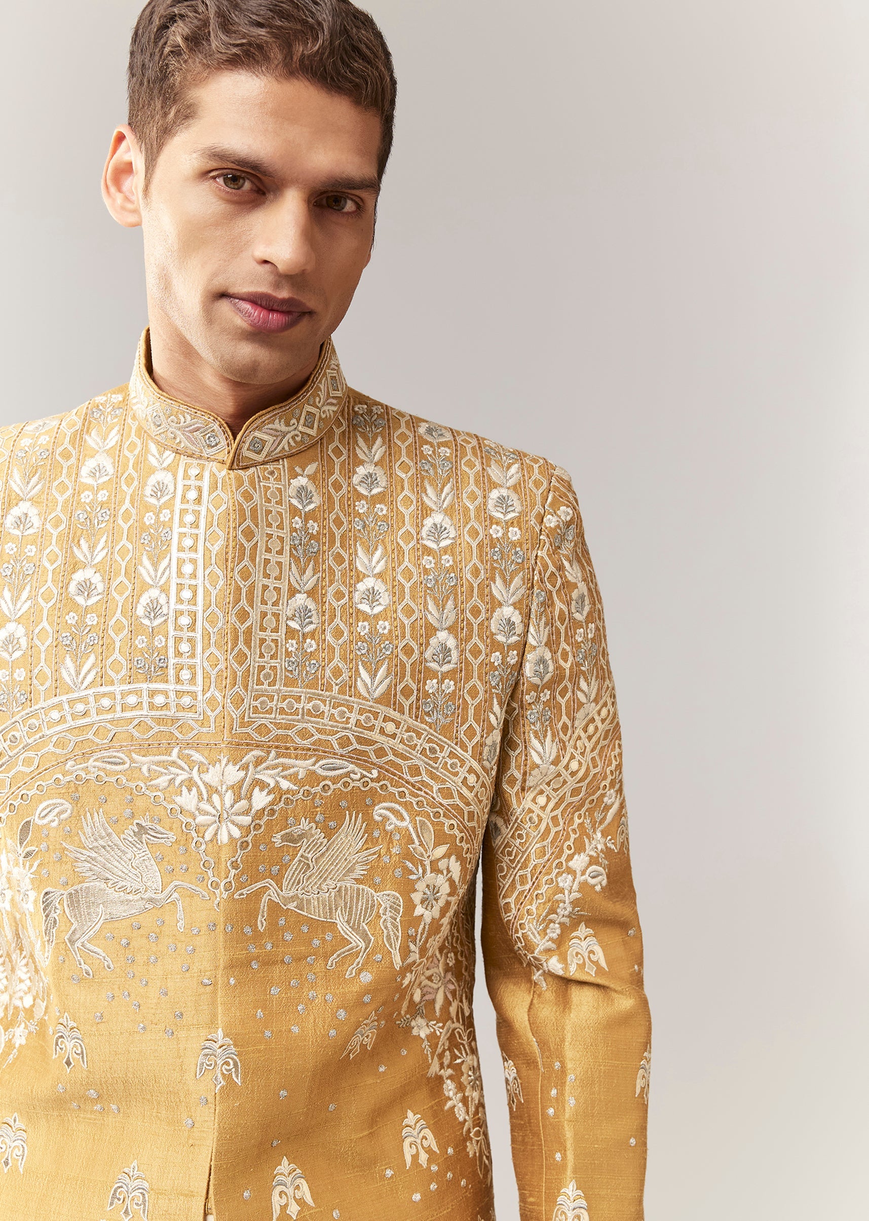 Mustard Raw Silk Indo Western With Applique And Resham Work