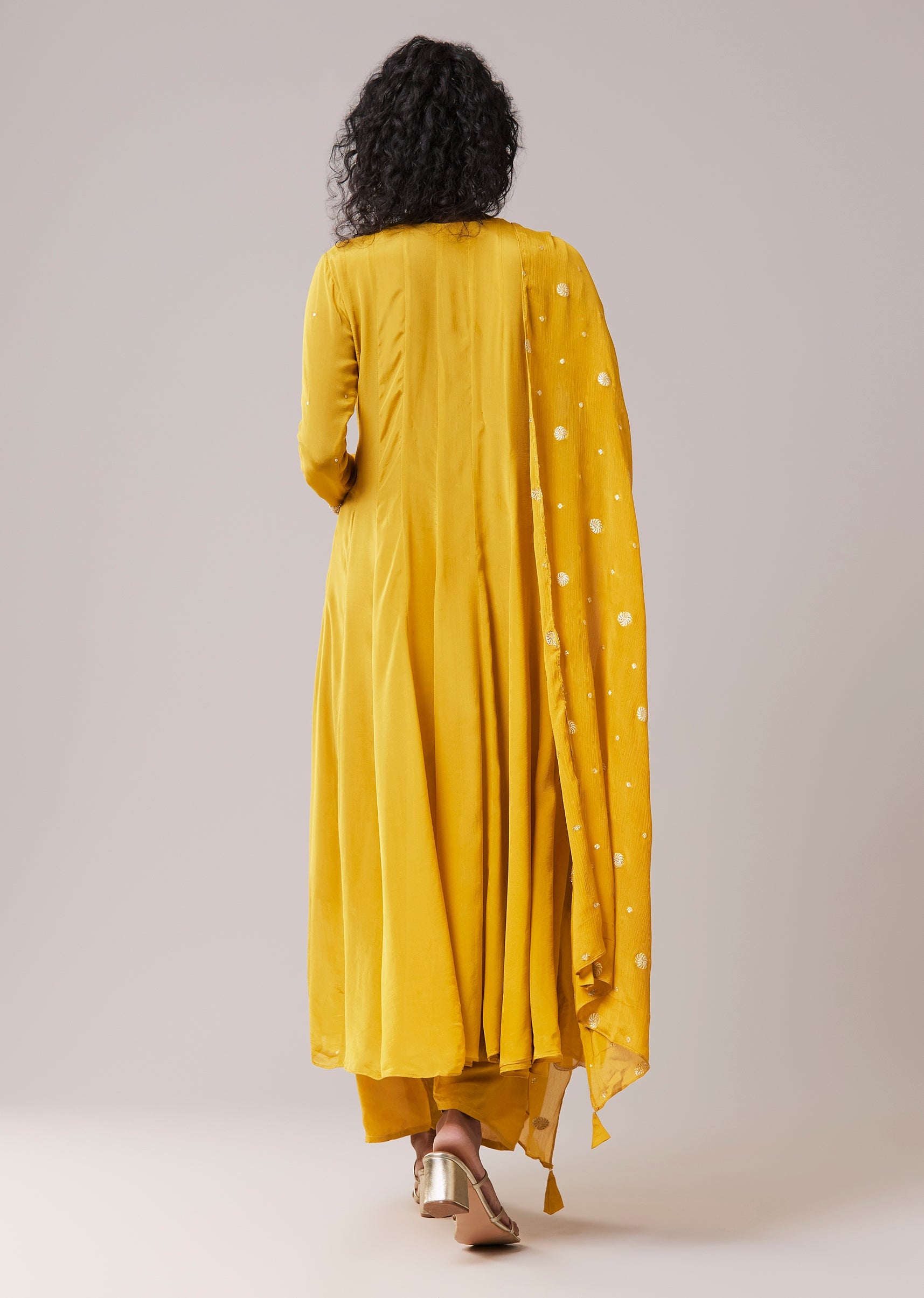 Mustard Yellow Chinon Sequin Embroidered Anarkali Set