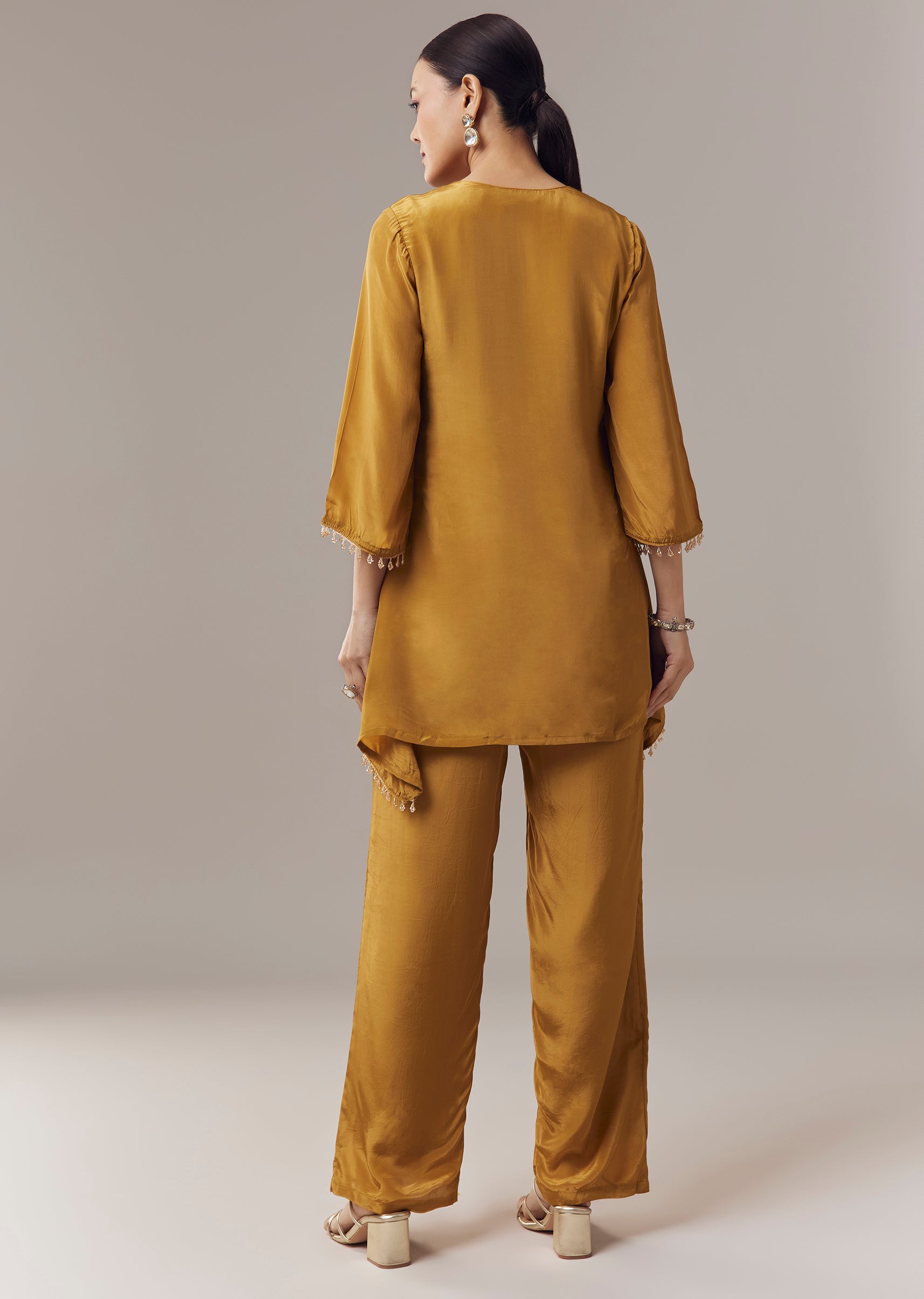 Mustard Yellow Coord Set With Sequins And Zari Work