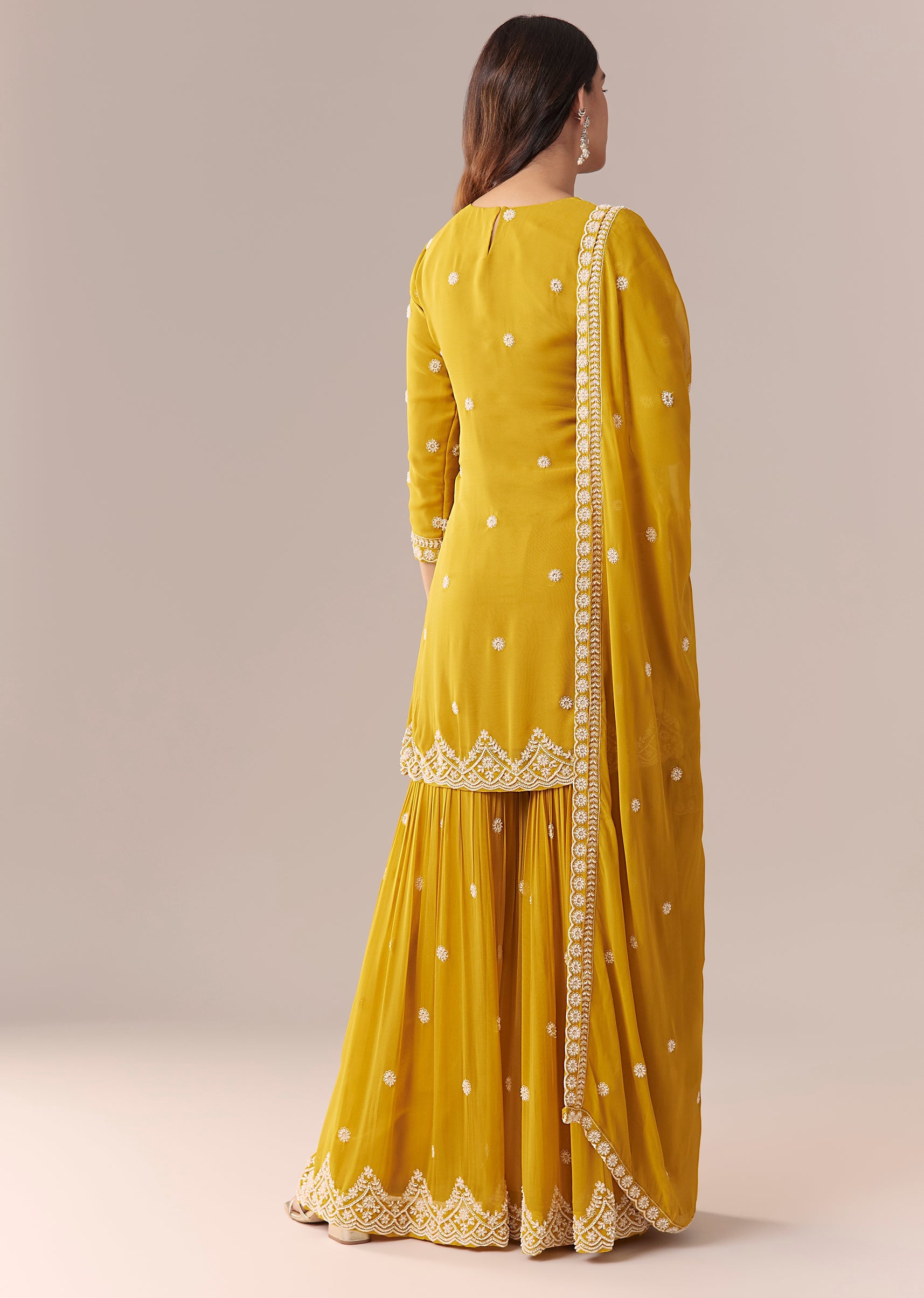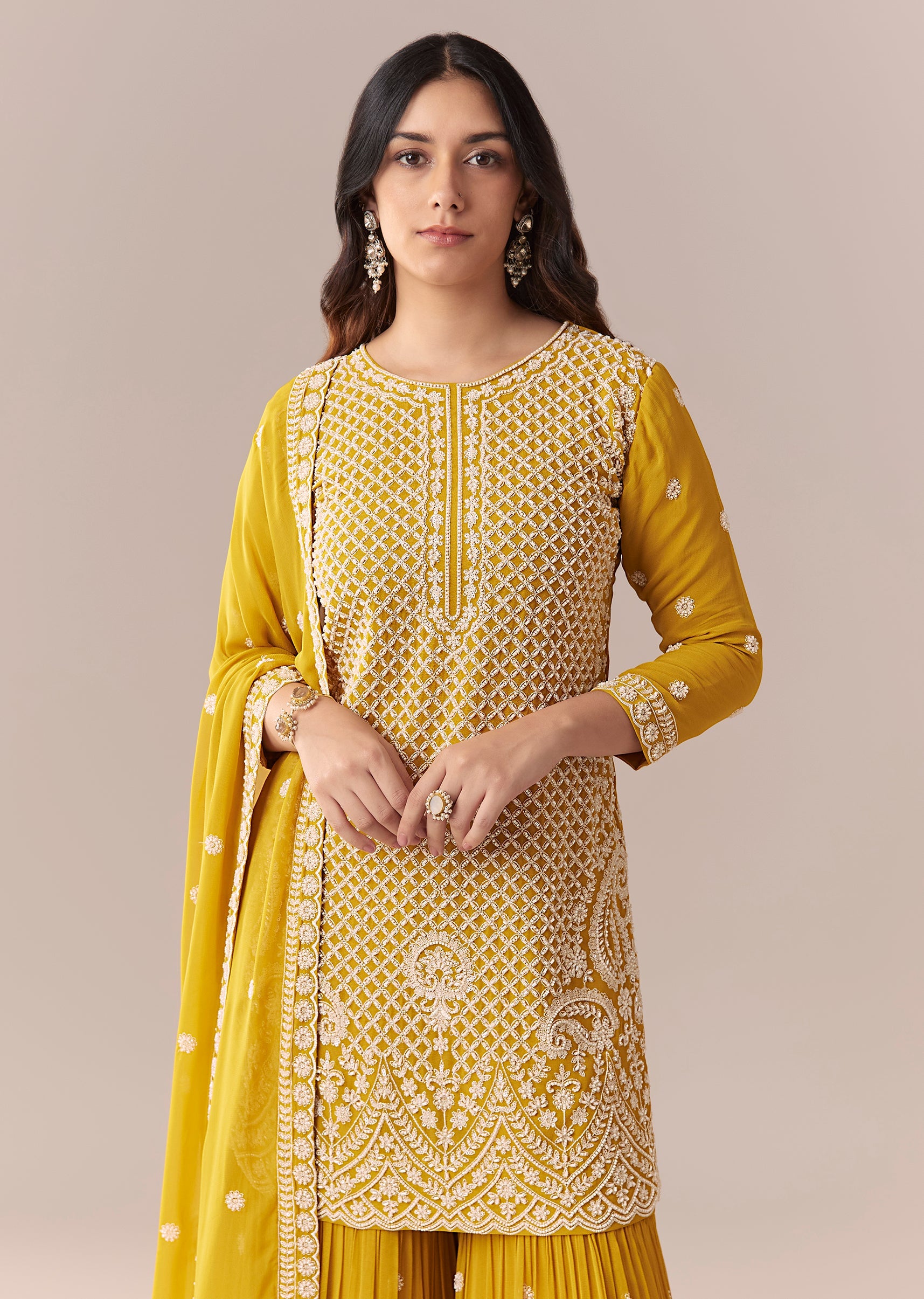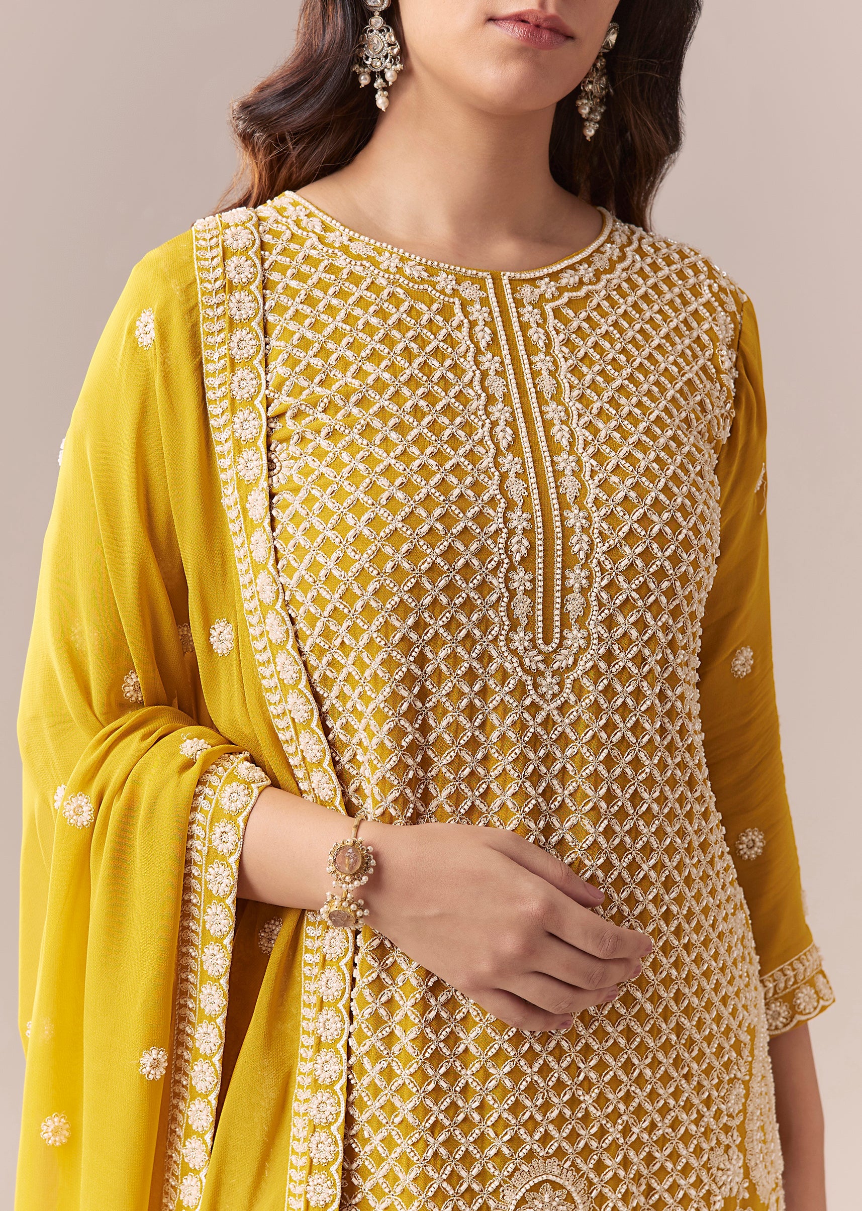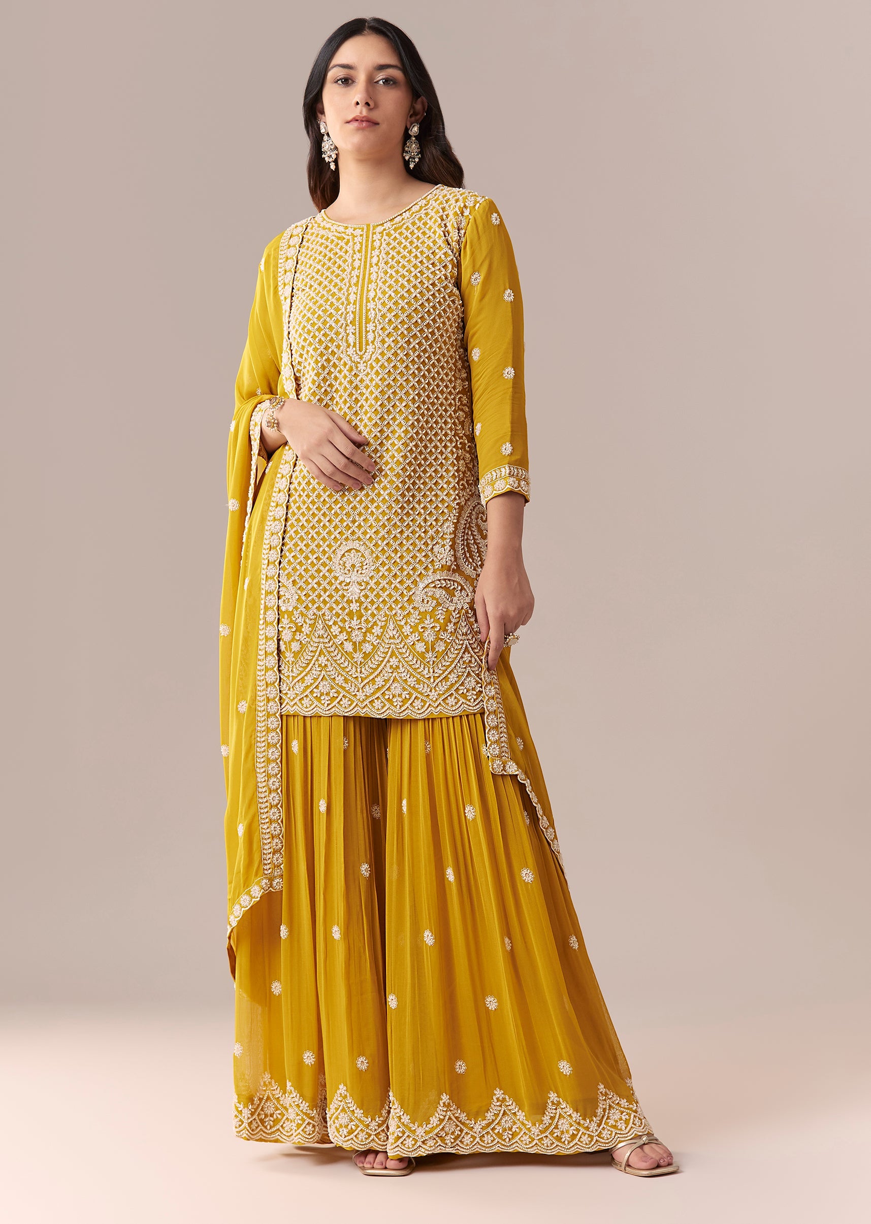 Mustard Yellow Embellished Sharara Suit Set With Dupatta