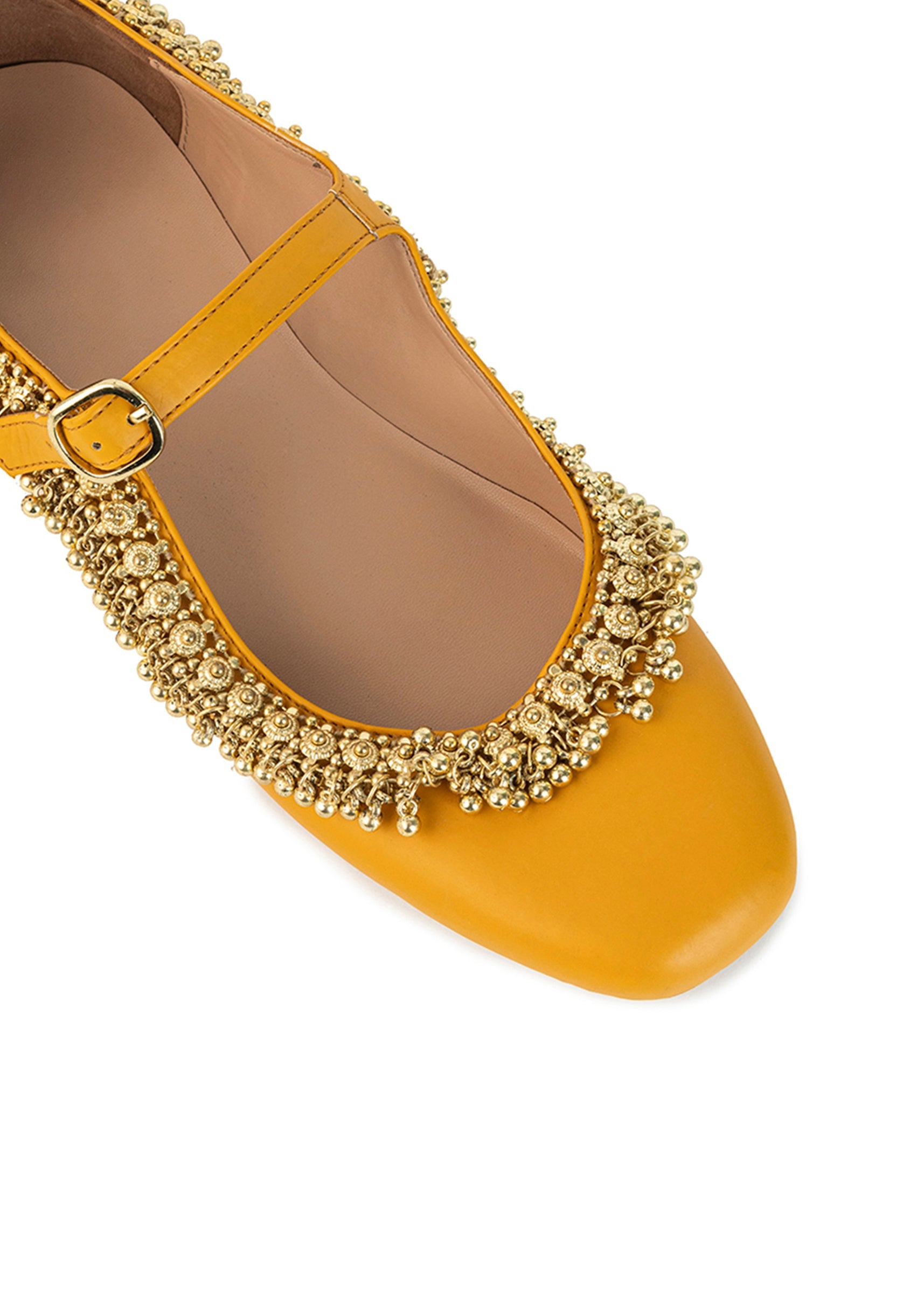 Mustard Yellow Faux Leather Bead Embellished Juttis