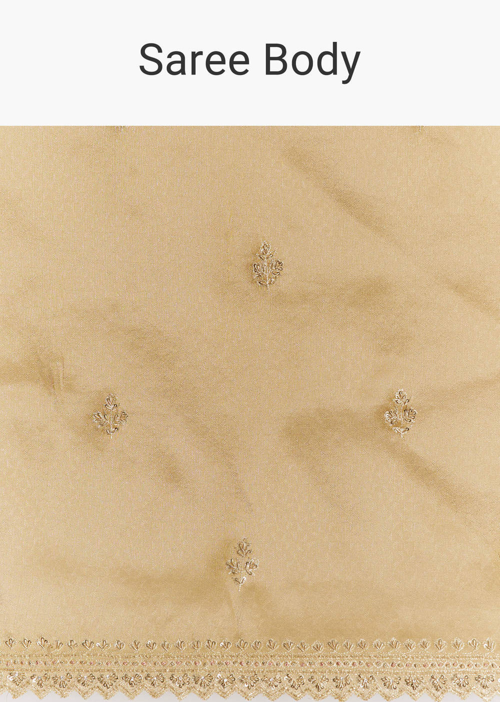 Mustard Yellow Jacquard Tissue Saree With Zigzag Zardosi Work