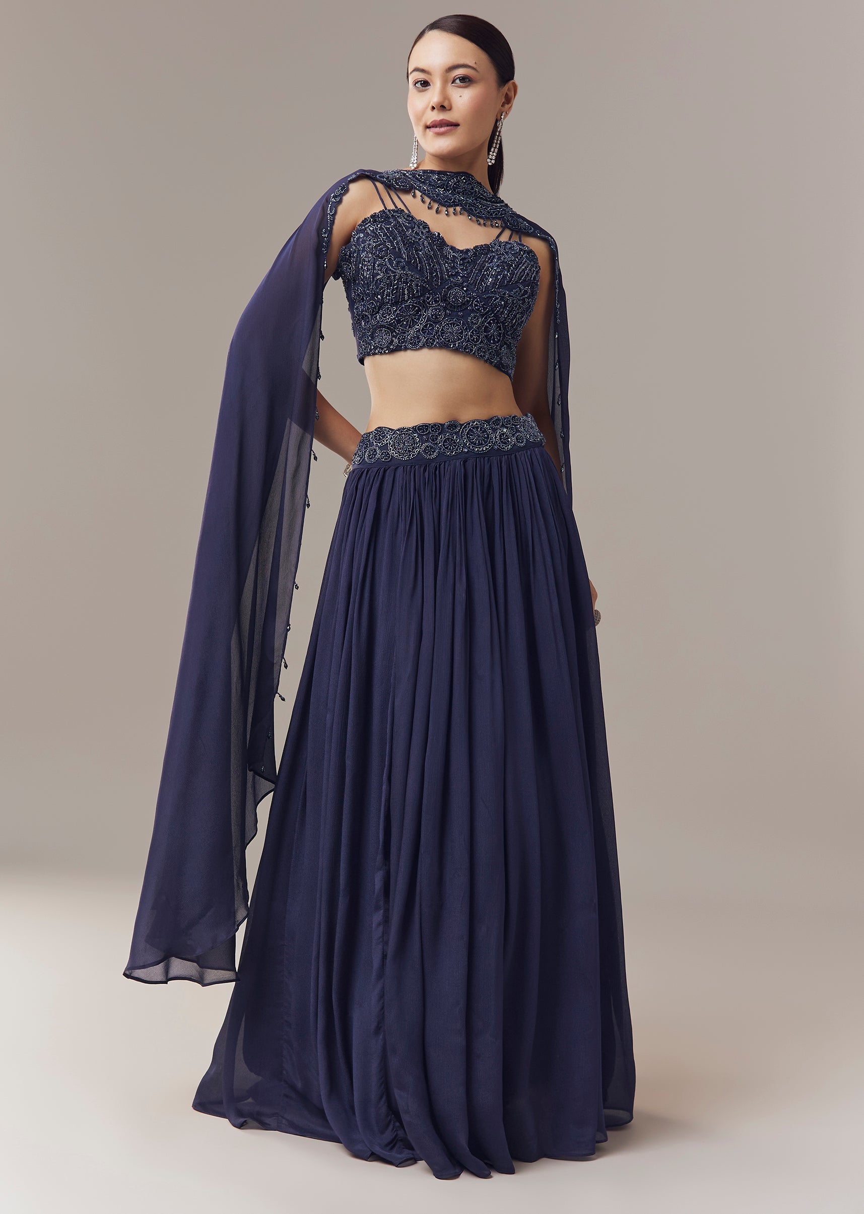 Navy Blue Lehenga With Beads Sequins And Cut Dana Work