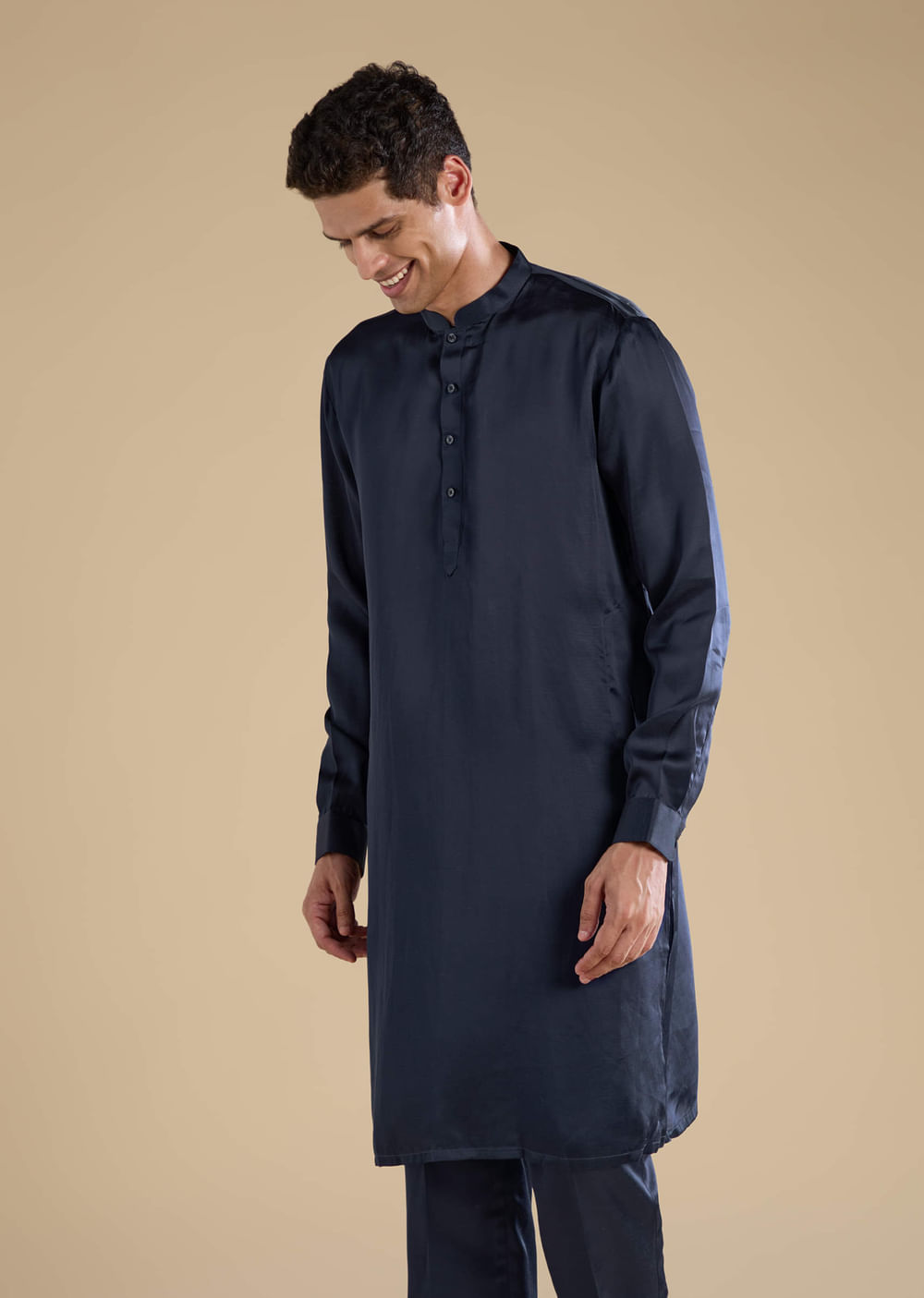 Radiant and refined, this navy blue jacket and kurta set exudes timeless festive charm. The intricate patch and resham embroidery add a graceful shimmer, beautifully complementing the richness of its dual-textured fabric. A perfect choice for weddings, receptions, and grand celebrations, it blends classic artistry with contemporary sophistication. Awarded as the Most Trusted Brand, we're delivering styles you love, just as promised.
