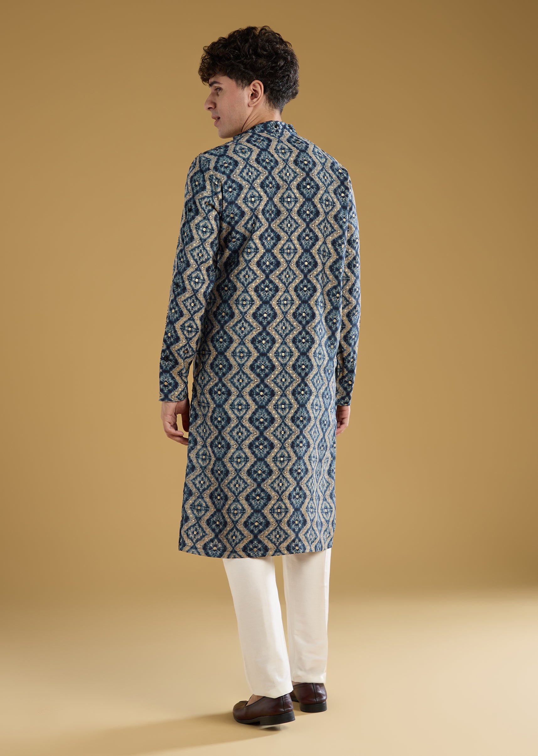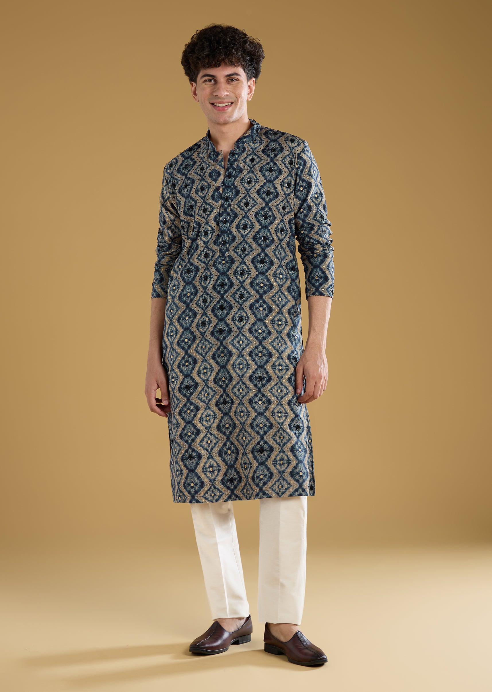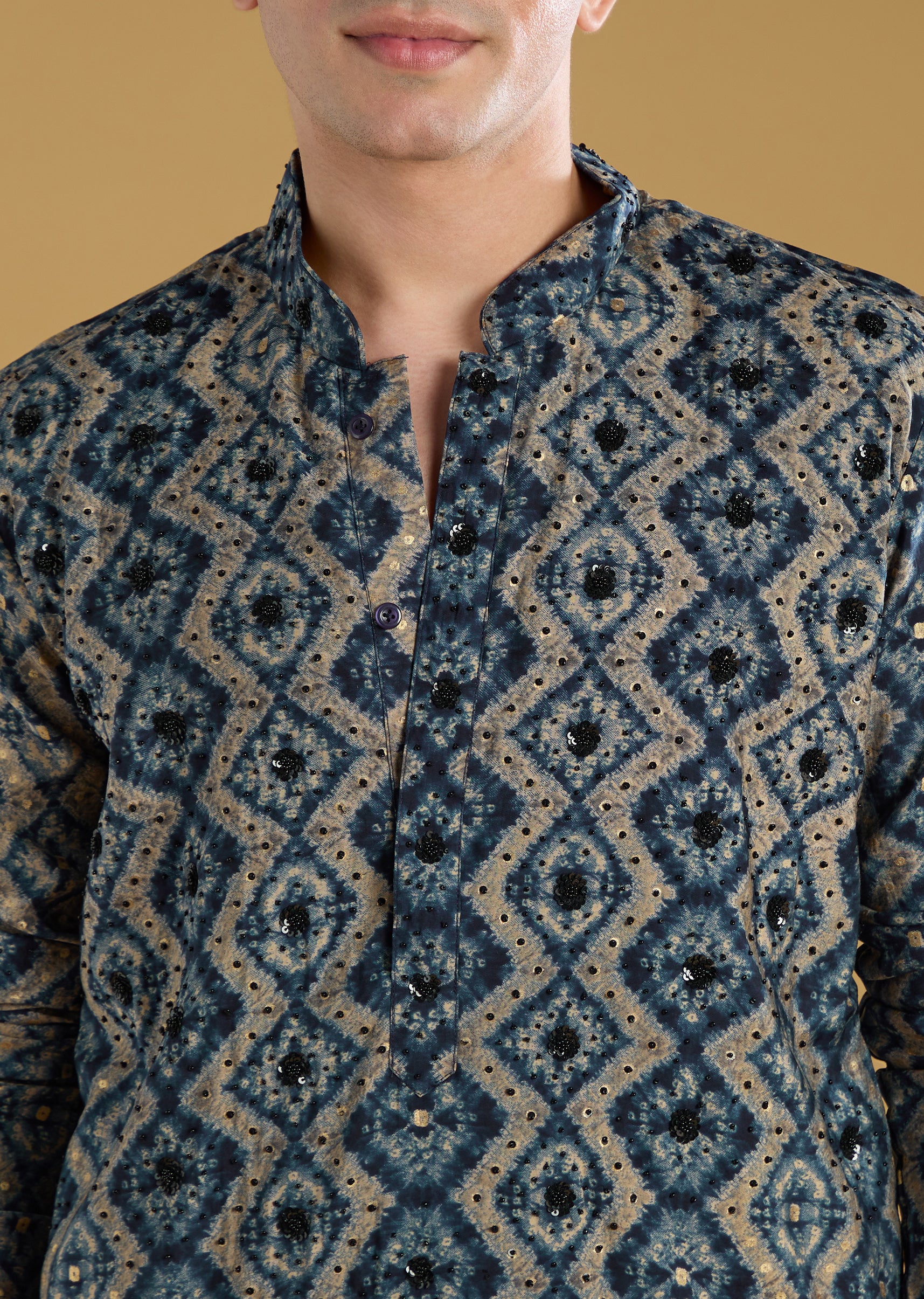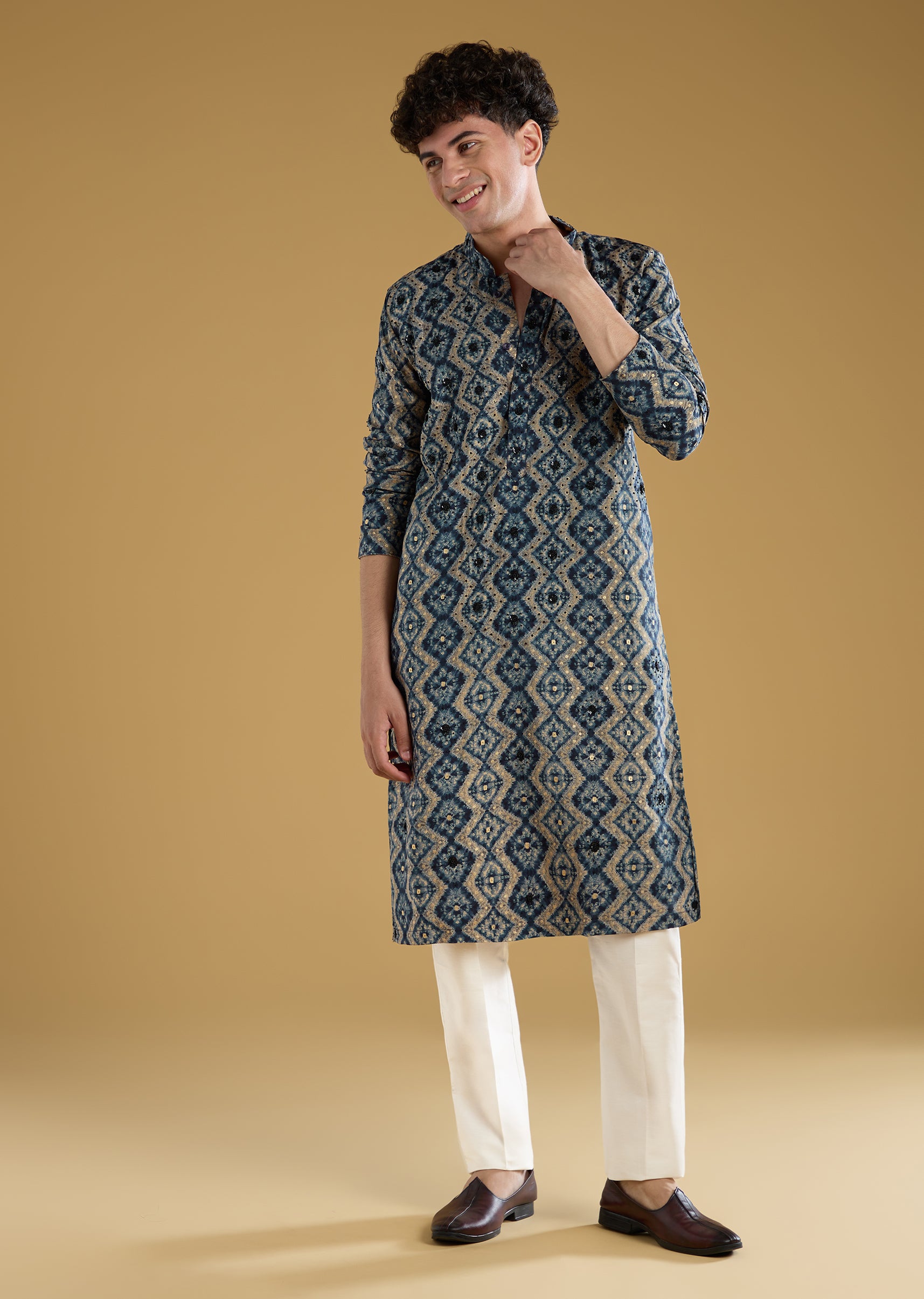 Navy Blue Modal Chanderi Sequin Embroidered Kurta Set
