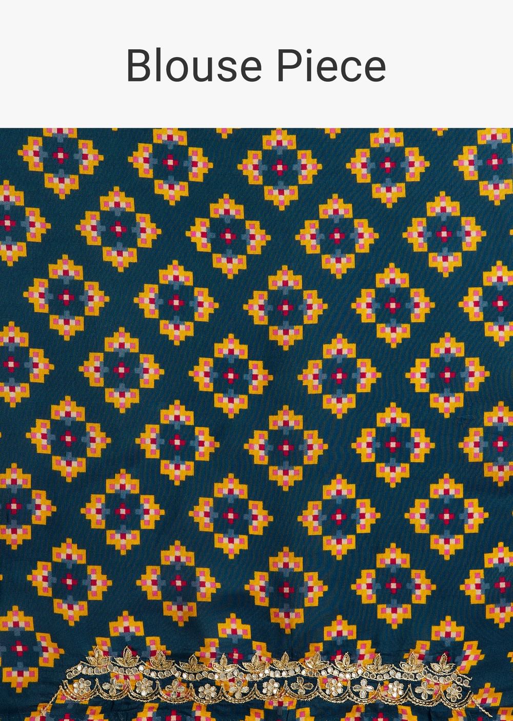 Navy Blue Muslin Ajrakh Printed Saree With Gota And Mirror Work