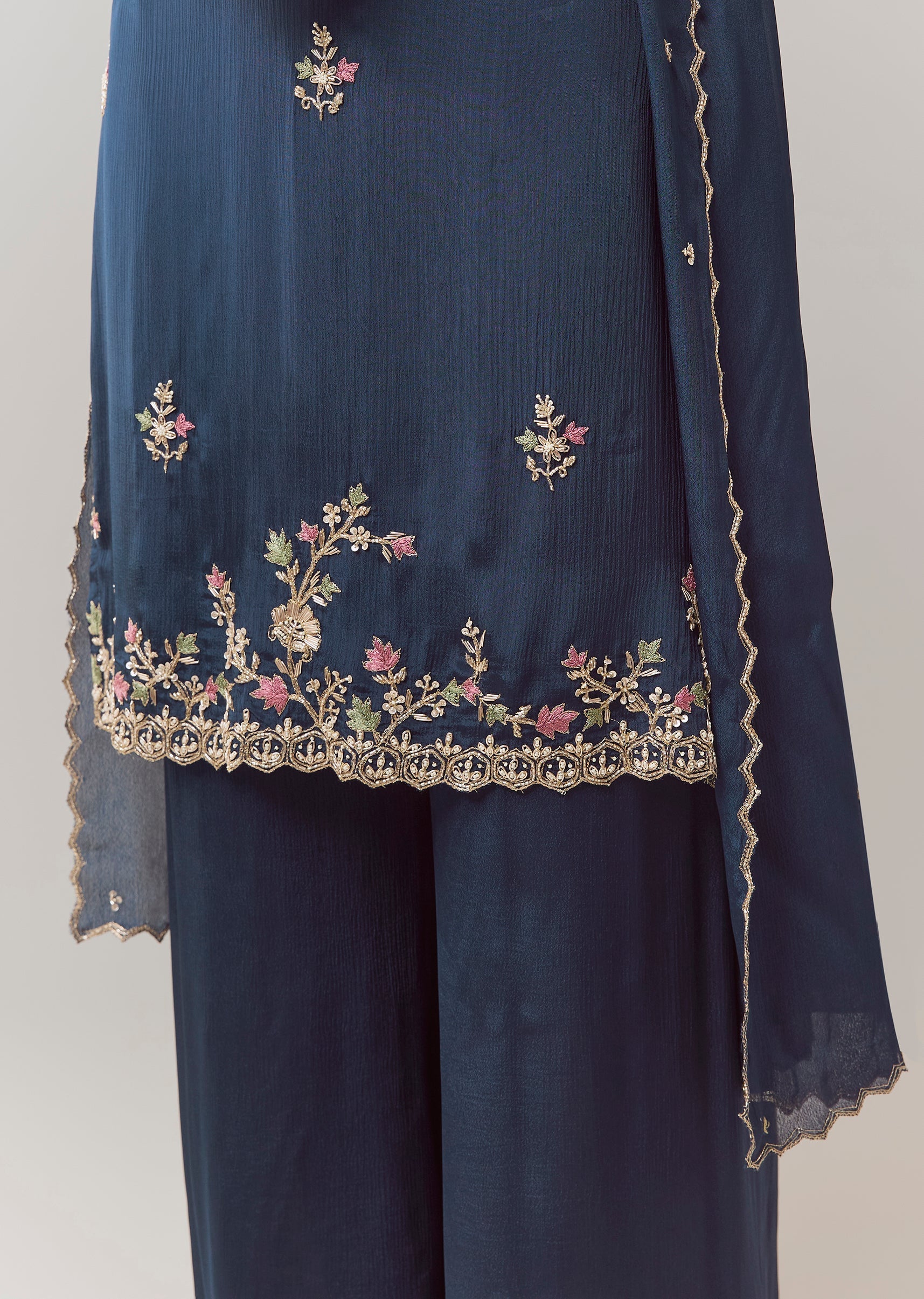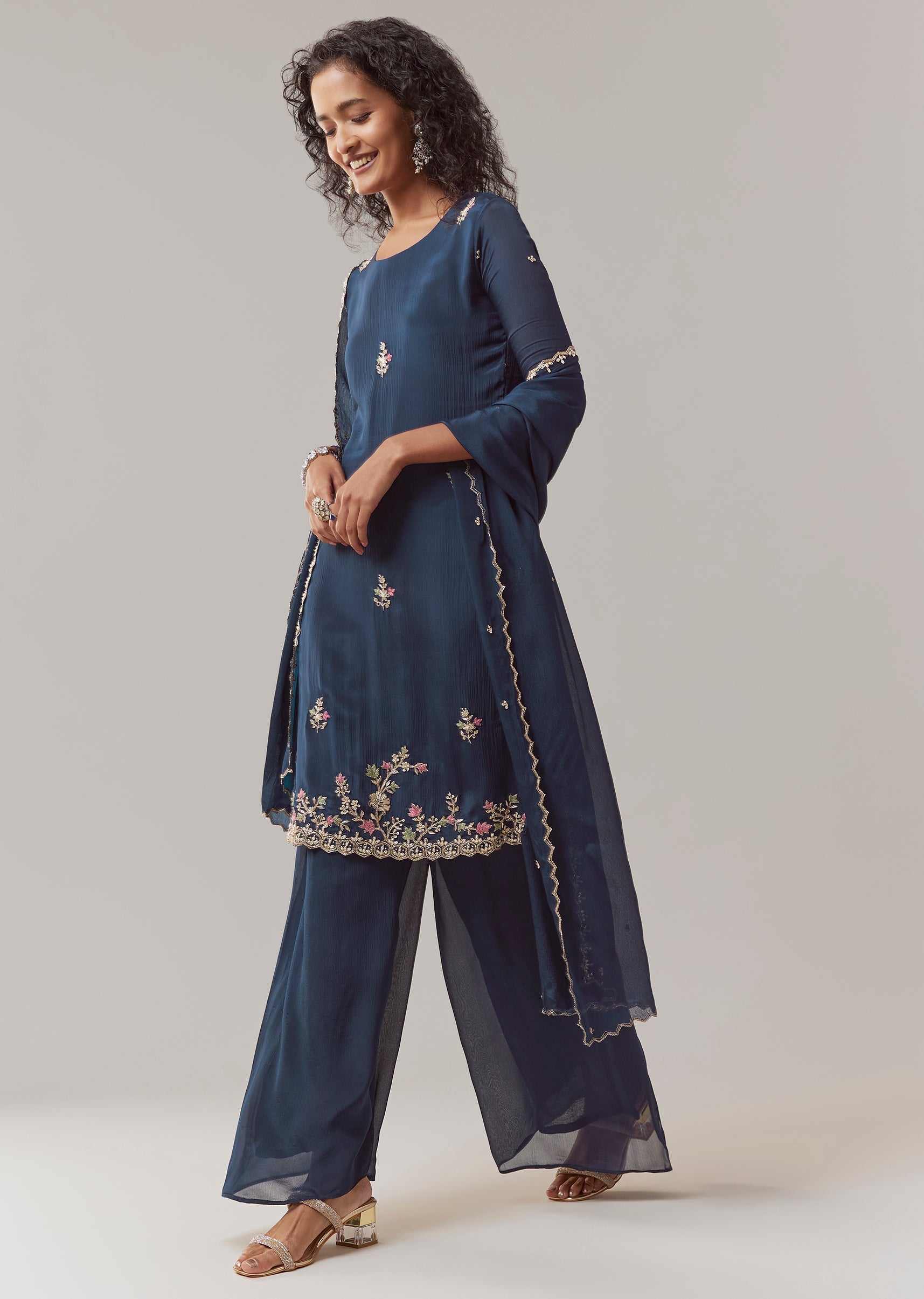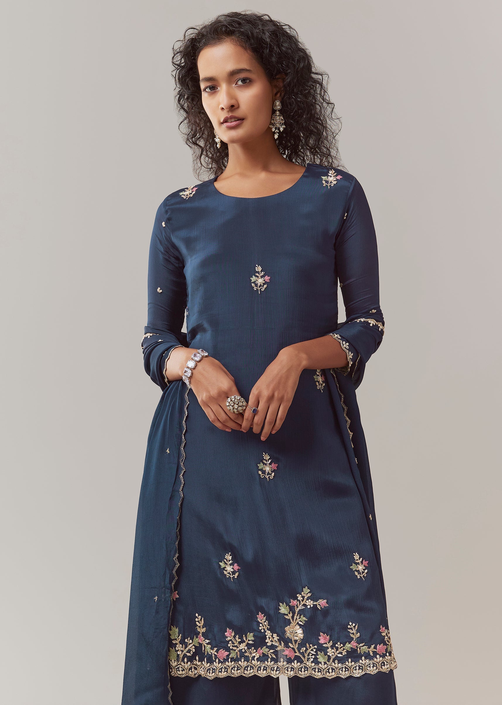Navy Blue Sequin Work Chinon Kurta Palazzo Set