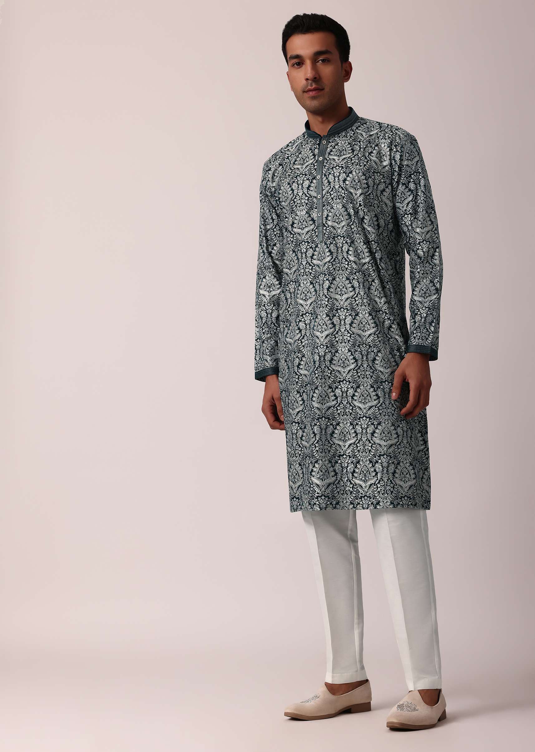 Fit Tips:Choose a tailored fit to showcase the detailed self-work, ensuring a stylish and comfortable wear during festive occasions.