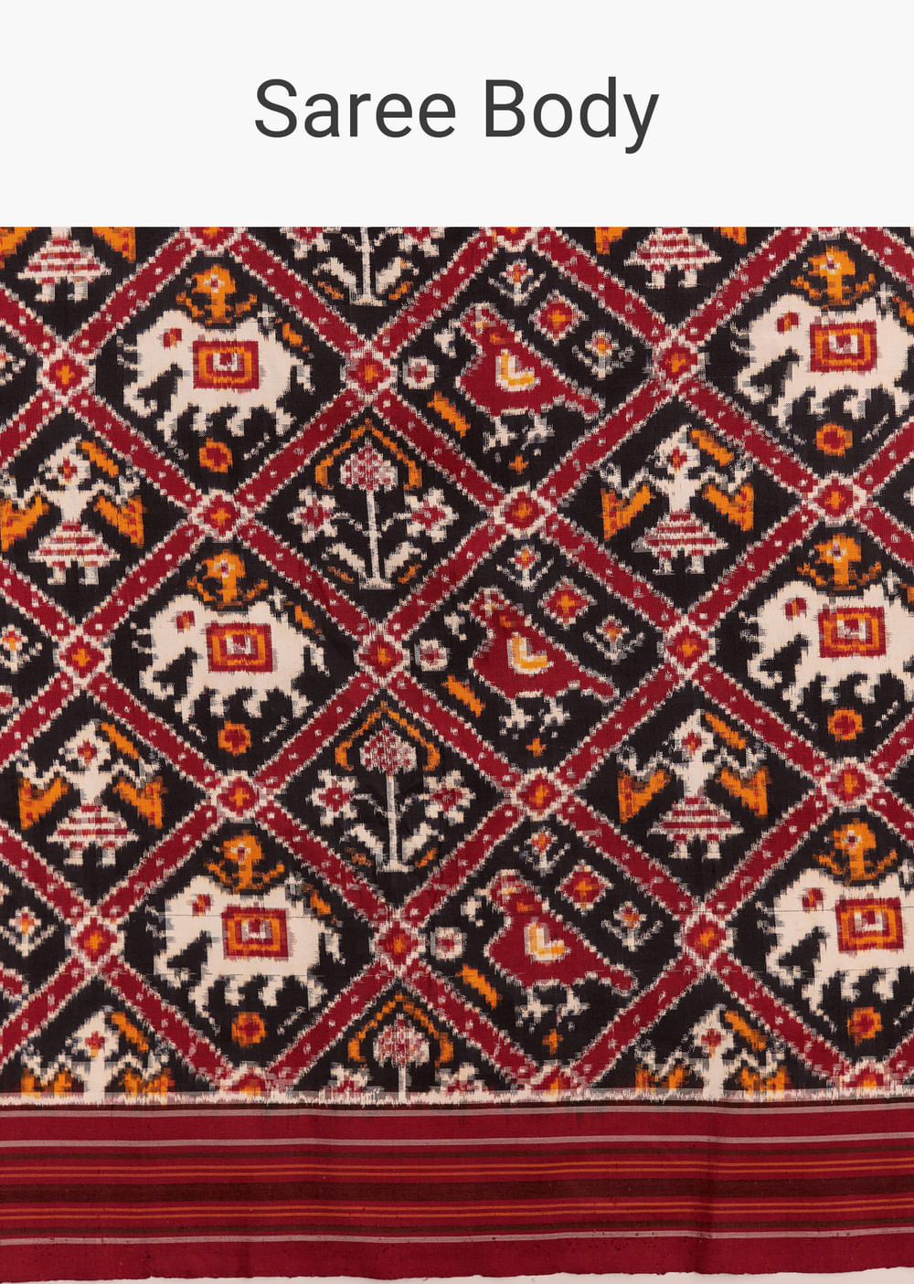 Navy Blue Silk Single Ikkat Handwoven Patola Saree With Animal Motifs