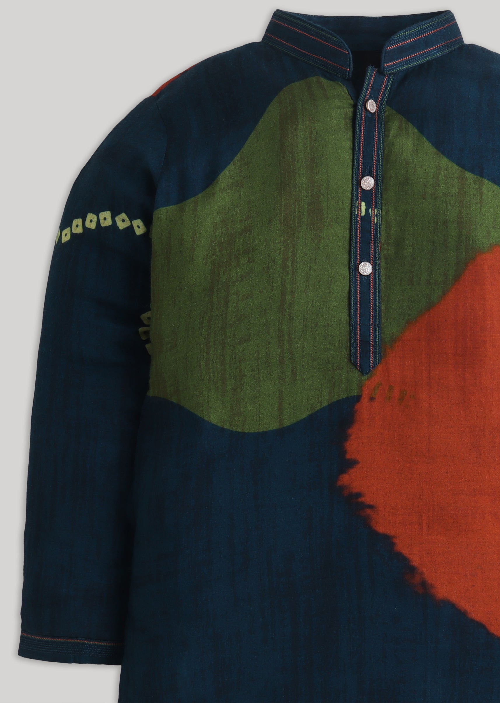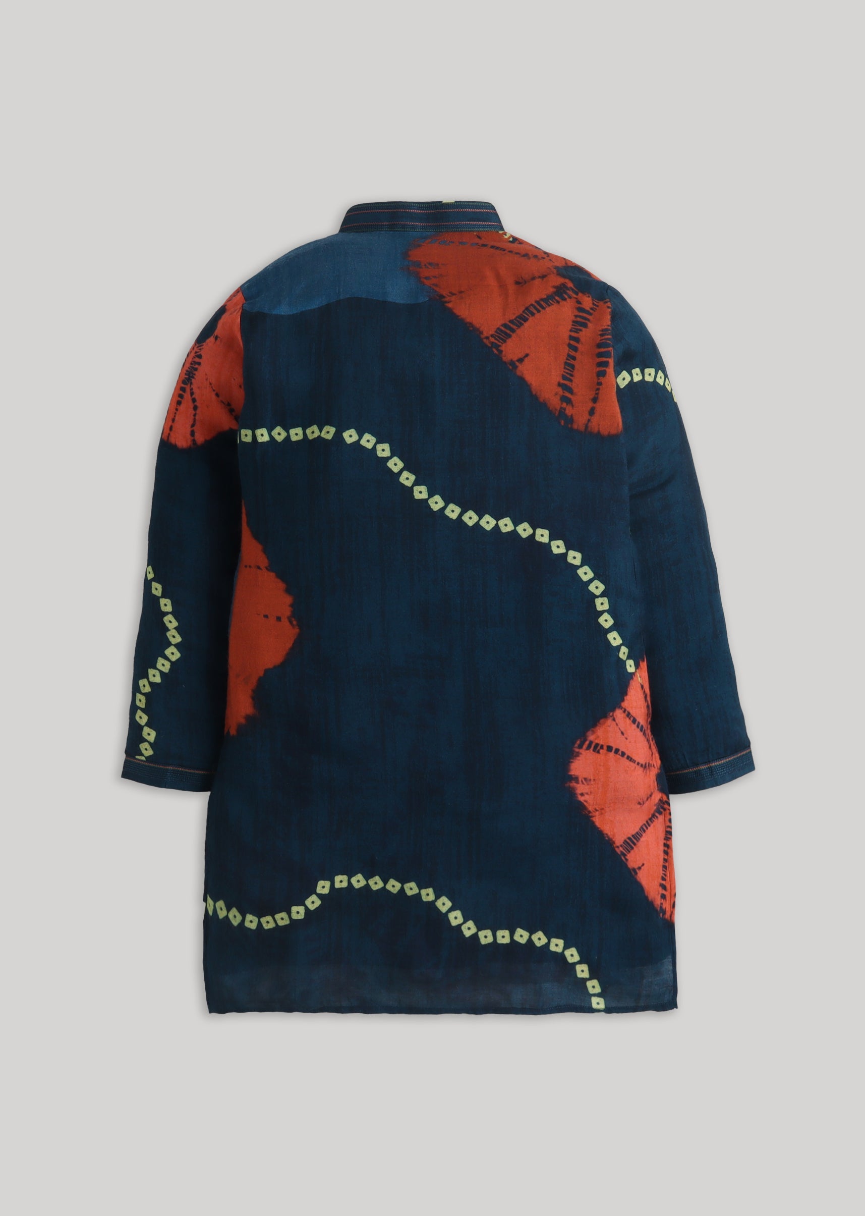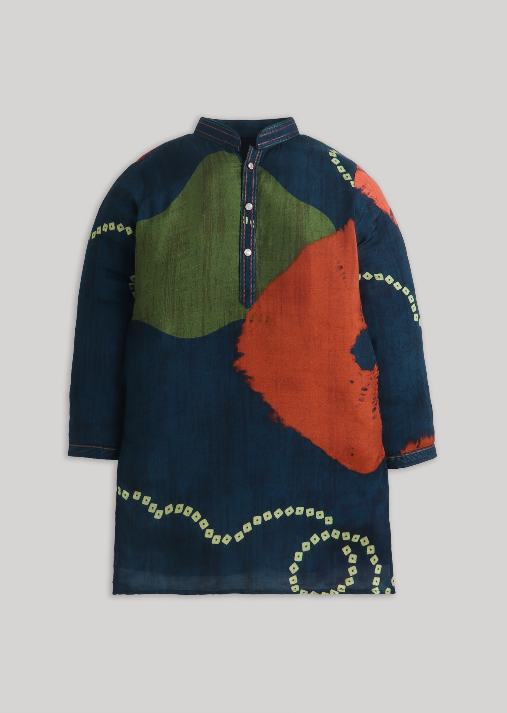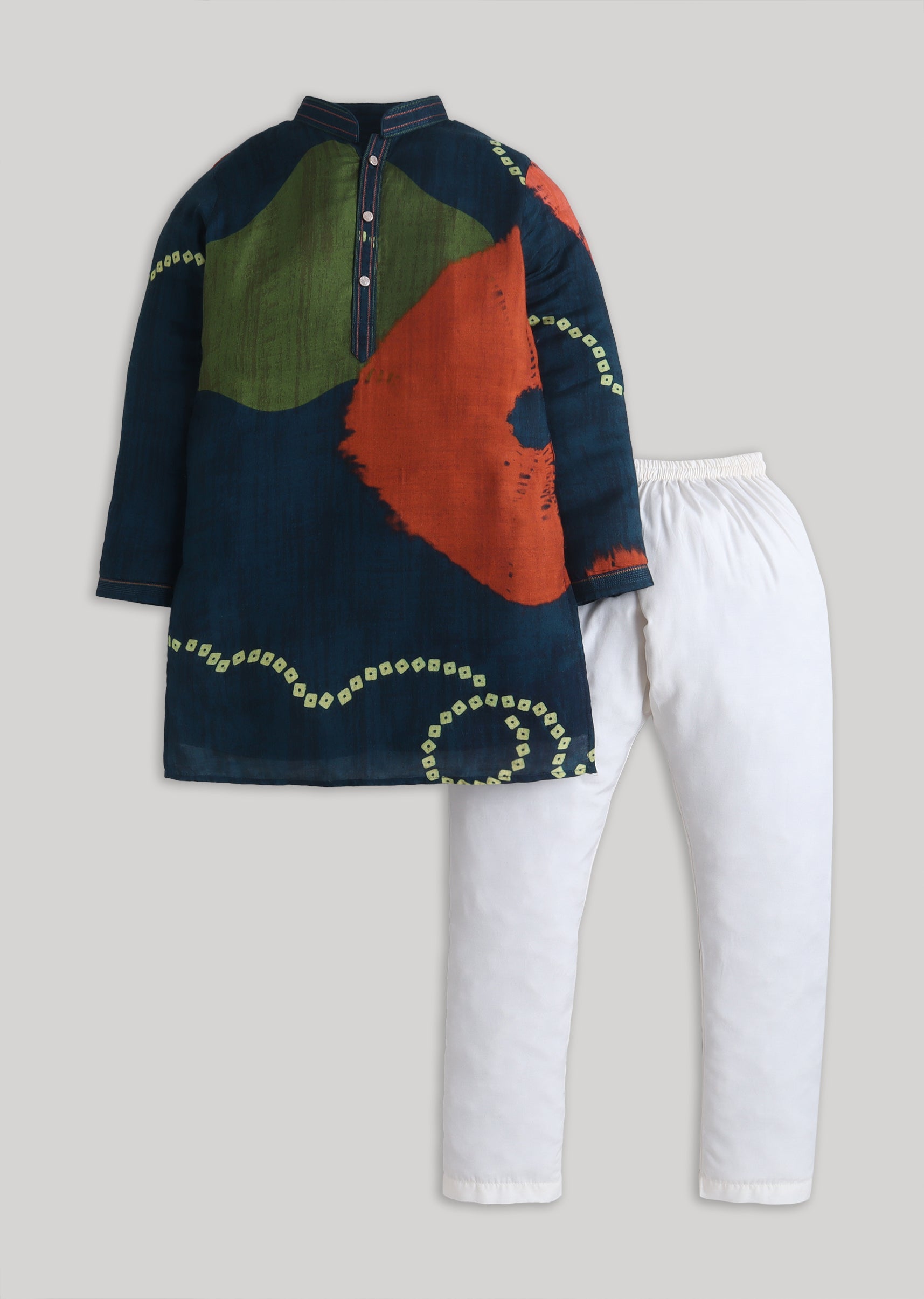 A modern festive pick, this navy cotton kurta set features a standout tie-dye pattern with a bright color-pop vibe. Finished with a mandarin collar, full sleeves and a front-button closure, it comes with a matching bottomperfect for festive gatherings and family functions. Awarded as the Most Trusted Brand, we're delivering styles you love, just as promised.