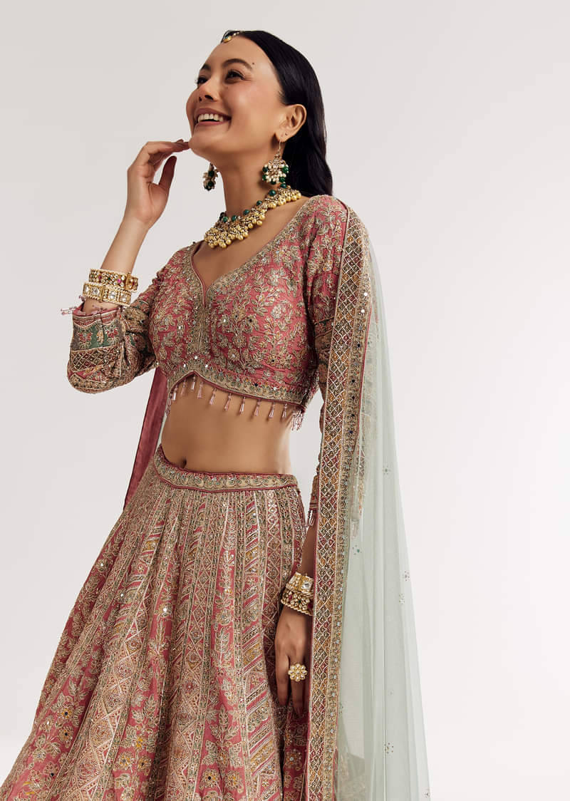 This printed georgette lehenga is adorned with hand and machine embroidery, and draped in a net dupatta—a glowing companion to festive tales. Awarded as the Most Trusted Brand, we're delivering styles you love, just as promised.