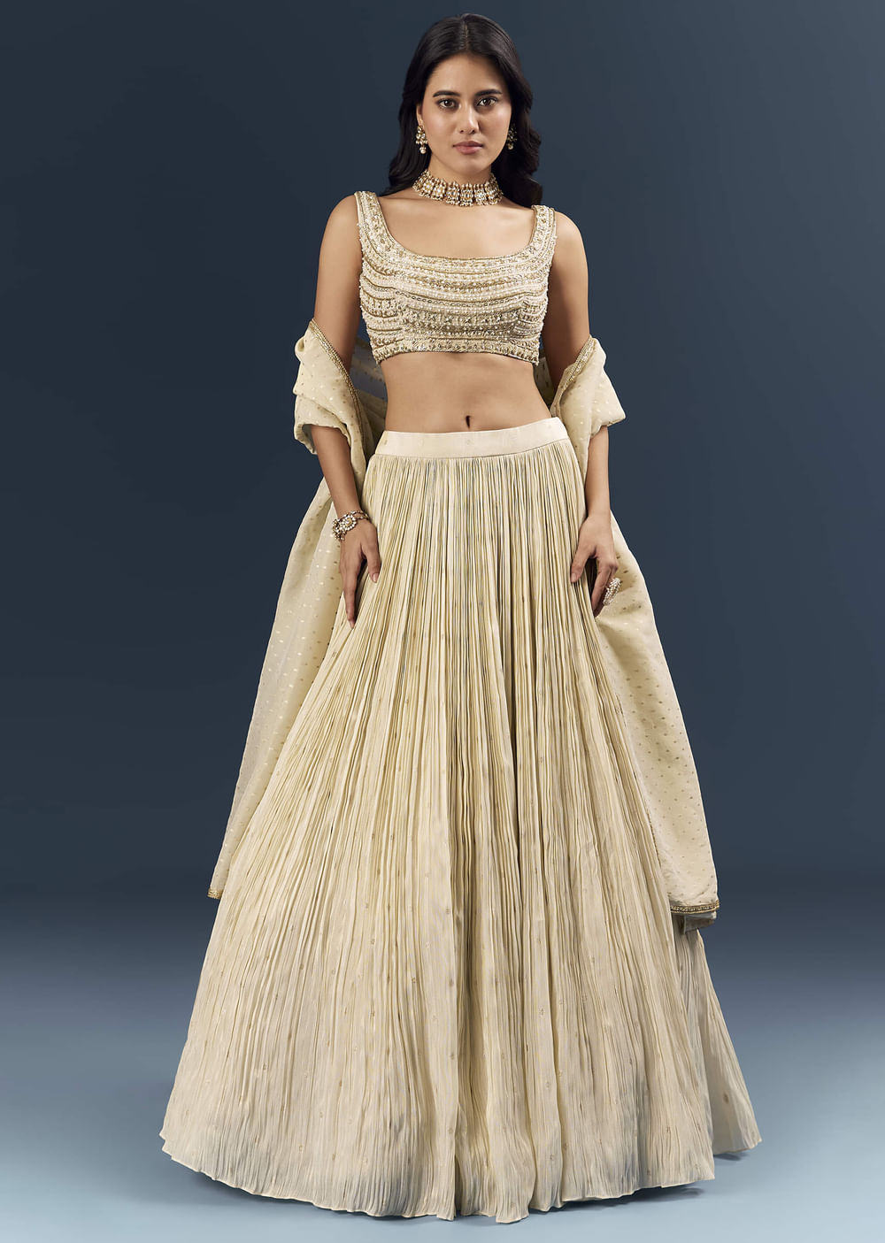 Off White Banarasi Silk Bridesmaid Lehenga With Intricate Hand Embroidery