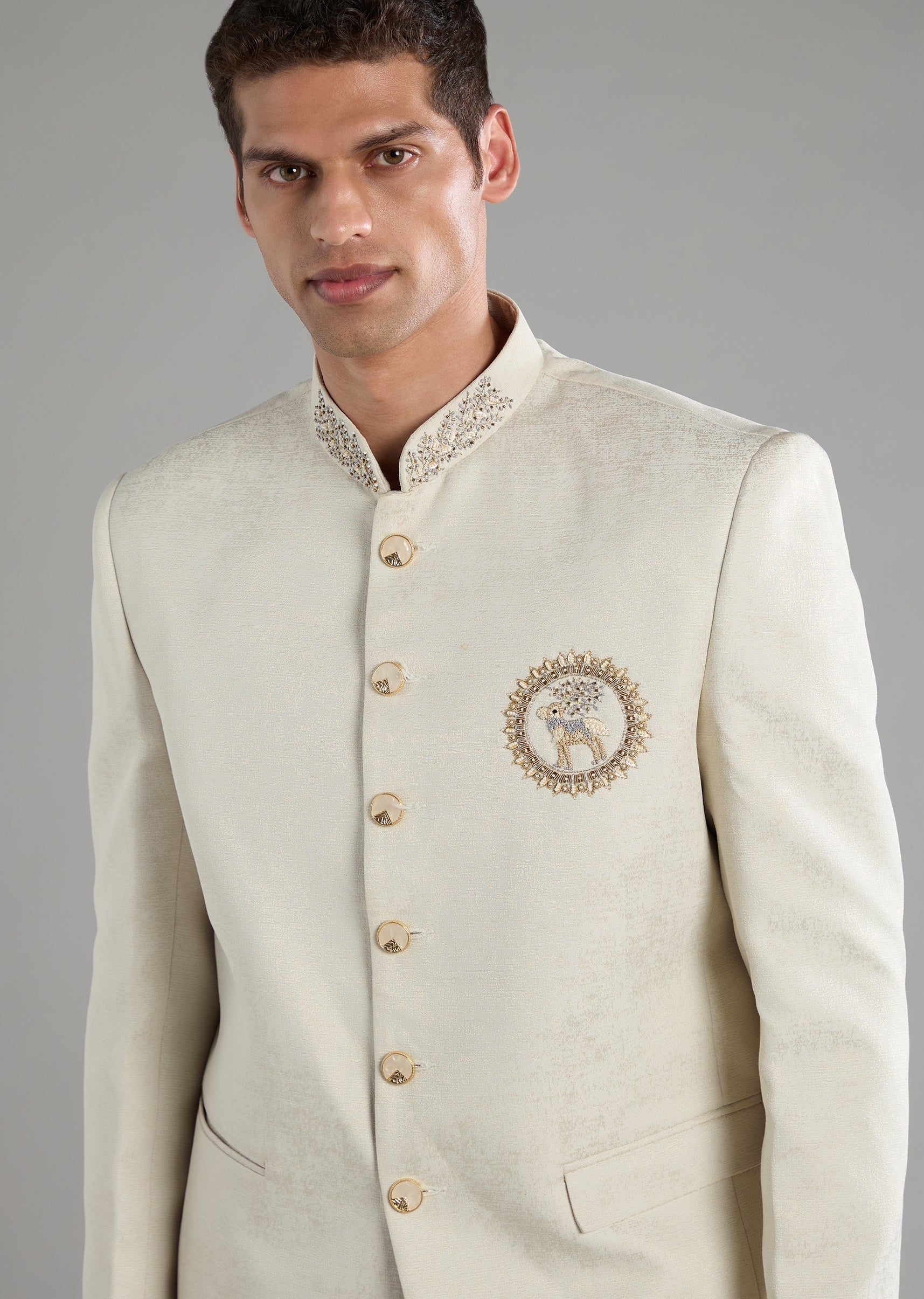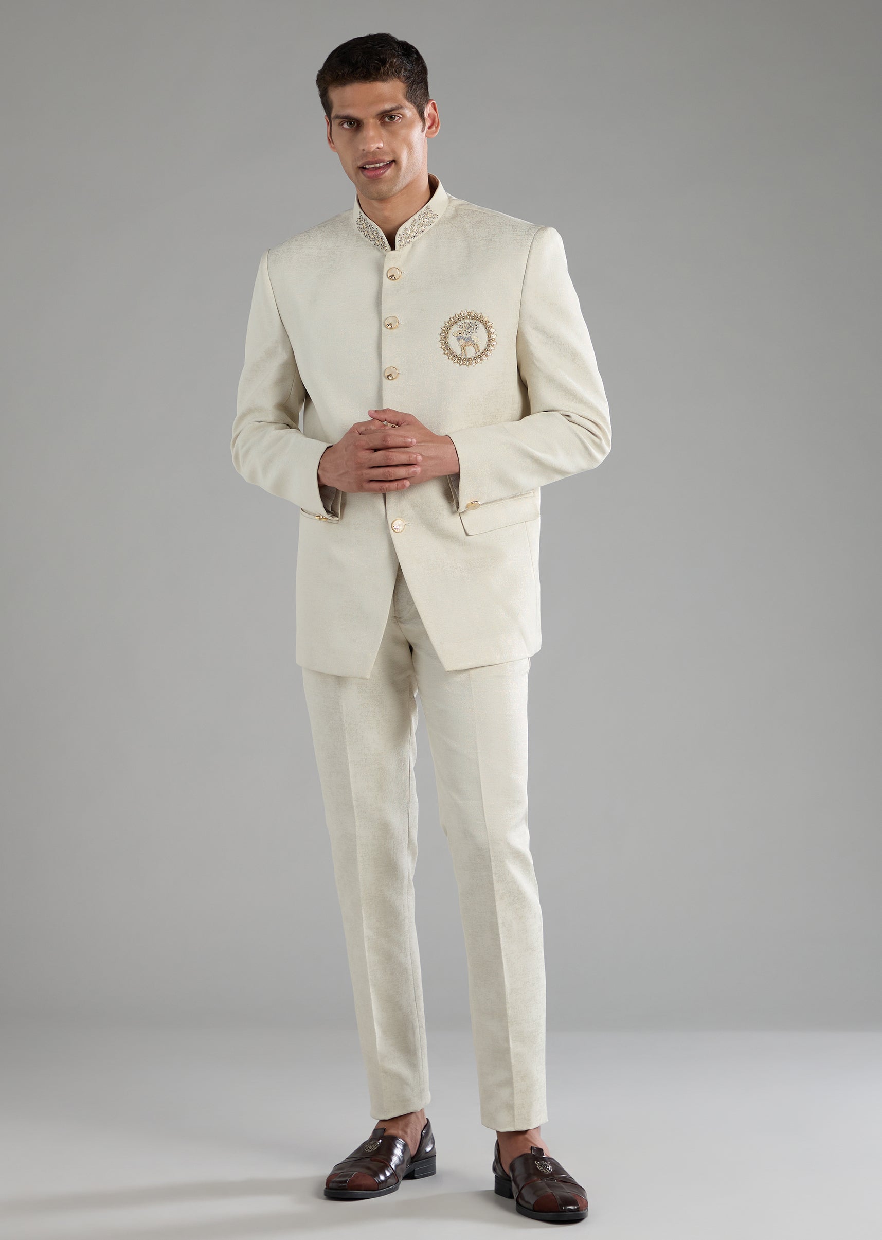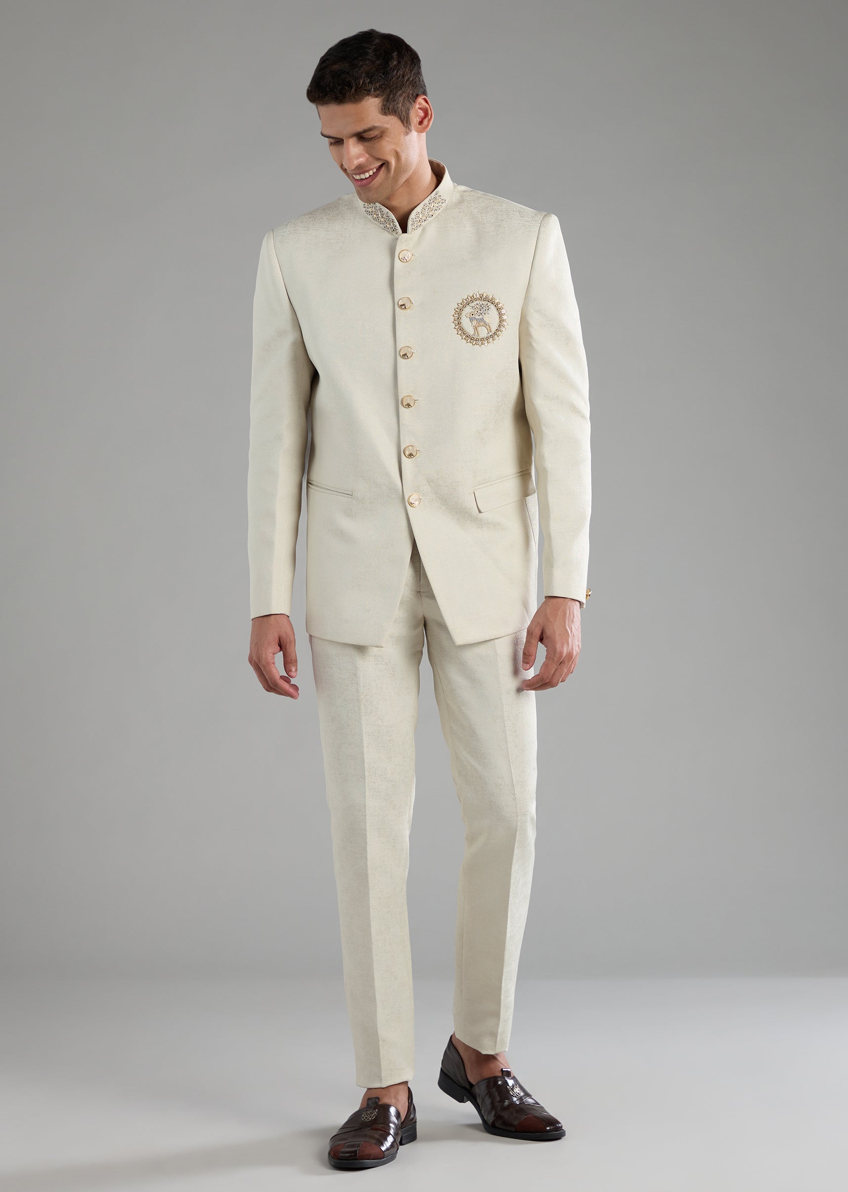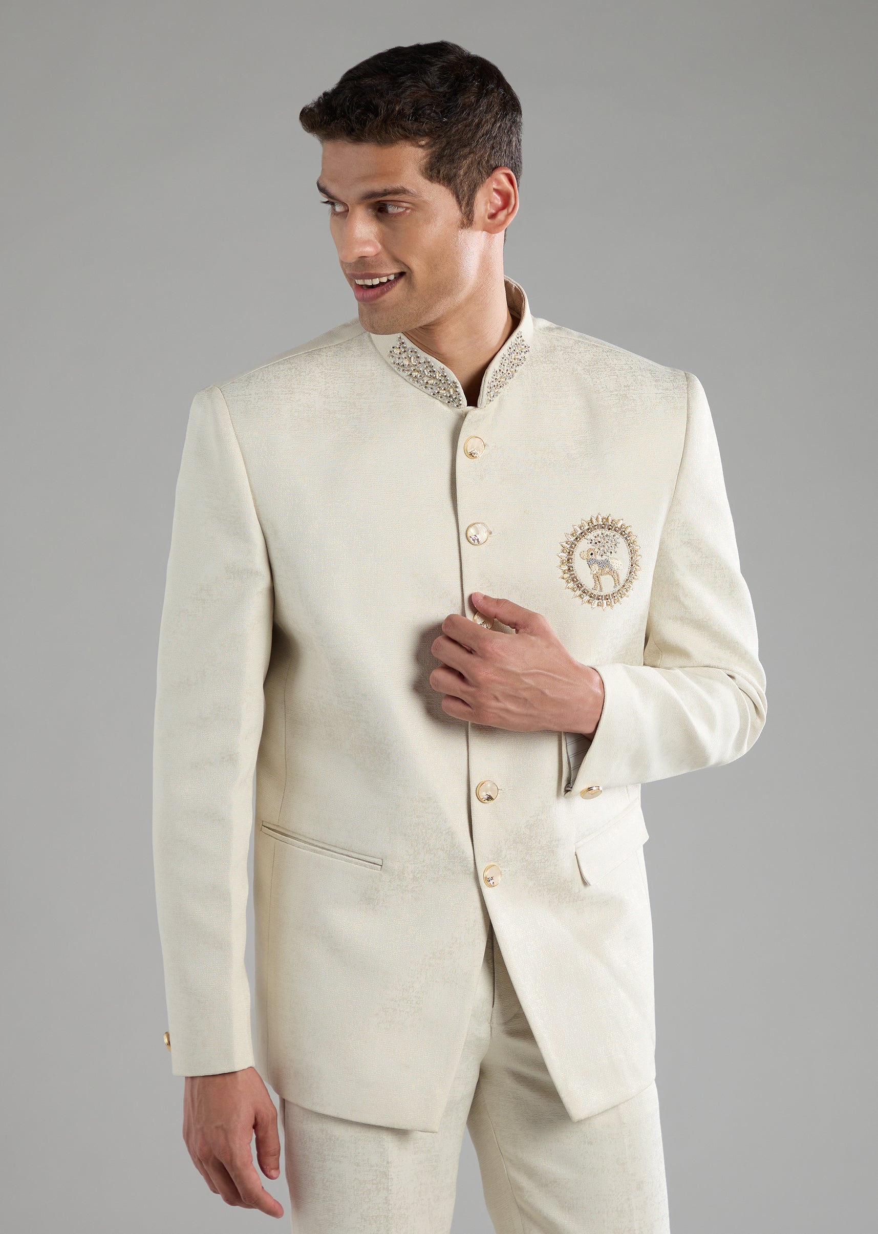 Off White Embroidered Jodhpuri and Pant Set