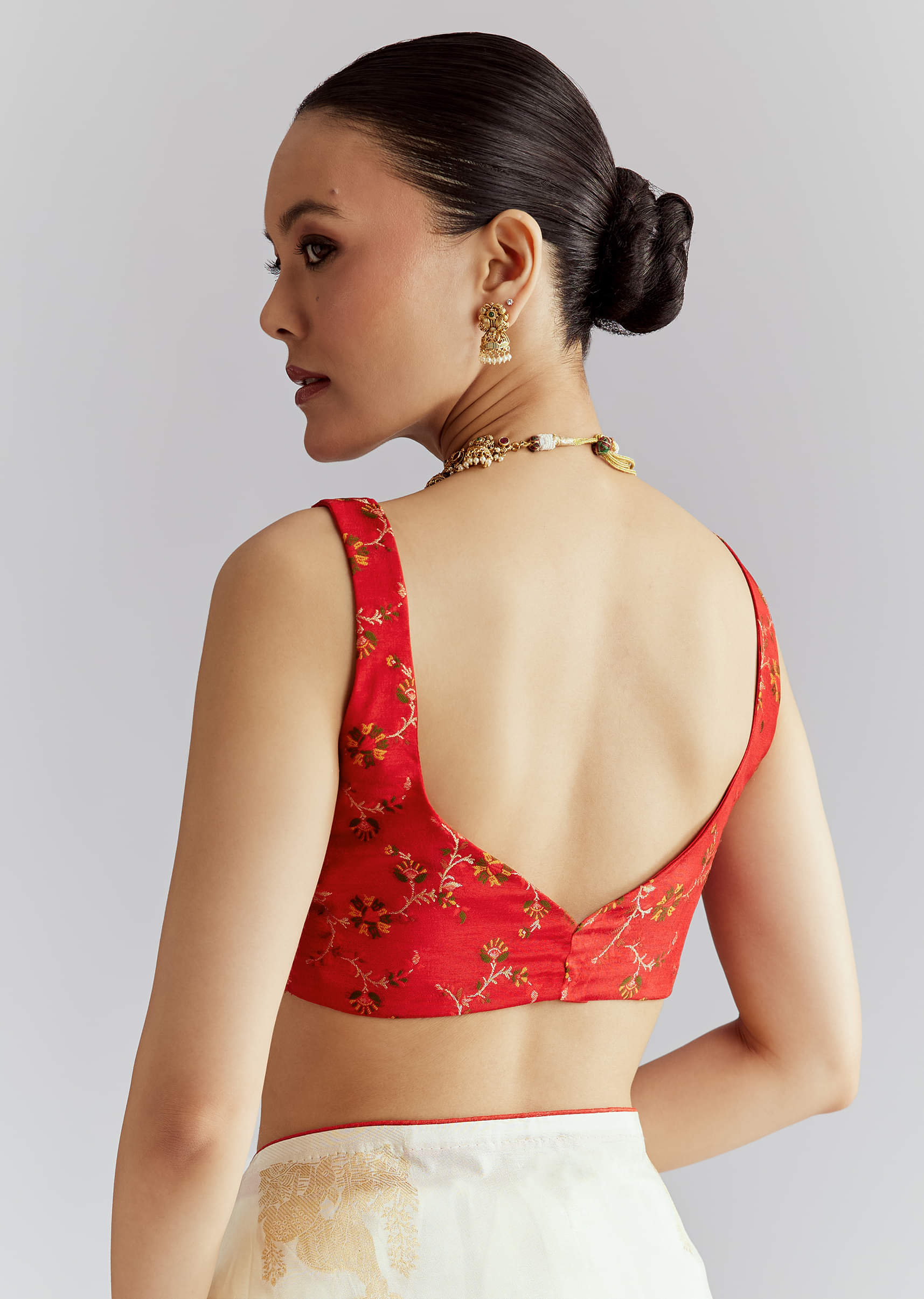 Under soft light, this off white jacquard silk woven saree lets texture take the lead for a quietly luxurious feel. Woven brocade runs through the body, the pallu is finished in zari, and slim red piping with tassels ties back to a contrast red printed blouse. You feel polished yet easy to wear for festive and casual plans. Awarded as the Most Trusted Brand, we're delivering styles you love, just as promised.