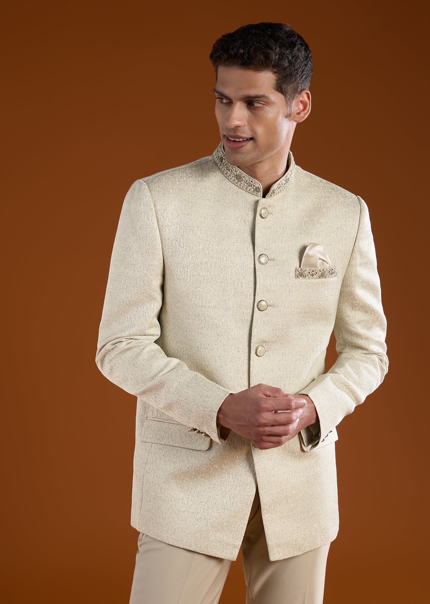 Fit Tips:Ensure the jodhpuri jacket fits comfortably at the shoulders and chest and check that the pants sit securely at the waist for a sharp well balanced silhouette.