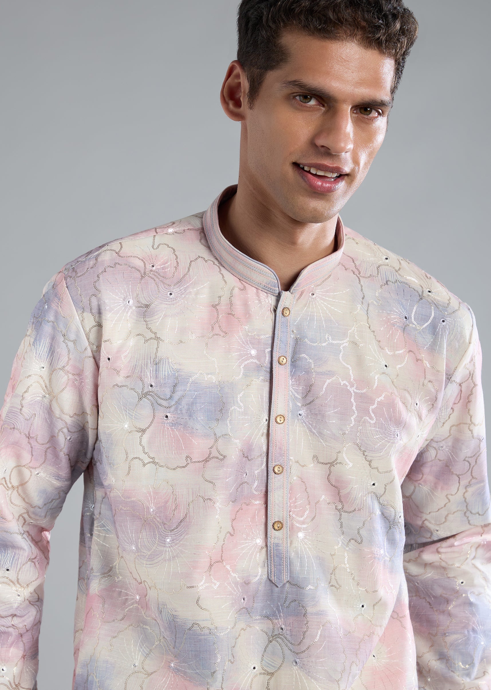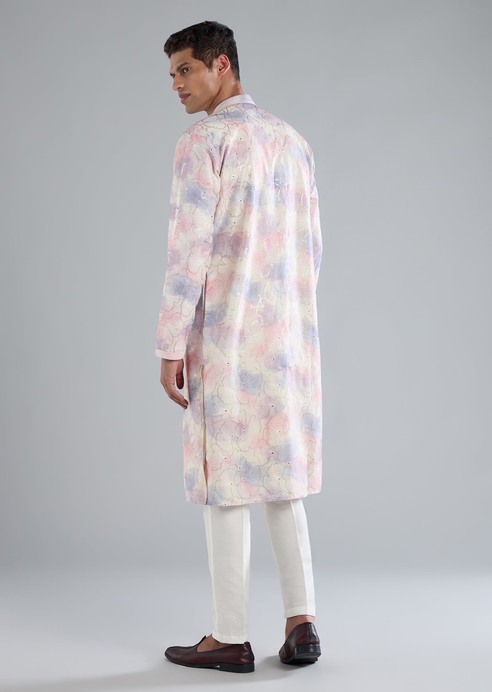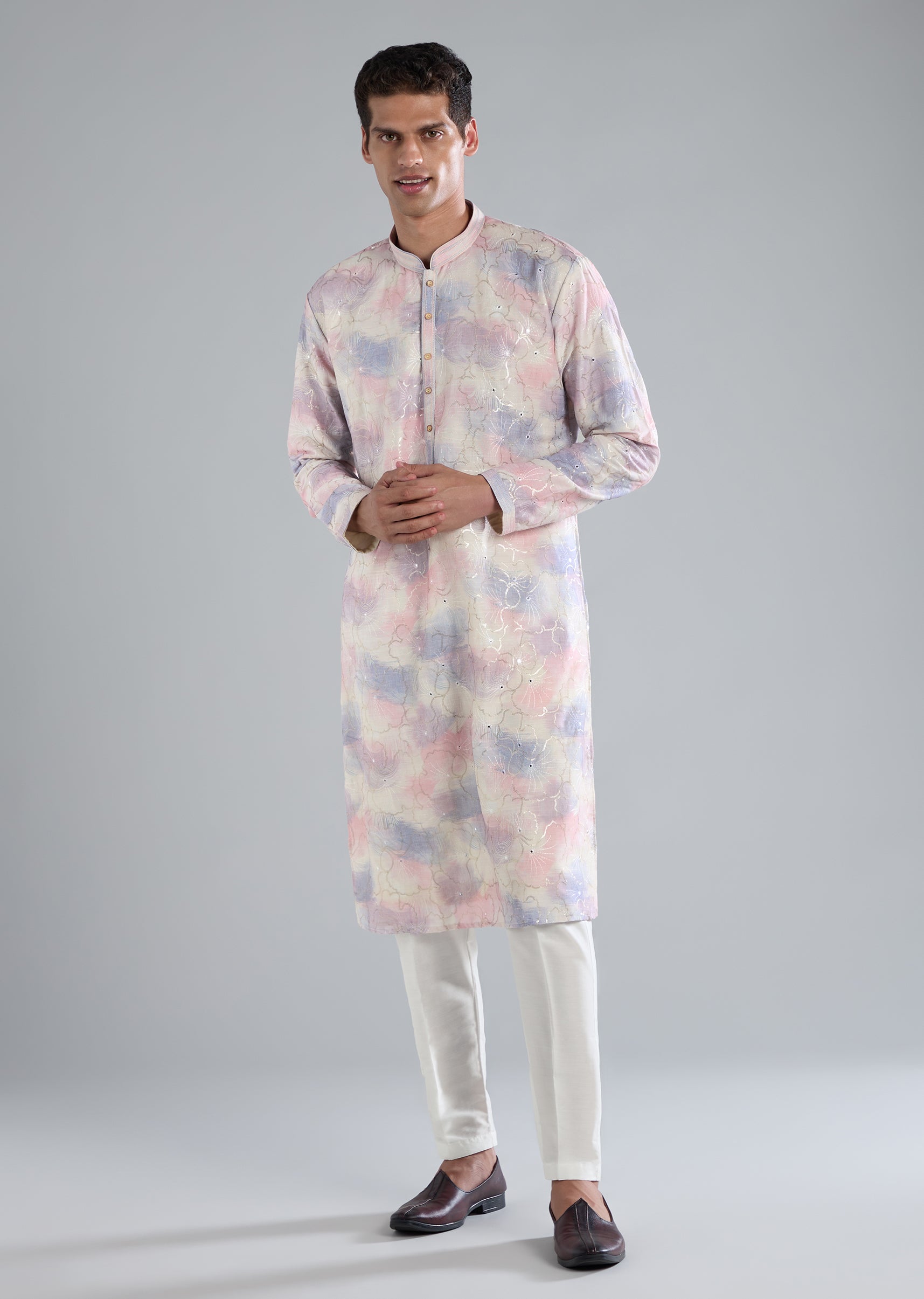 Soft and elegant, this off white kurta set is crafted in smooth silk as the primary fabric with art silk as the secondary base for a refined pastel finish. The... More Product Details