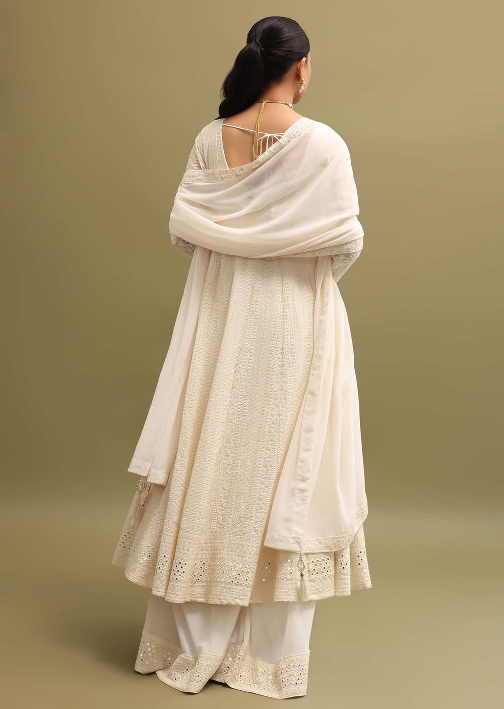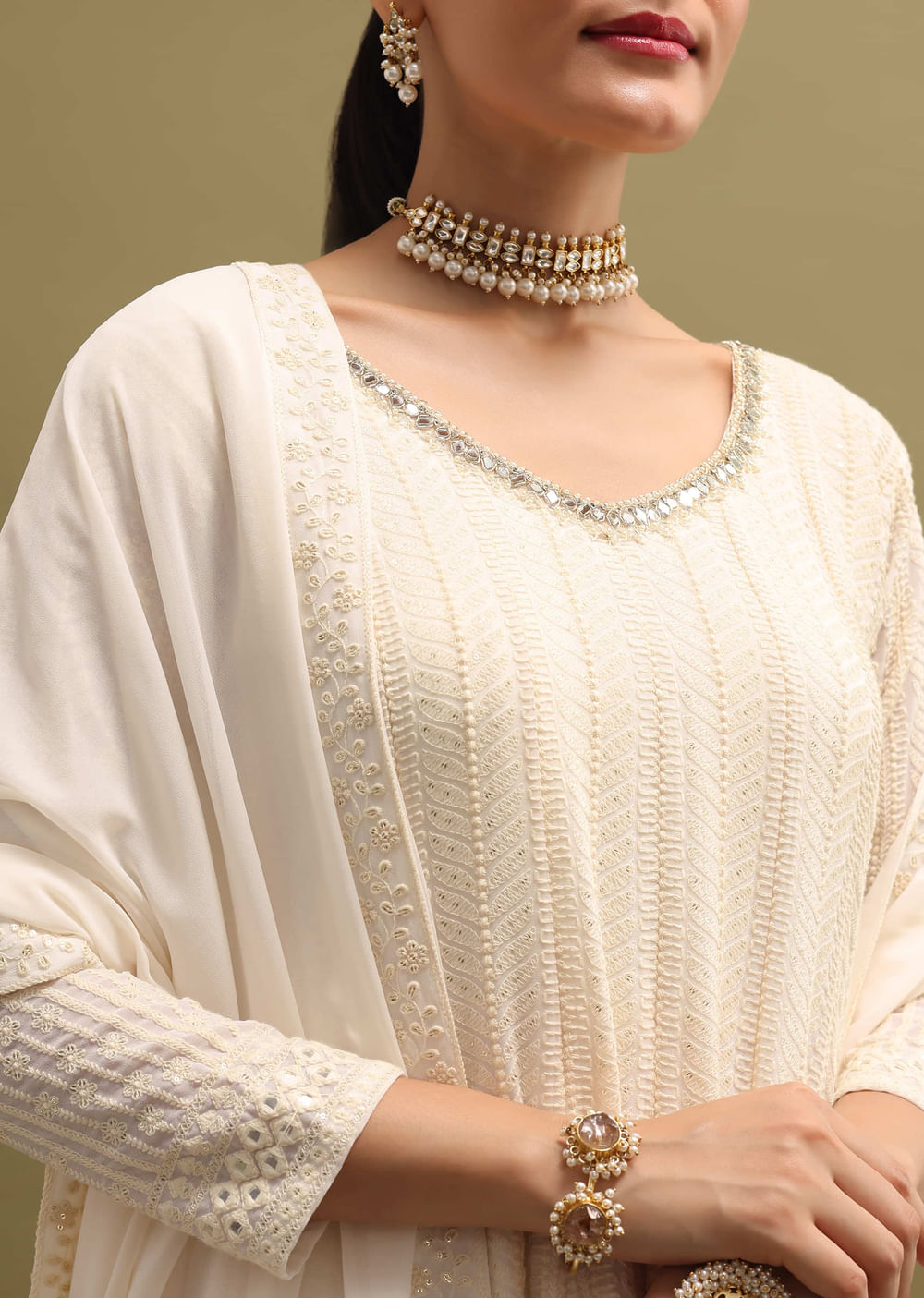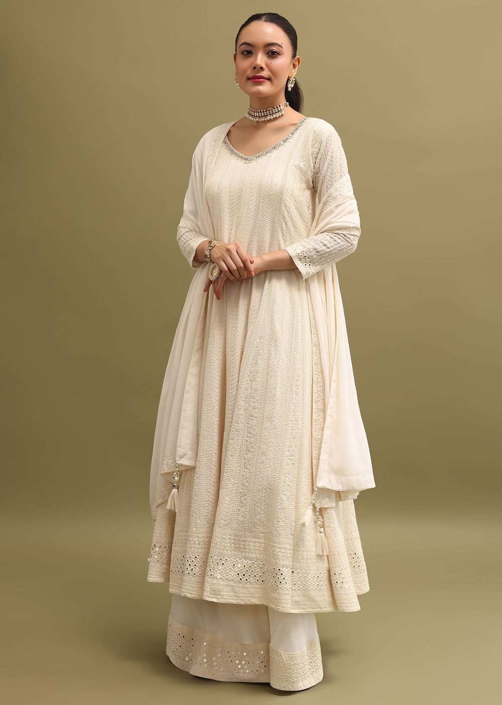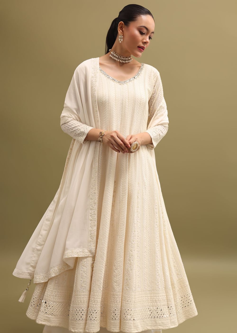 Off White Lucknowi Georgette Anarkali Suit Set