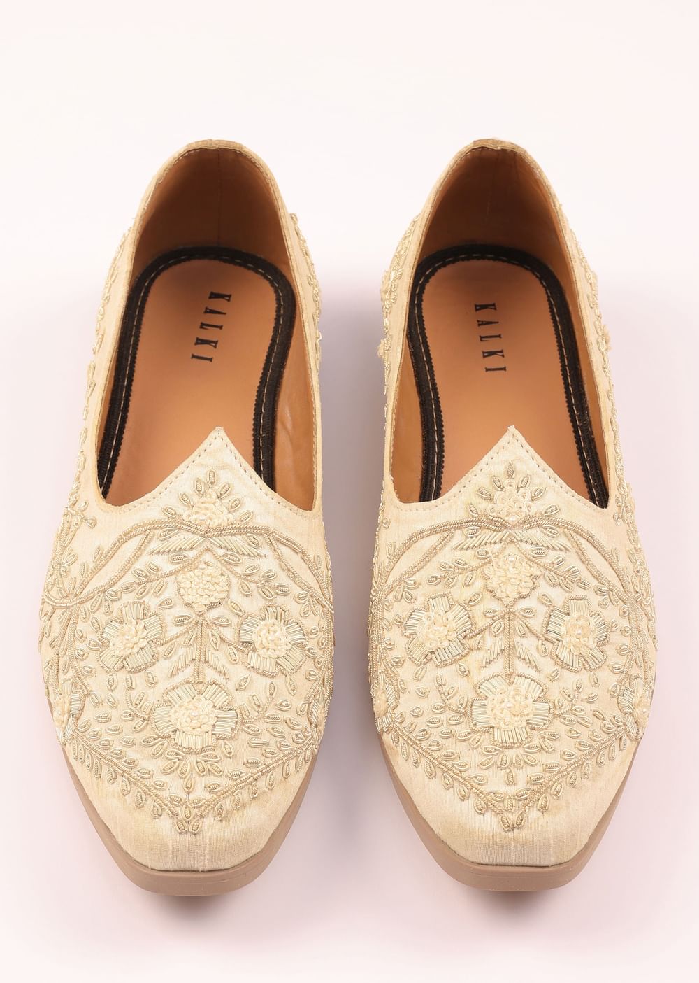 - A pair of off-white traditional juttis that fit your feet like a glove.