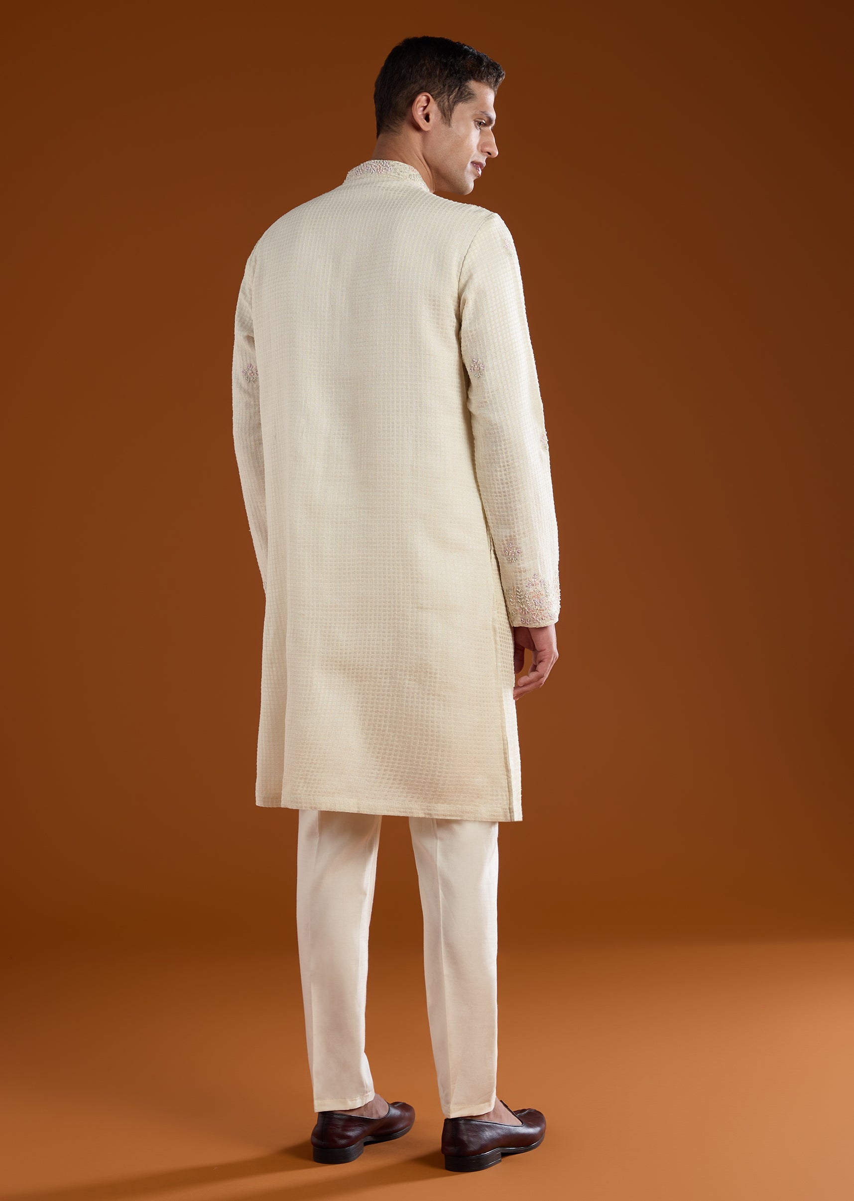 Match it with traditional juttis and a sleek watch for a refined and well put together appearance.