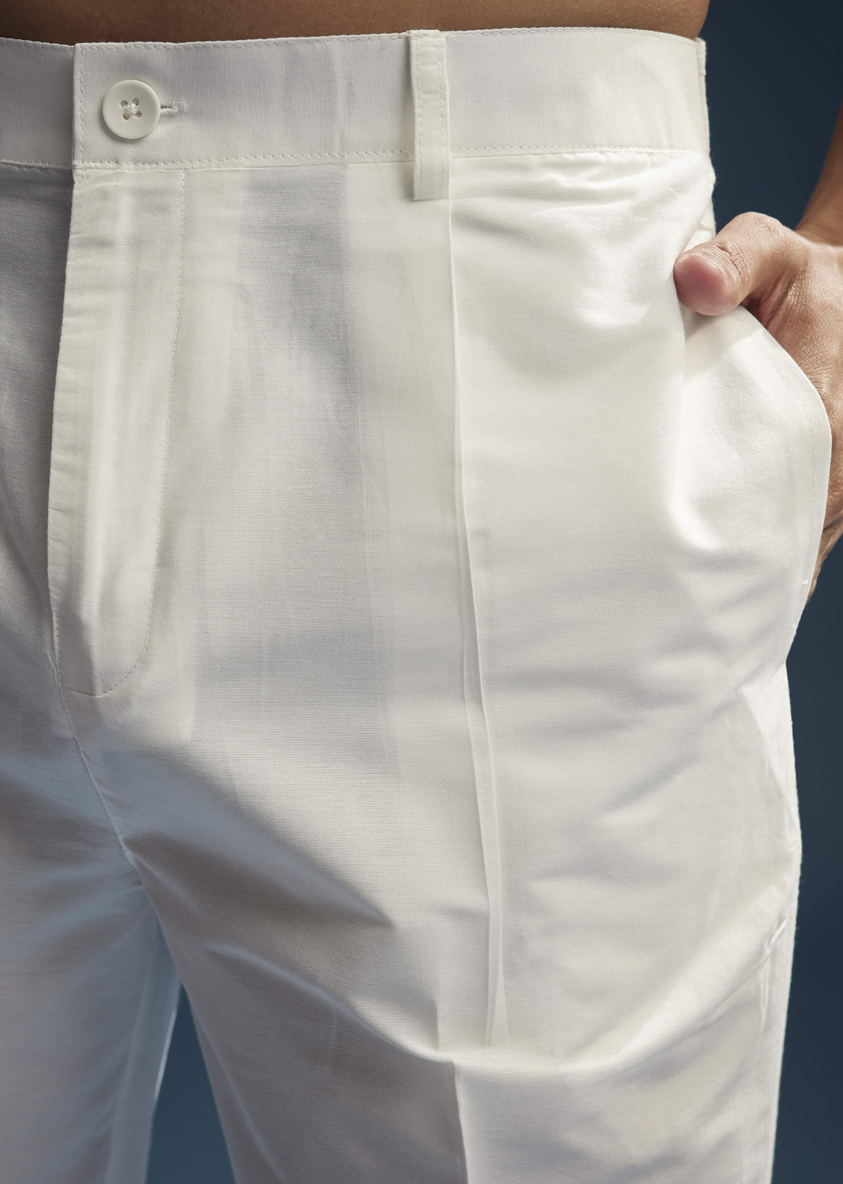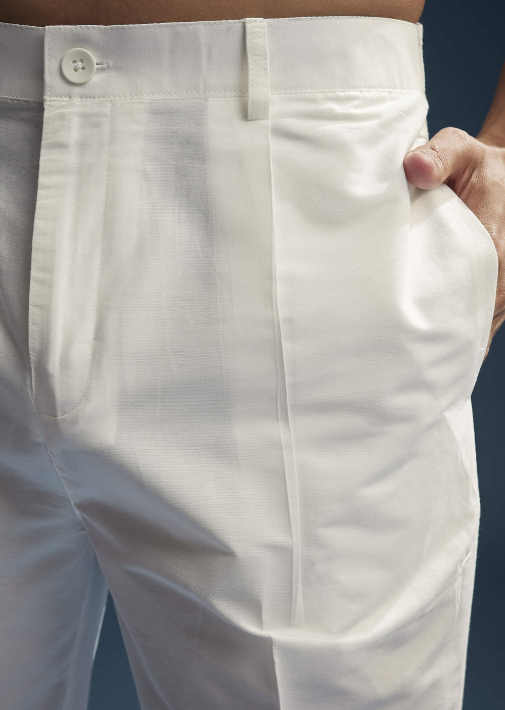 Off White Silk Kurta Set For Men With Resham Embroidery