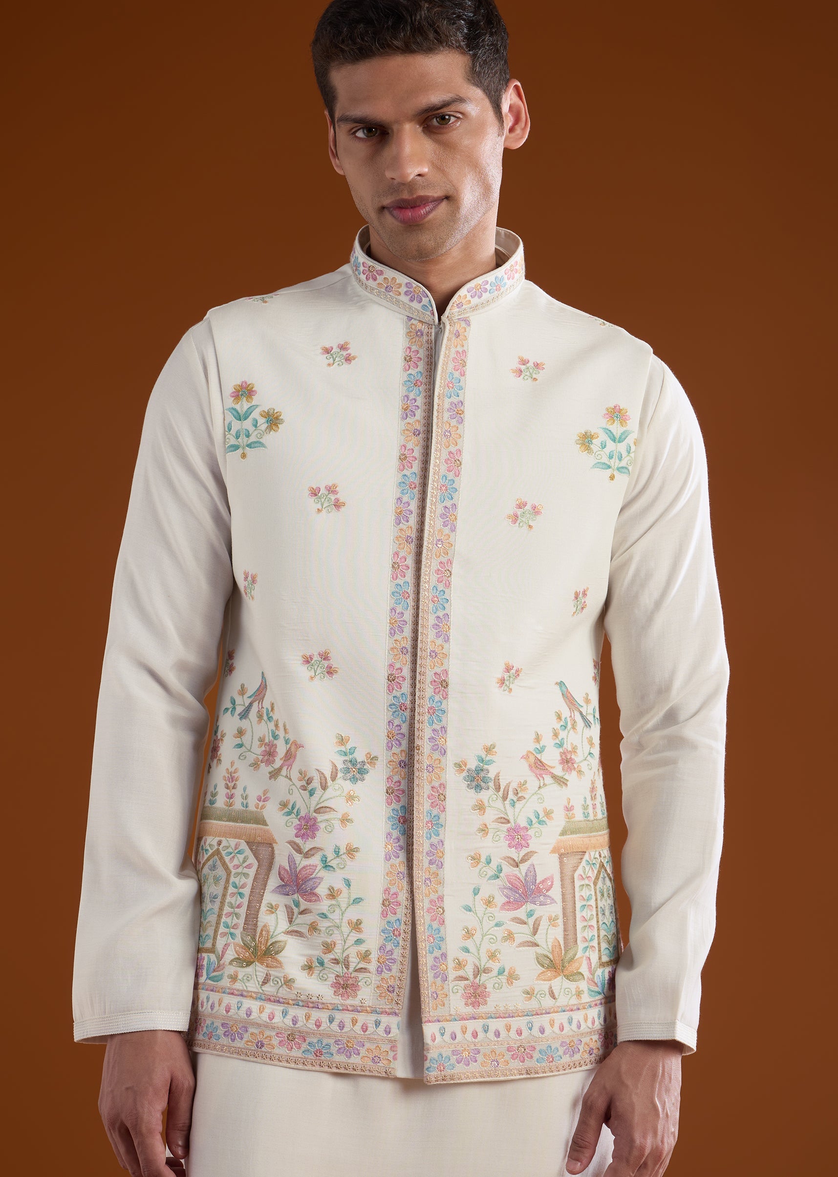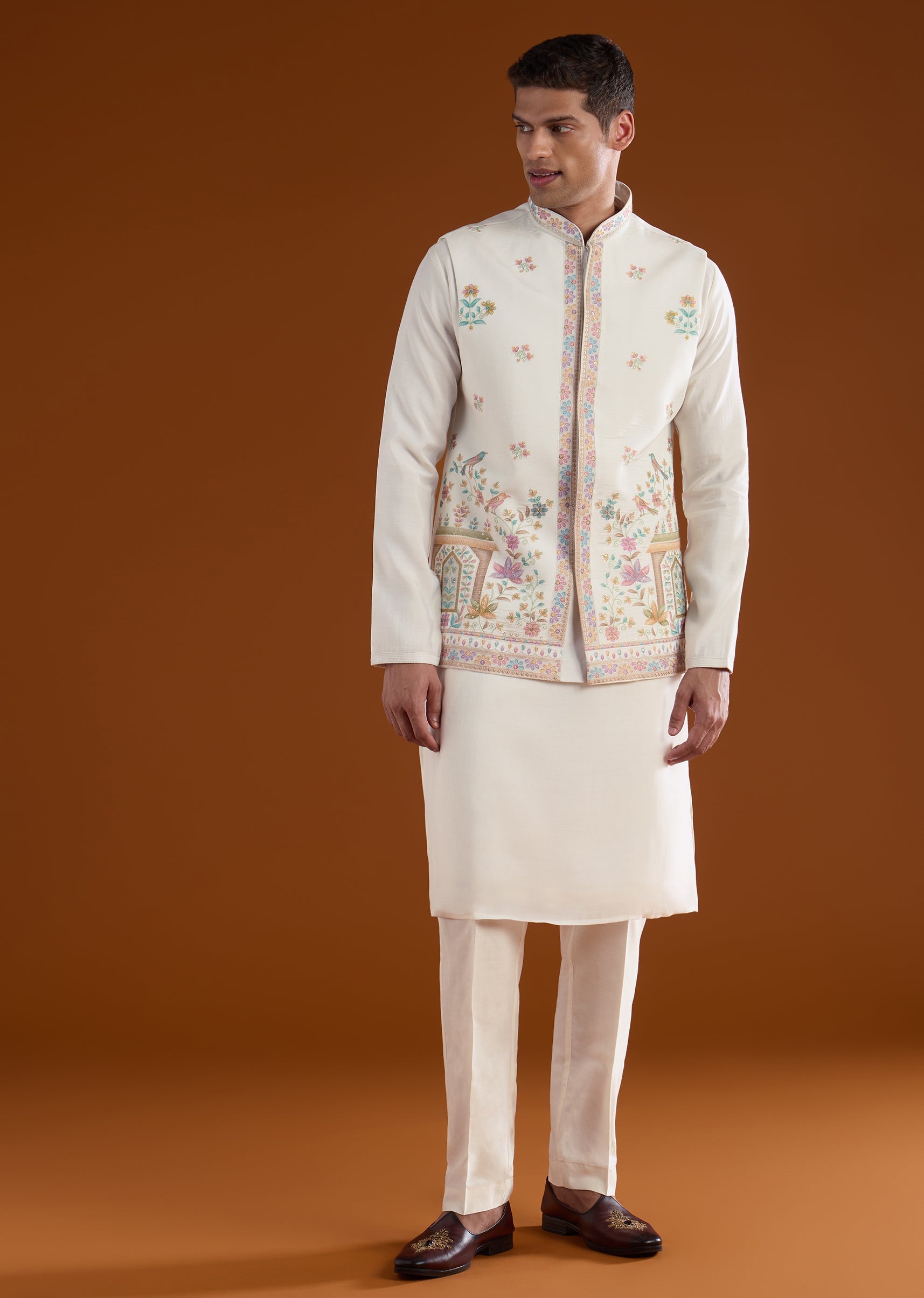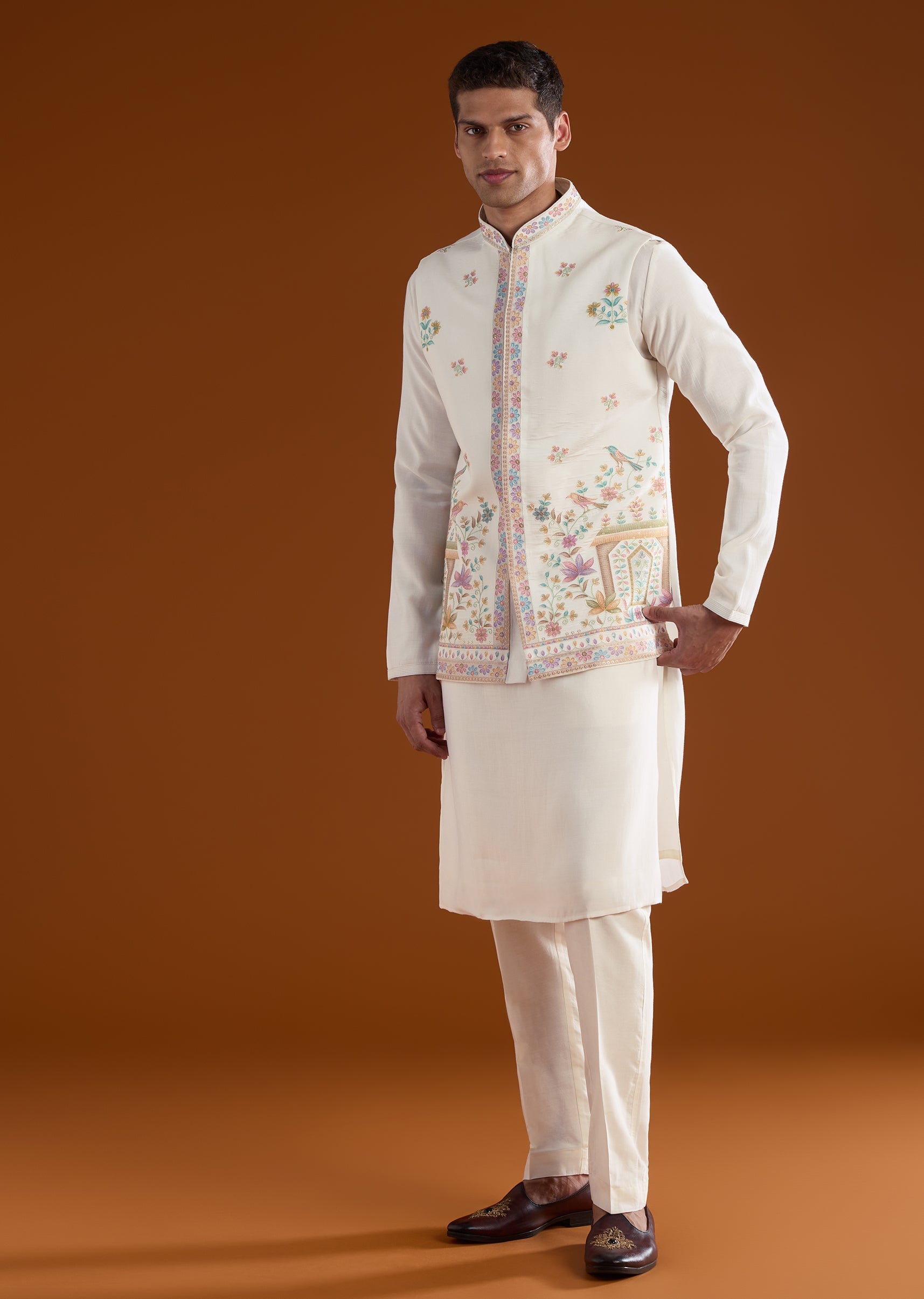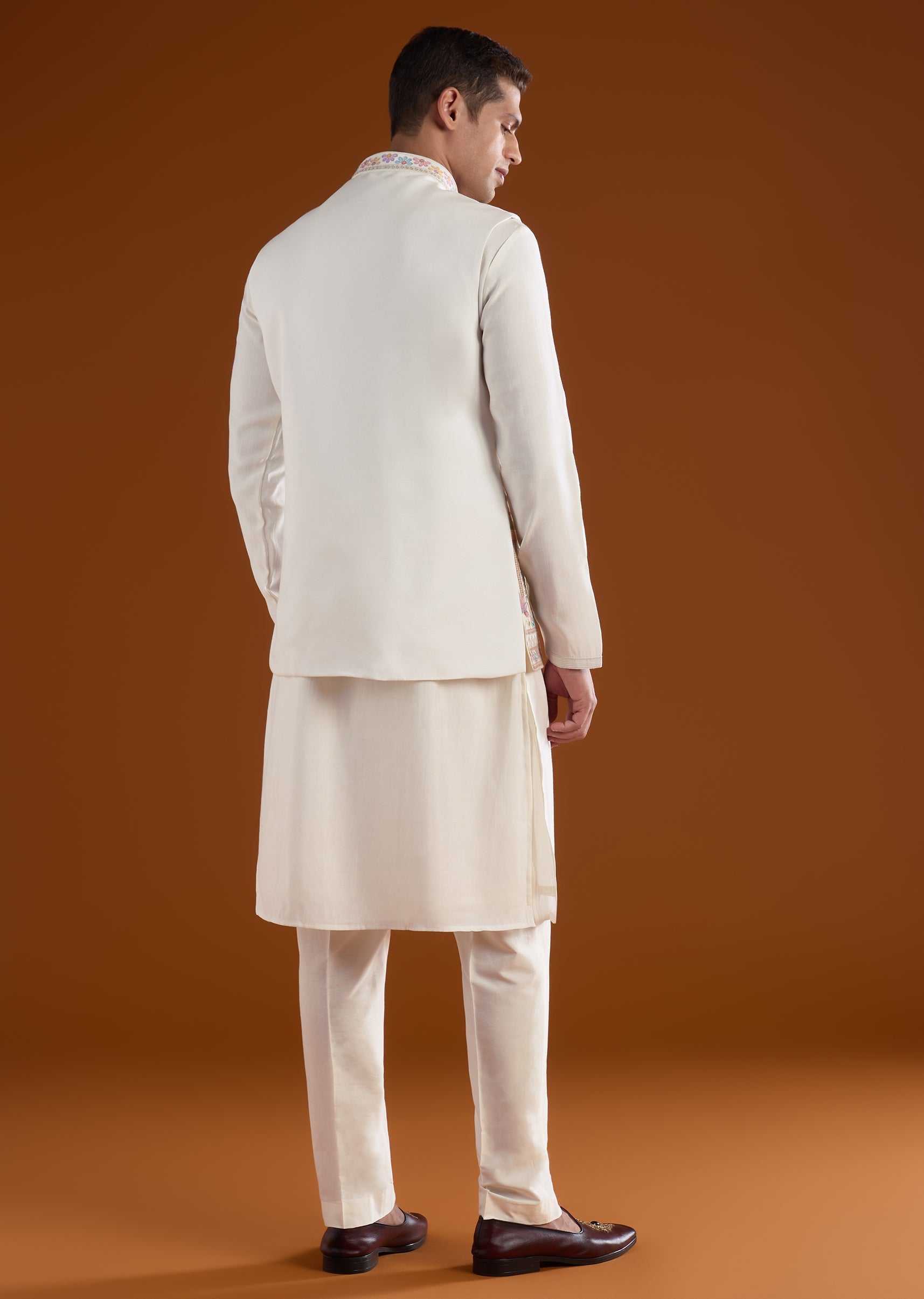 Fit Tips:Ensure the jacket rests comfortably on the shoulders with ease through the arms, and the kurta drapes smoothly for effortless wear during long celebrations.