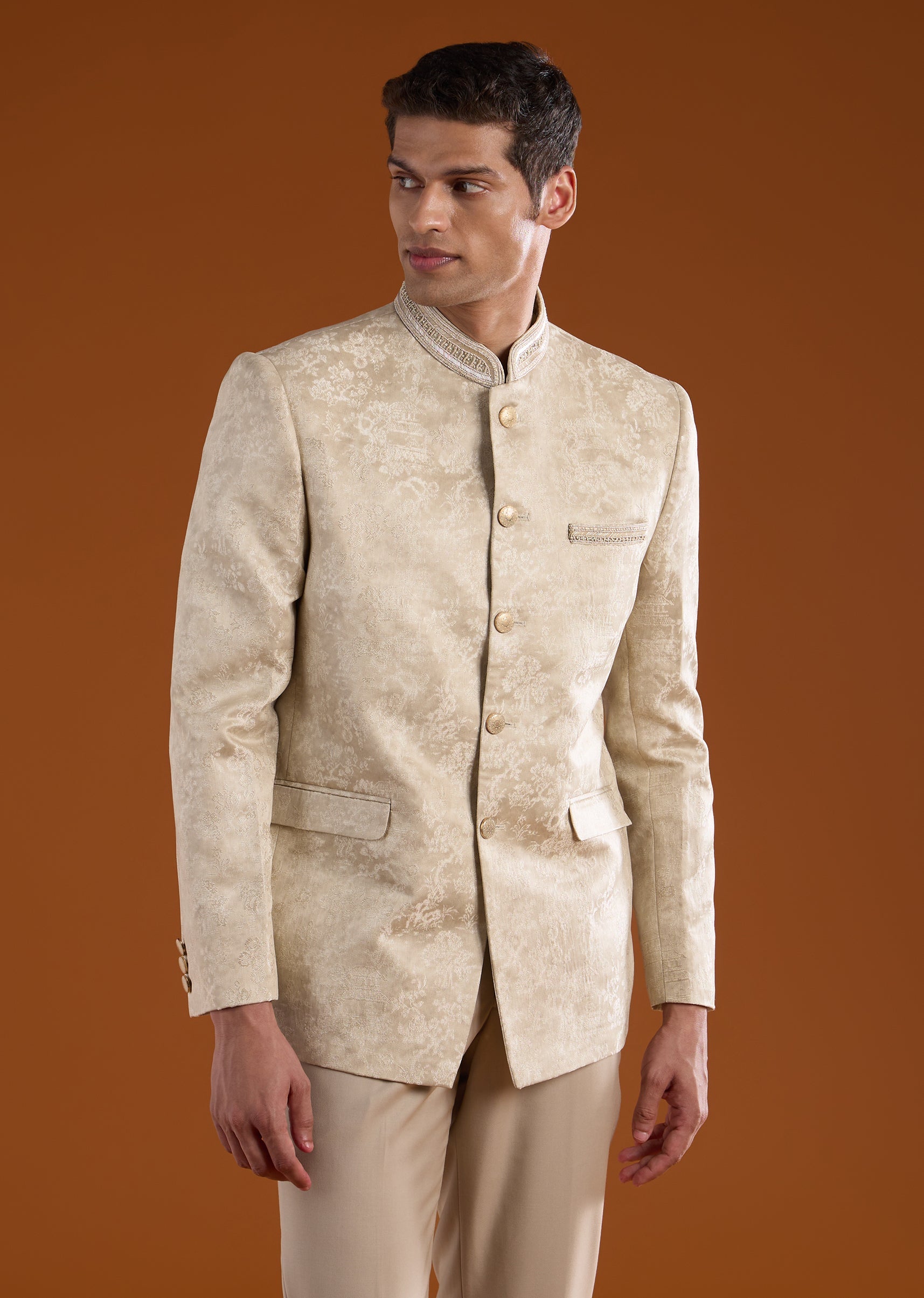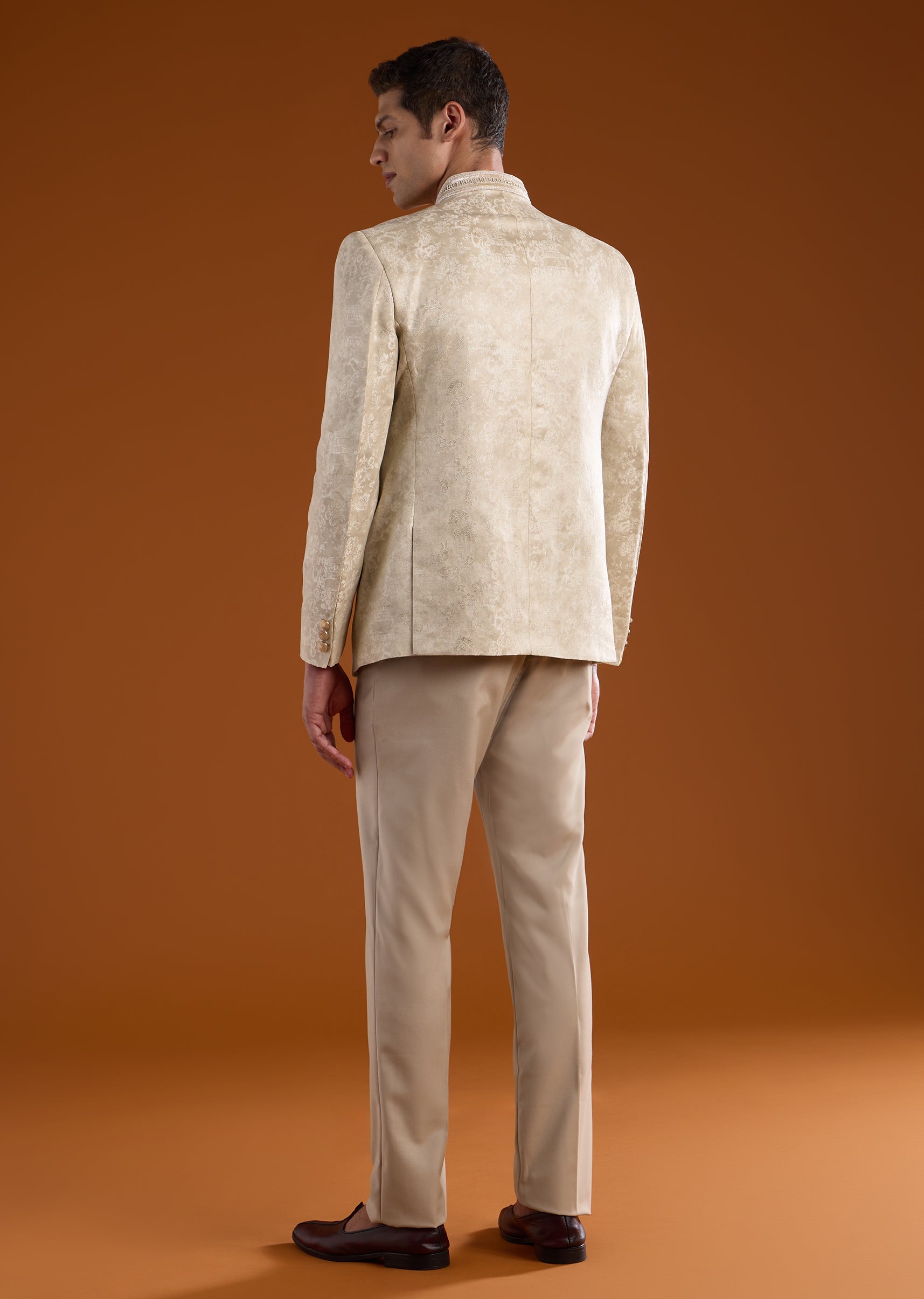 Off White Viscose Jodhpuri Set with Thread Embroidery
