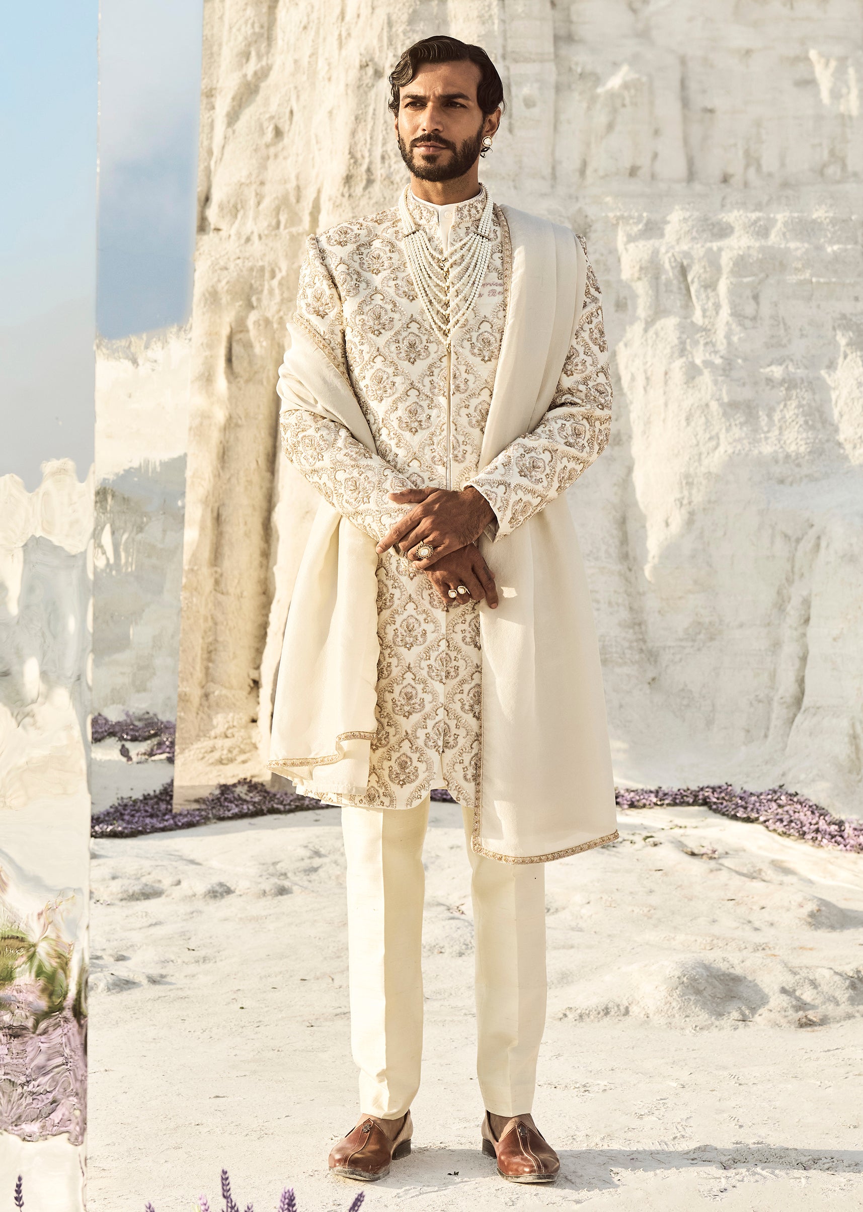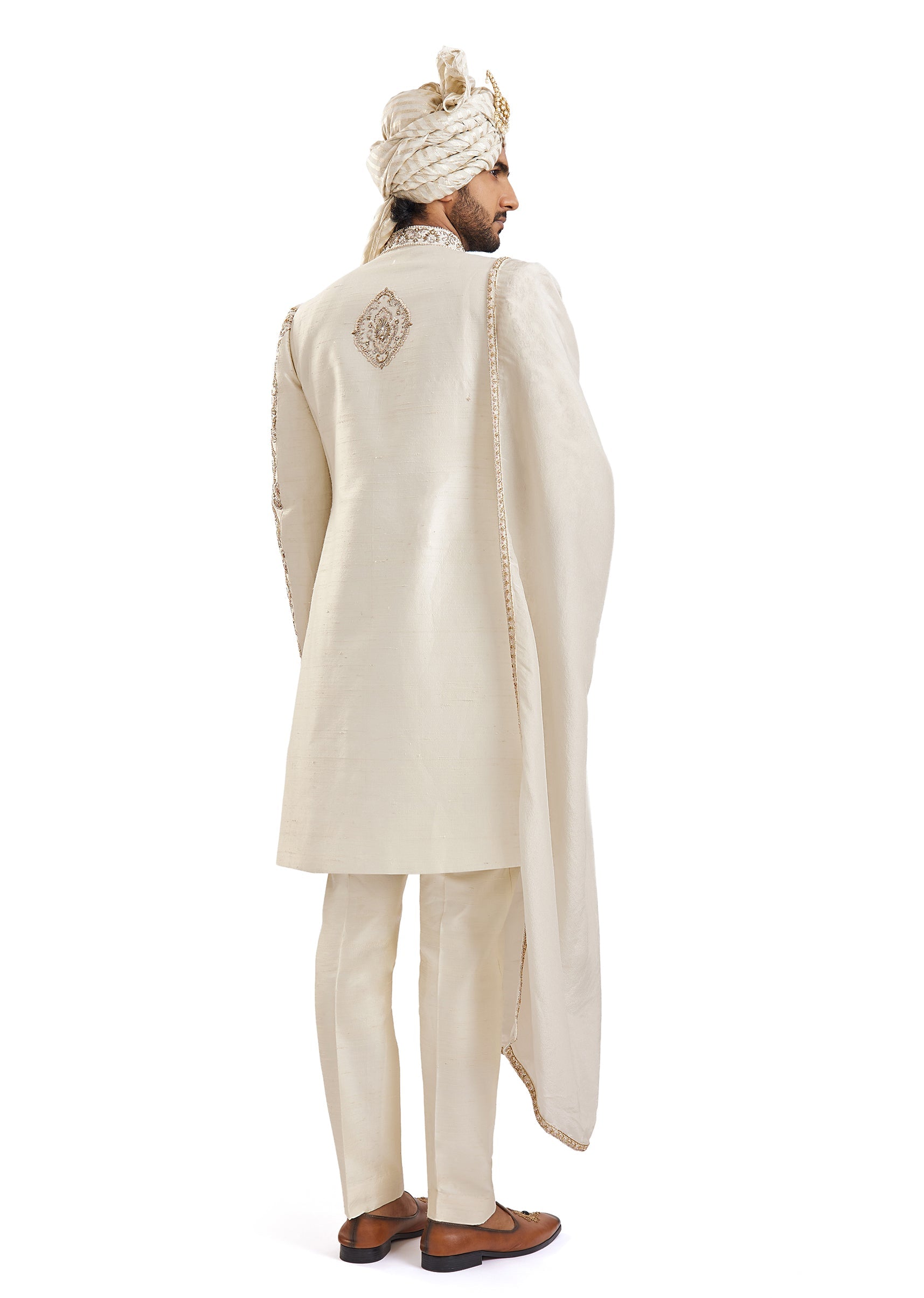 Off White Zardosi Wedding Sherwani