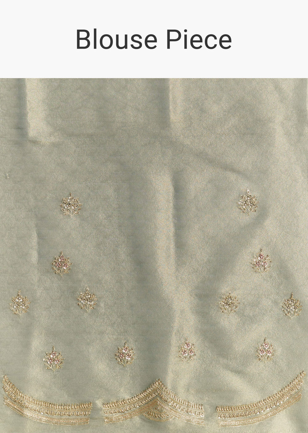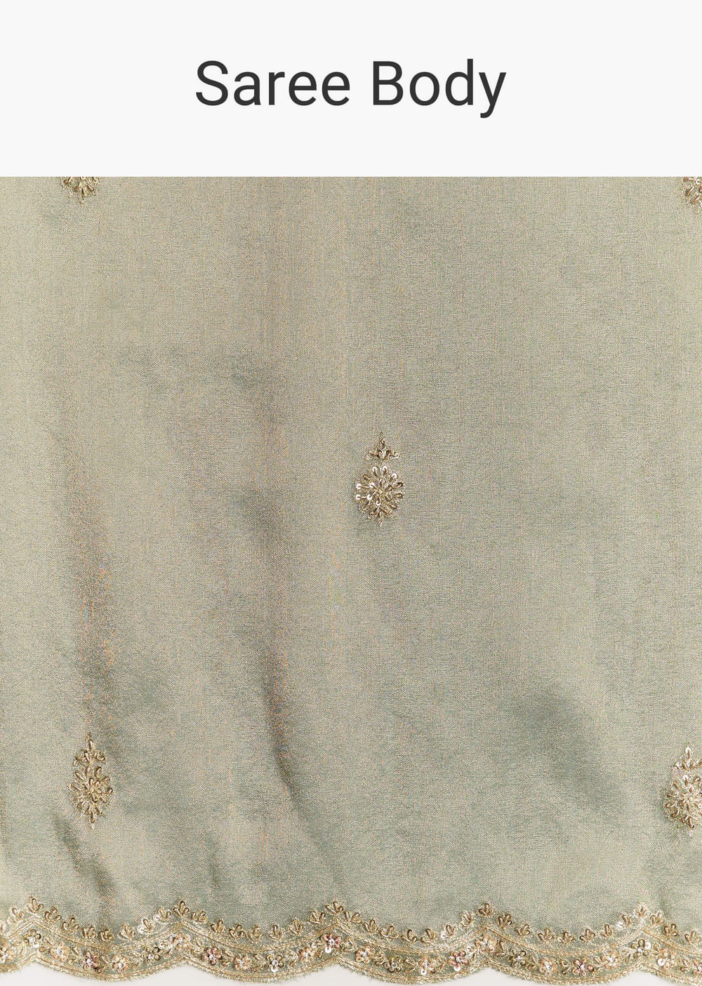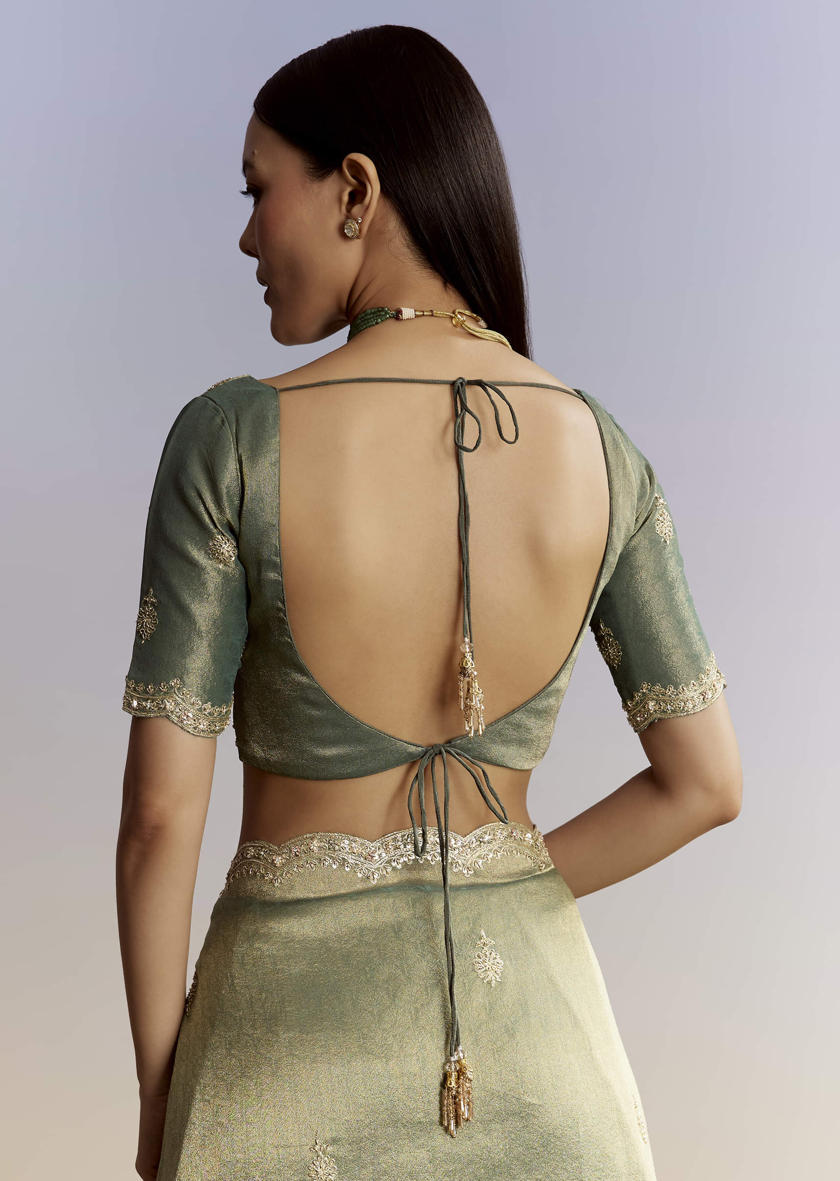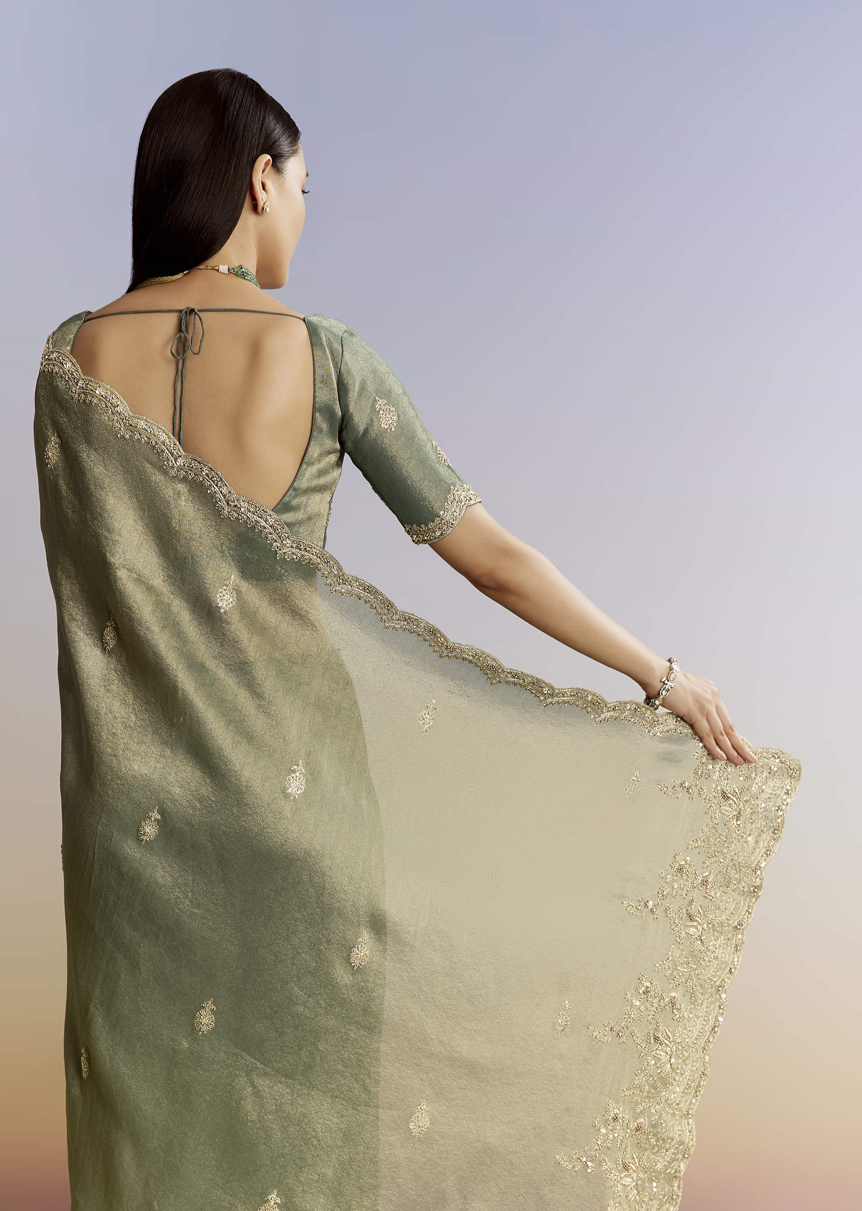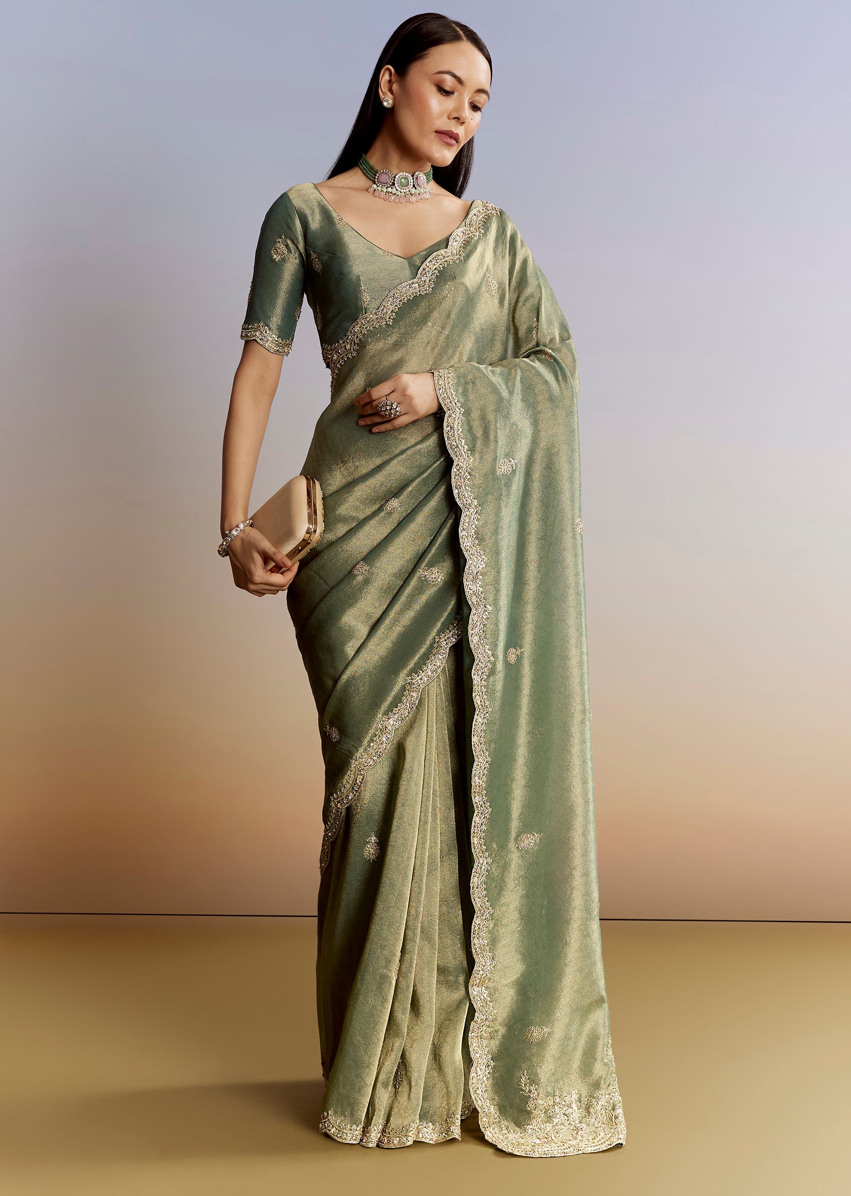 Olive Green Tissue Saree With Zardosi And Sequin Embroidery