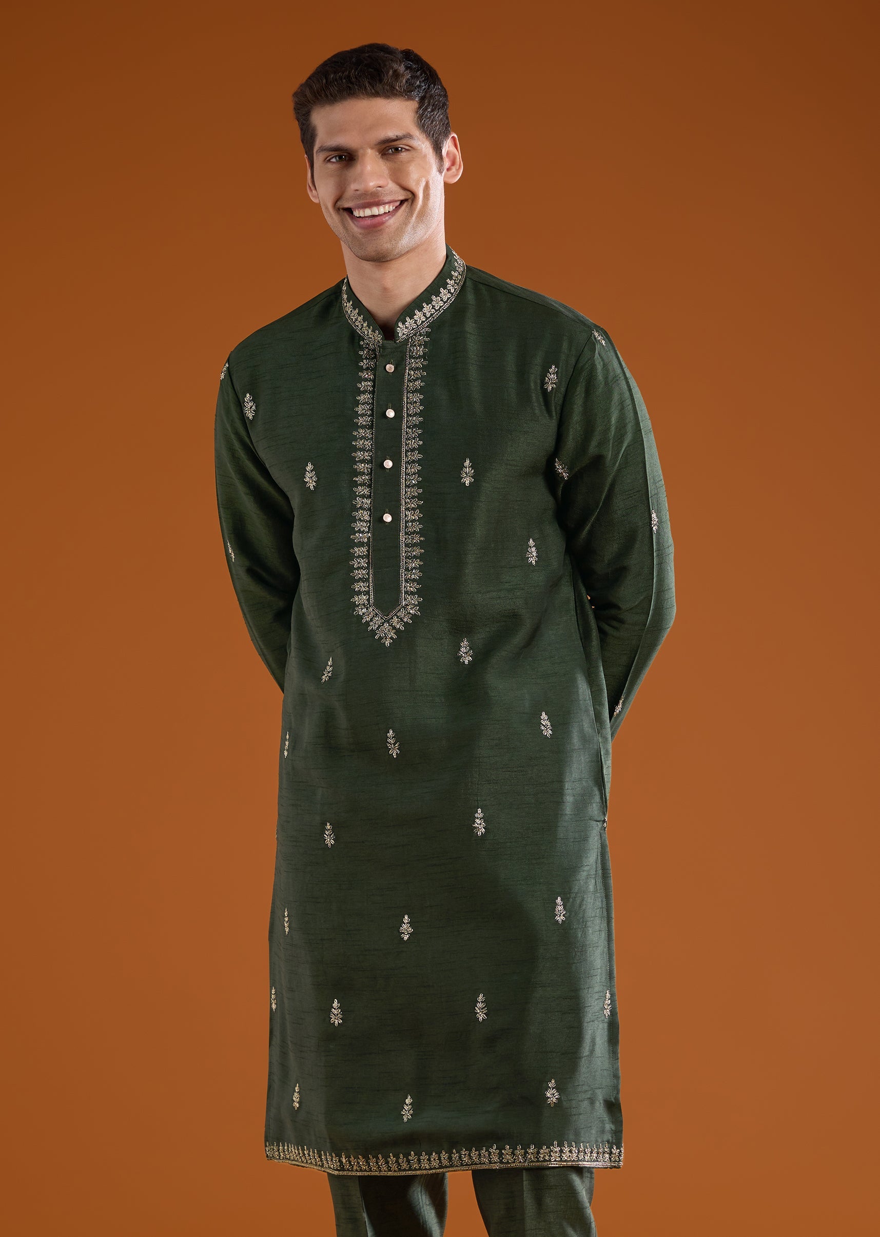 Pair with traditional juttis or polished loafers and keep accessories minimal to let the embroidery take center stage.