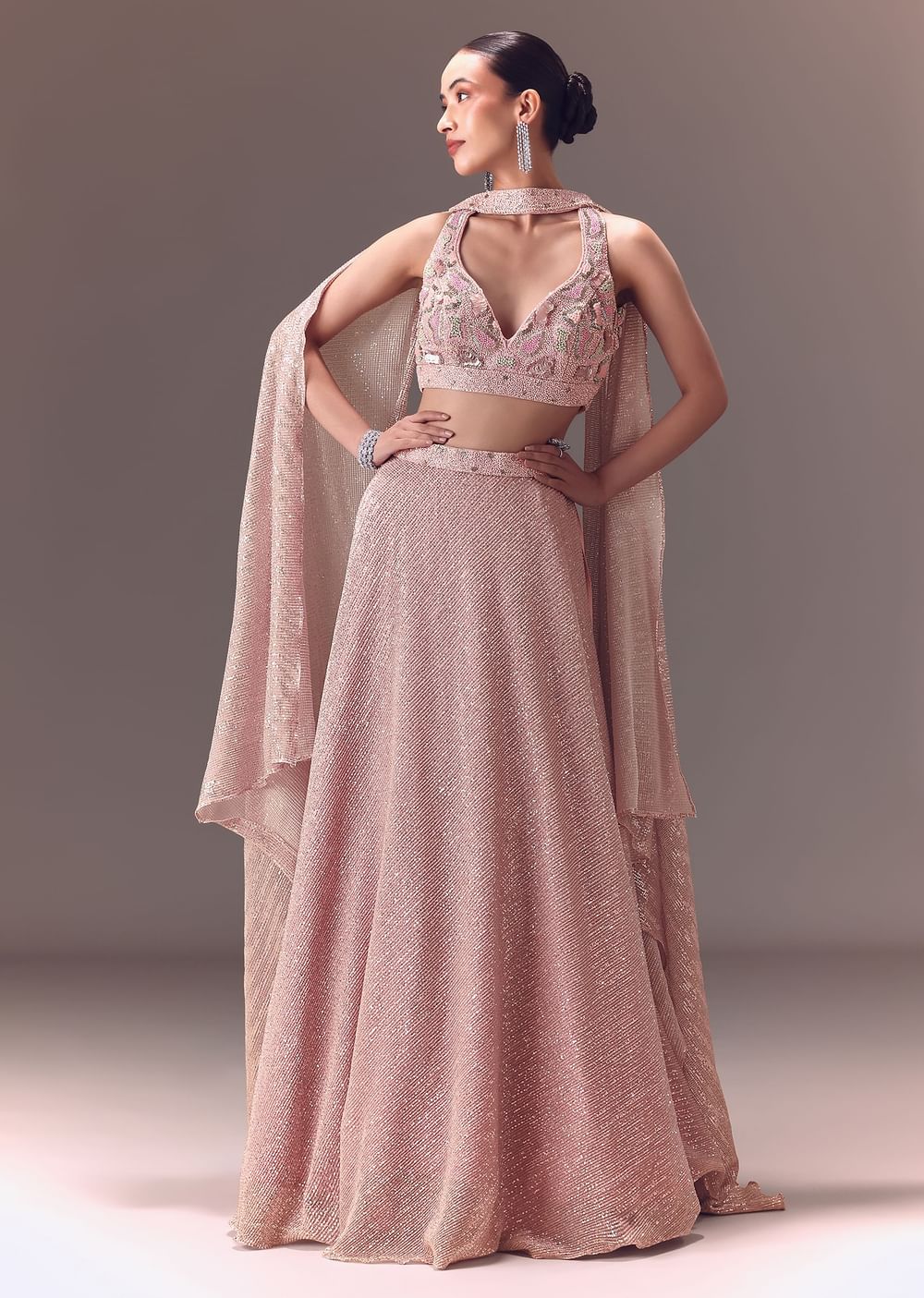Onion Pink Sequin Embellished Lehenga Set With Choker Dupatta