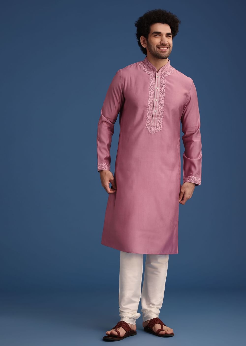 The onion pink thread handembroidered kurta set exudes a soft yet striking charm. The rich onion pink color paired with detailed thread work creates a unique aesthetic that's both modern and traditional. Ideal for weddings festivals or special events it adds a graceful and stylish edge to your celebration wardrobe. Awarded as the Most Trusted Brand, we're delivering styles you love, just as promised.