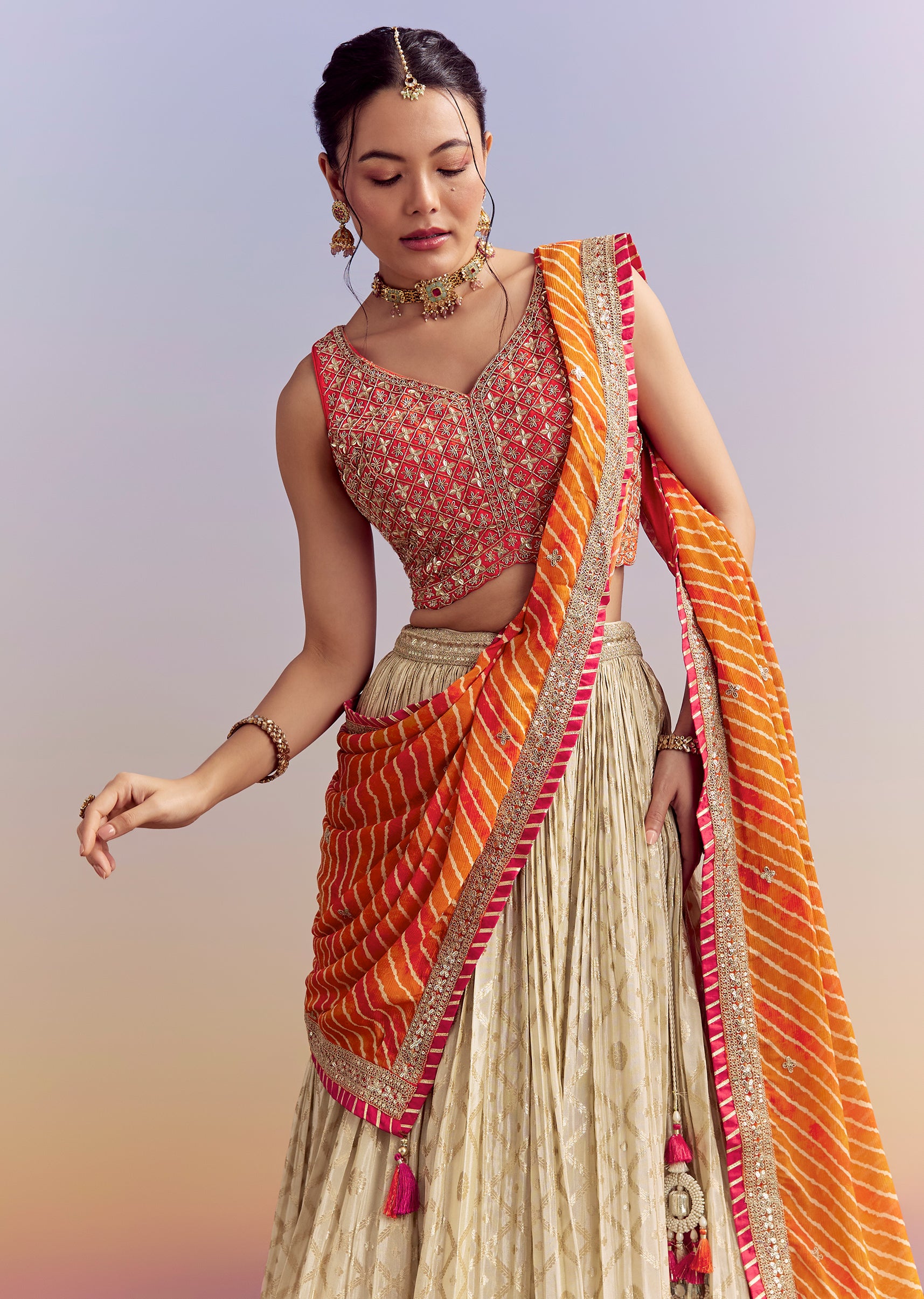 Orange Brocade Silk Bridesmaid Lehenga With Leheriya Dupatta
