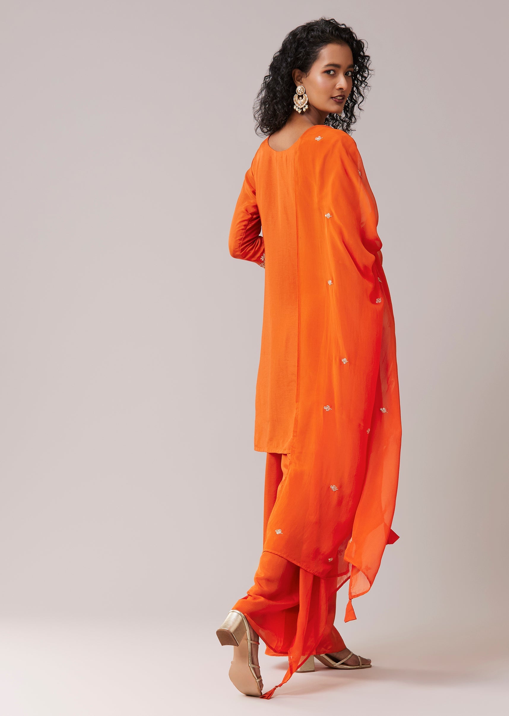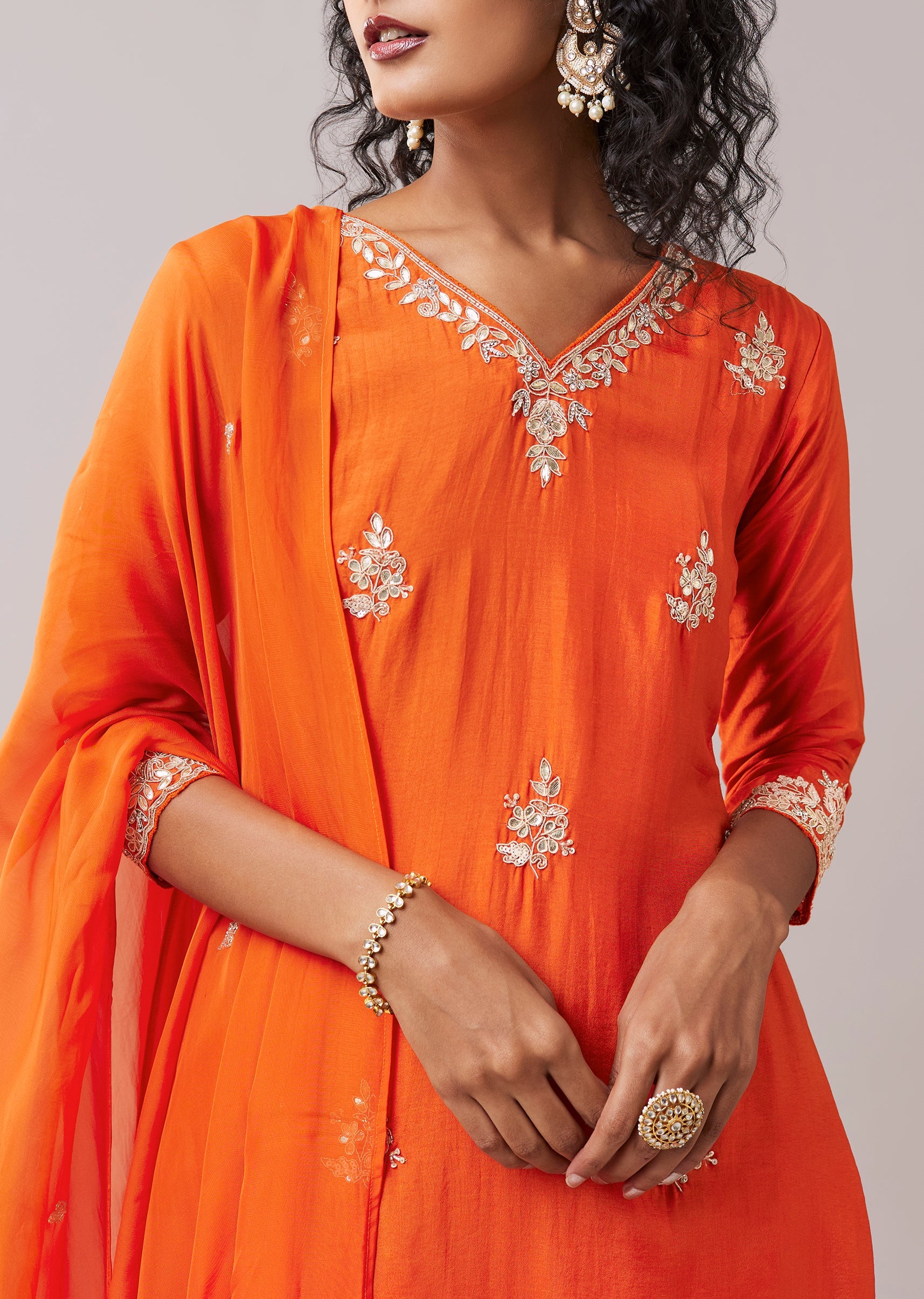 Orange Embroidered Silk Kurta Set with Gota Work
