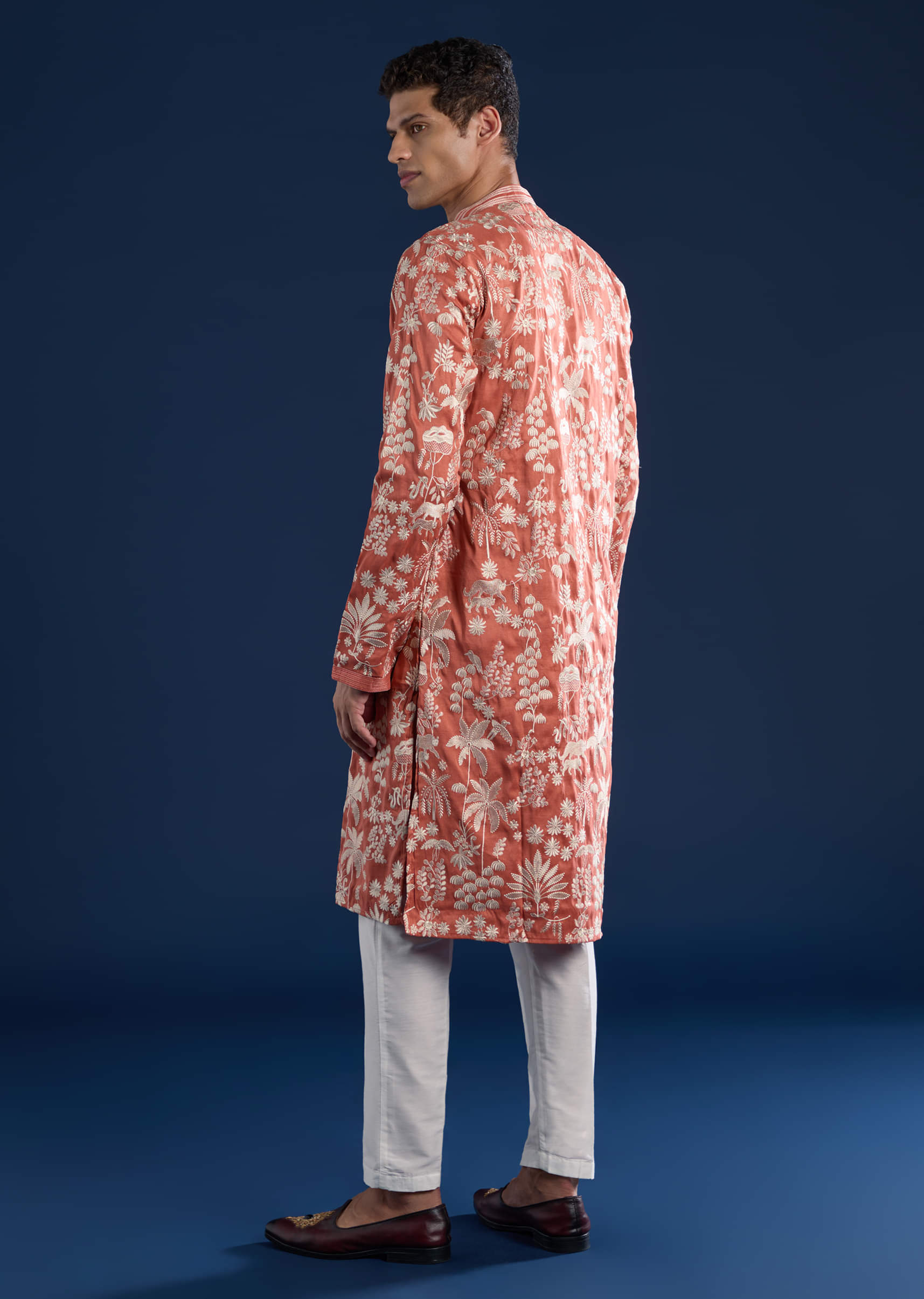 Orange Mirror Embellished Mens Kurta and Pant Set